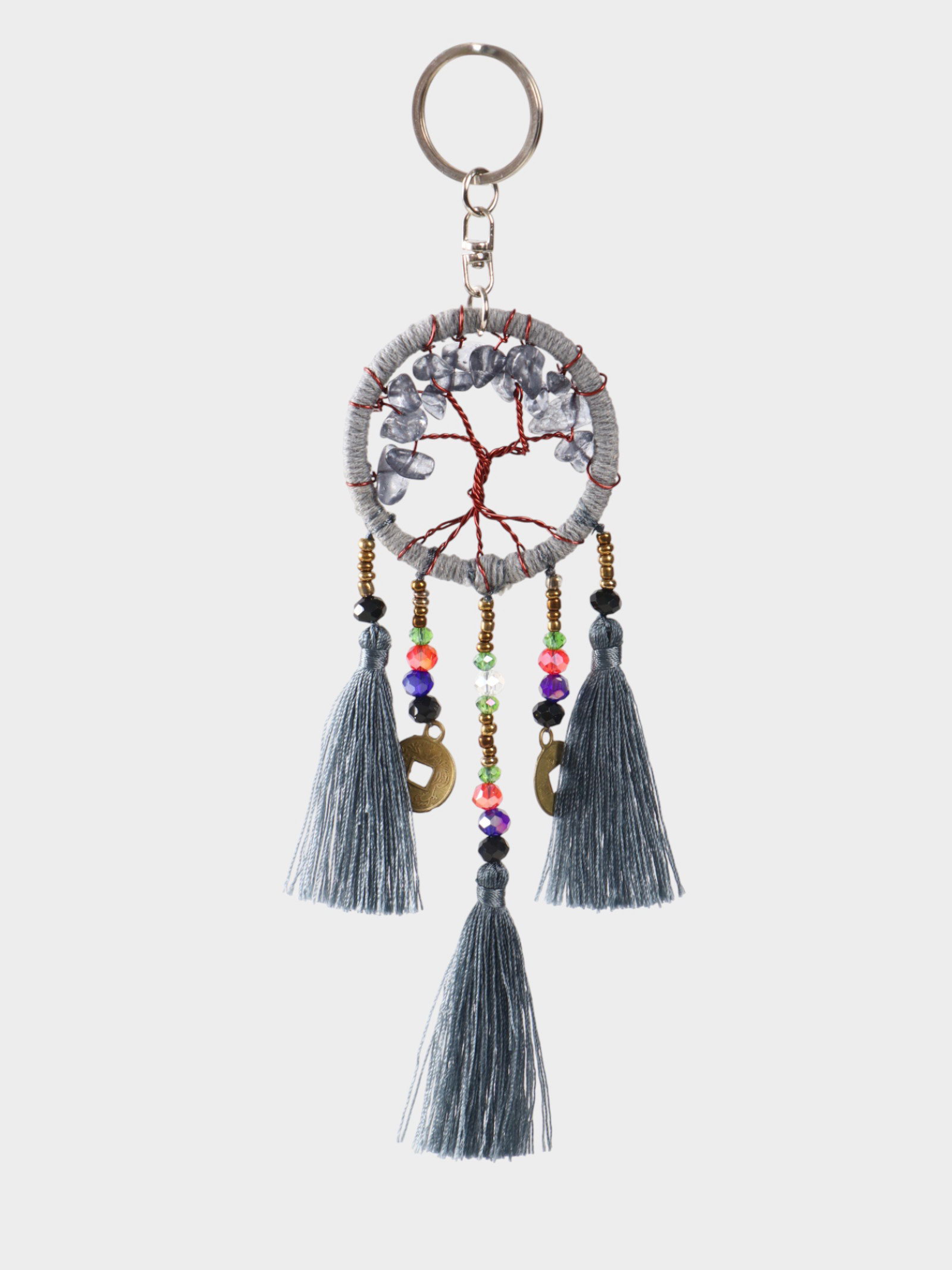 Брелок ловец снов "Древо" 19 см, цв. серый, 5x5x2 см., Индонезия
