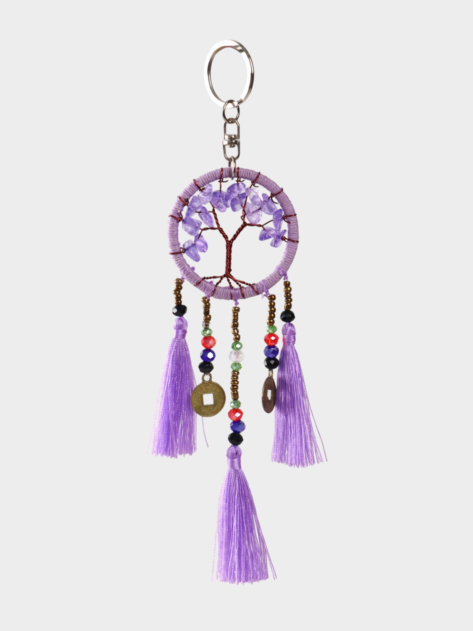Брелок ловец снов "Древо", 19 см, сиреневый, 5x5x2 см., Индонезия