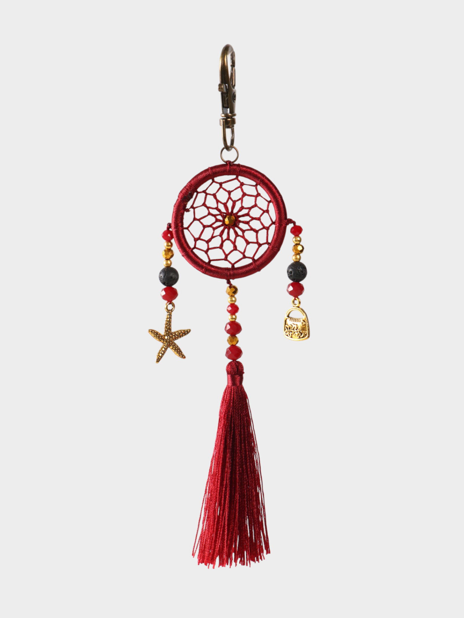 Брелок ловец снов, 17 см, бордовый, 5x5x2 см., Индонезия