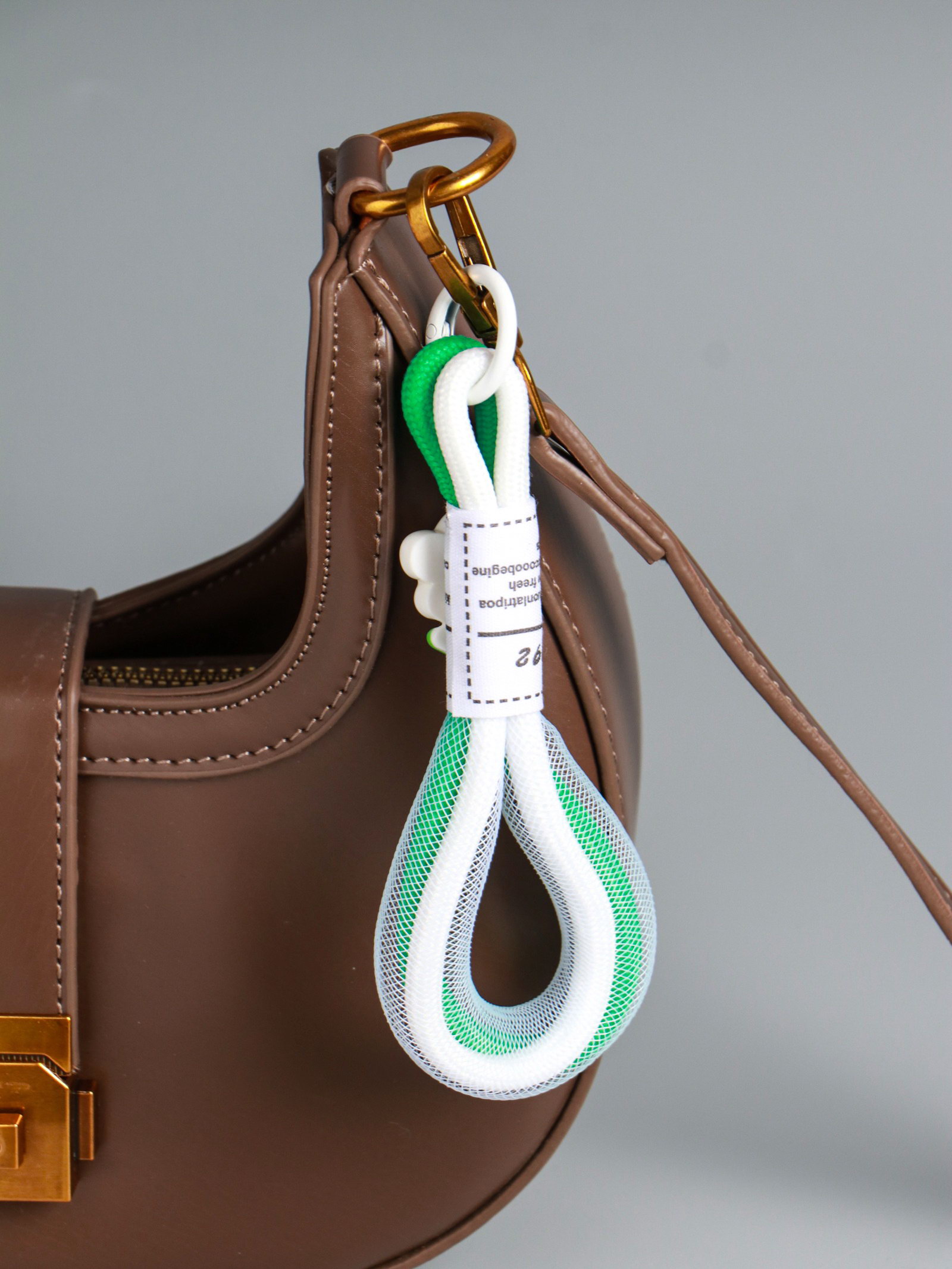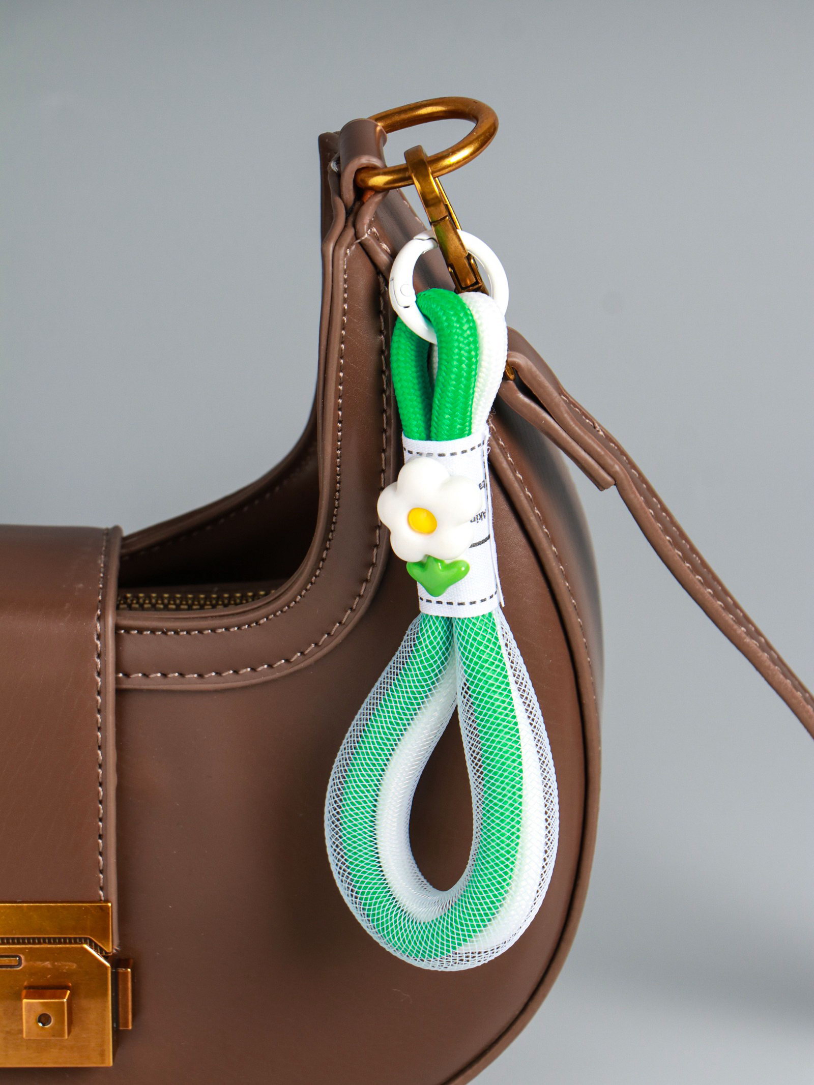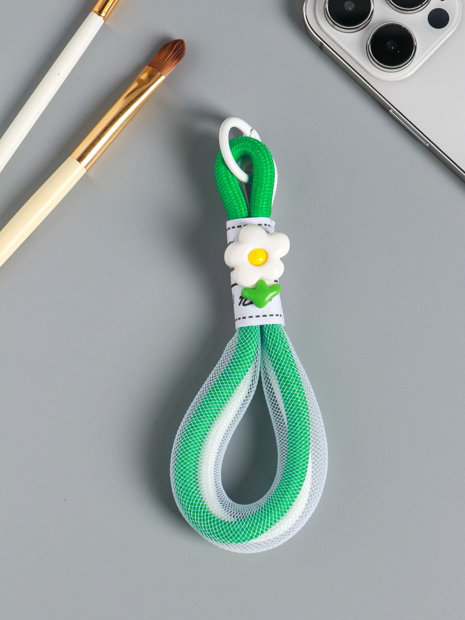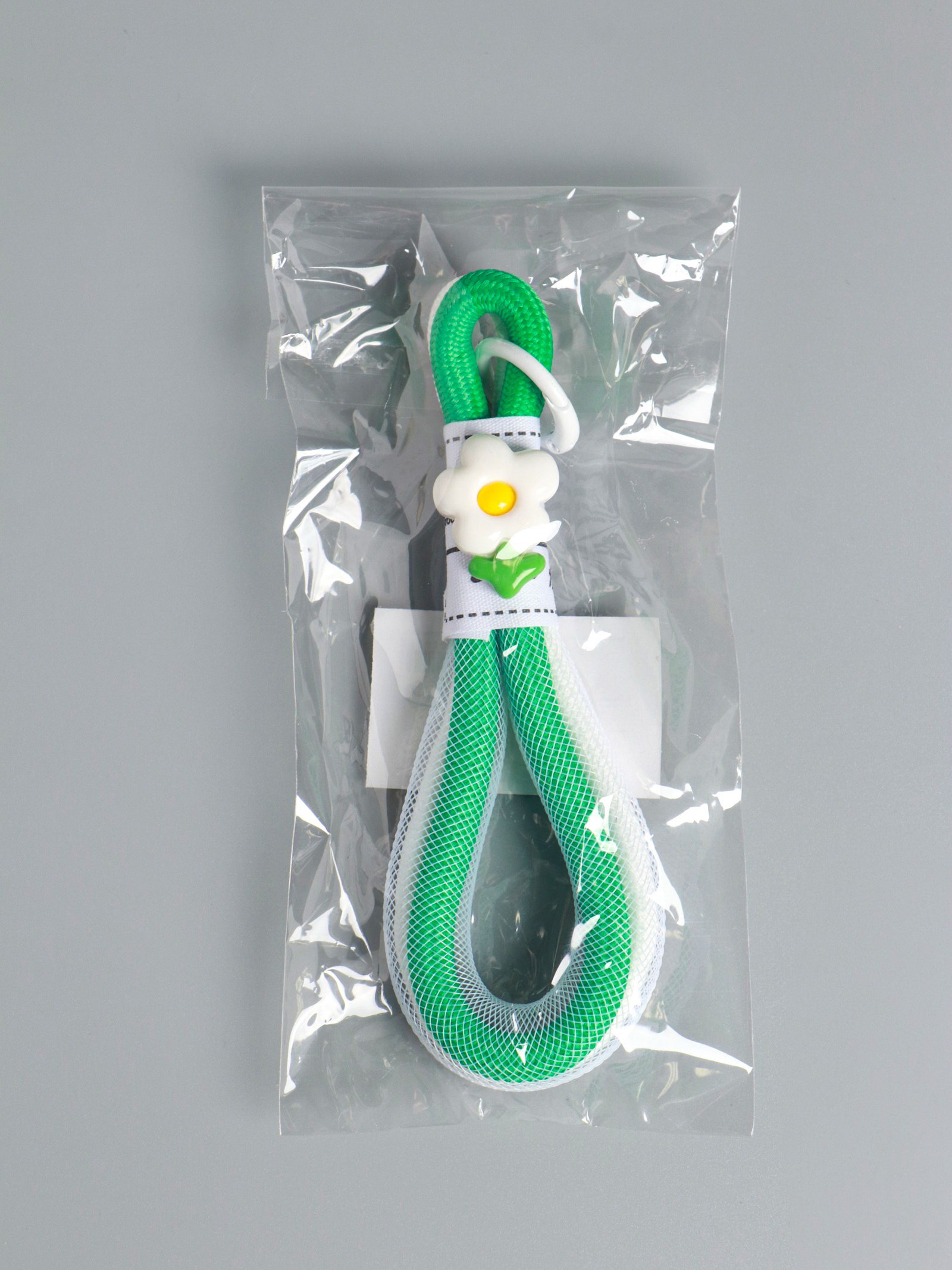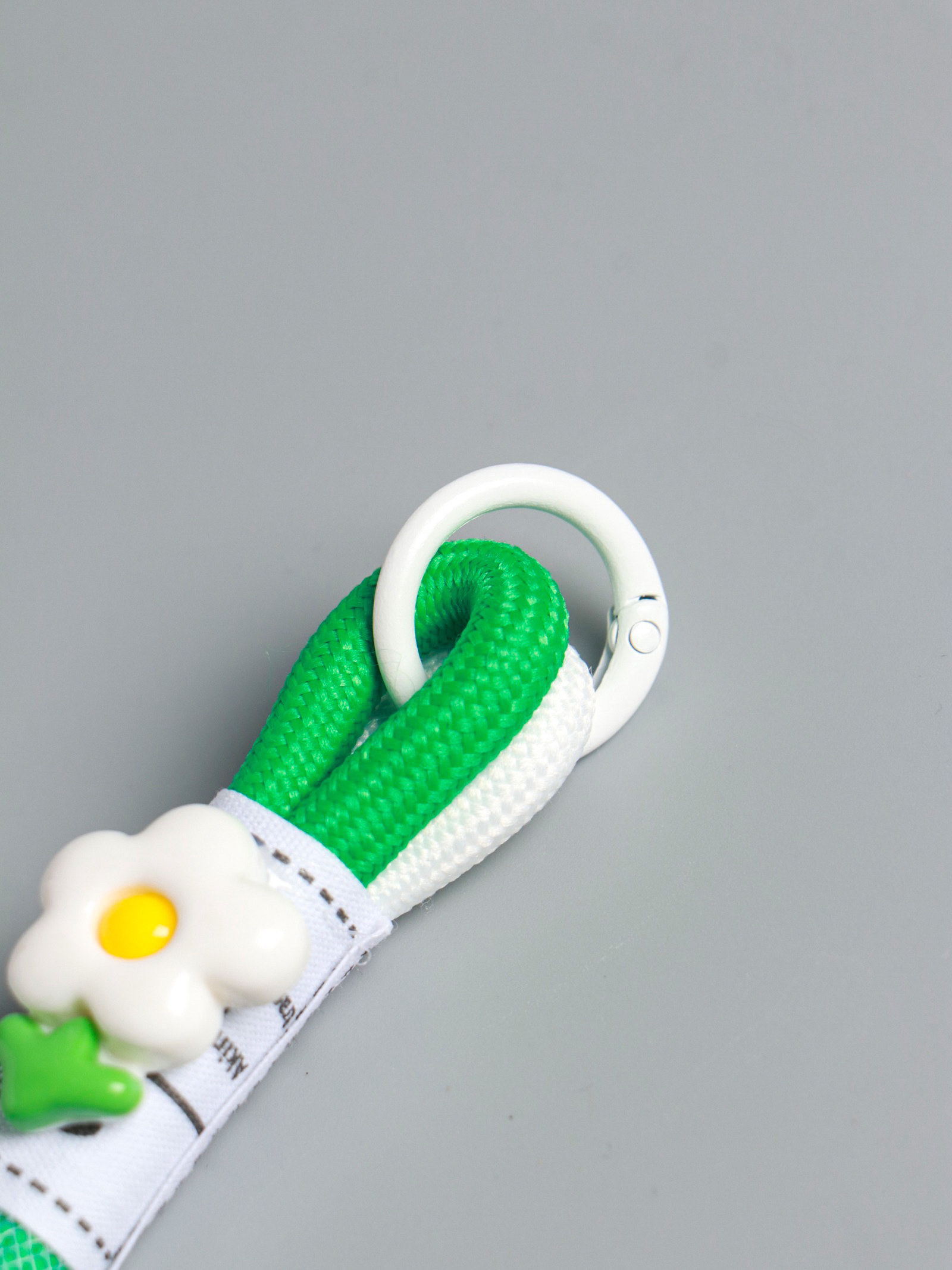 Брелок для ключей на карабине "Цветок. Шнур-сетка", двойной шнур 0.7 см, бело-зелёный, на сумку, рюкзак, 14.5x2x1.7 см, 2x14.5x1.7 см., Китай
