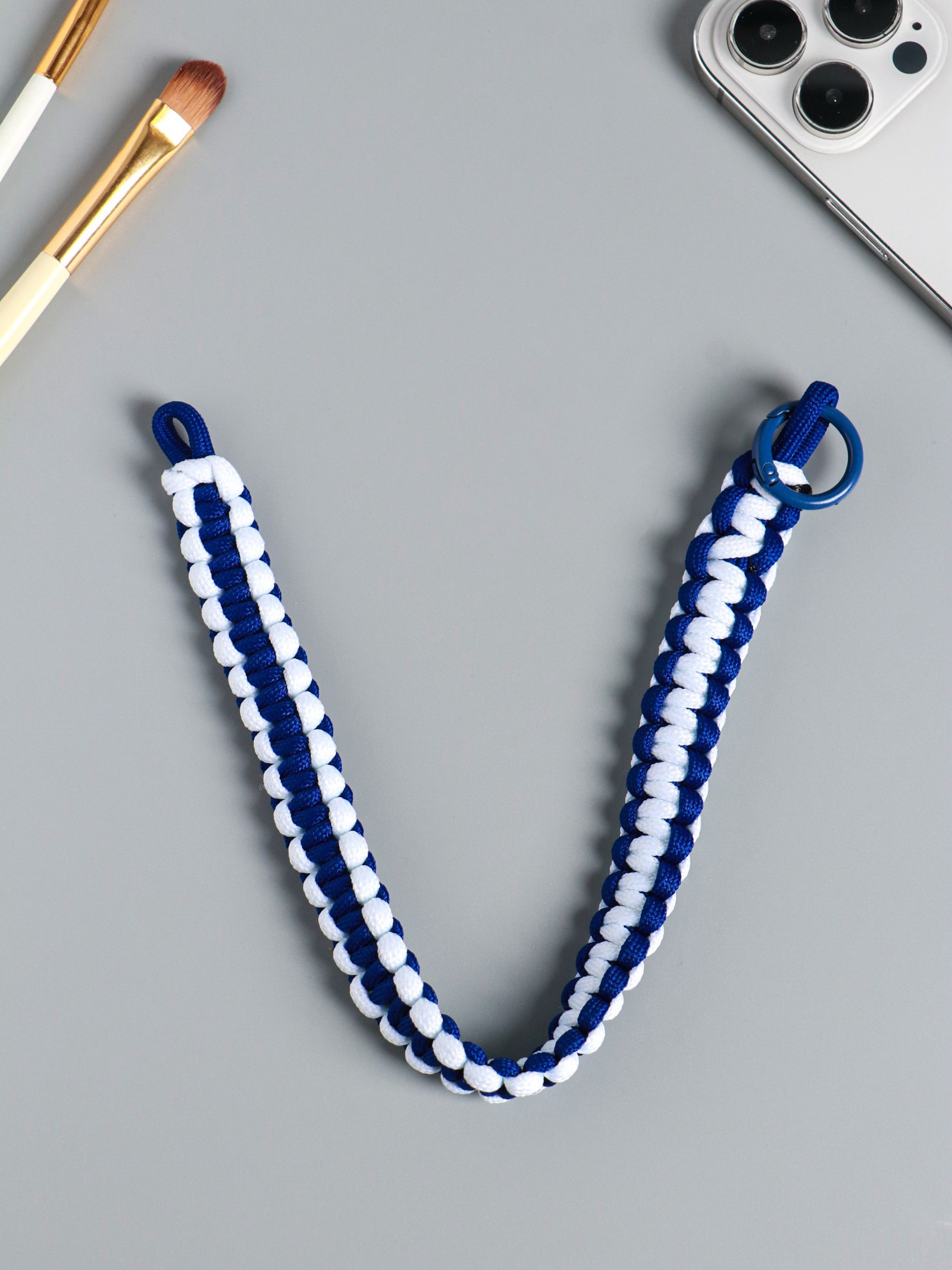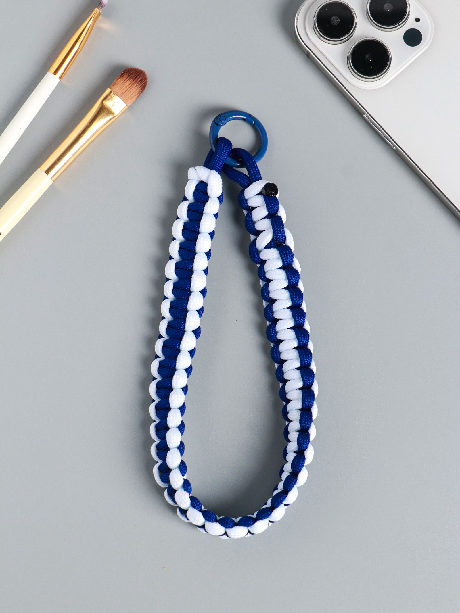 Брелок для ключей на карабине "Паракорд", шнур 0.5 см, сине-белый, на сумку, рюкзак, 14.5x1.8x0.8 см, 1.8x14.5x0.8 см., Китай