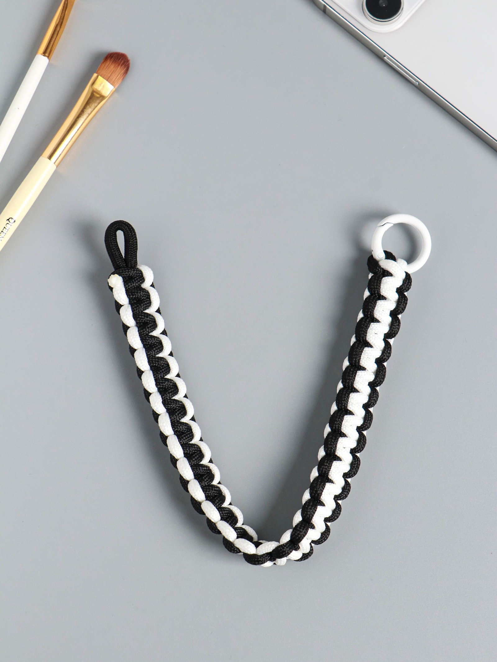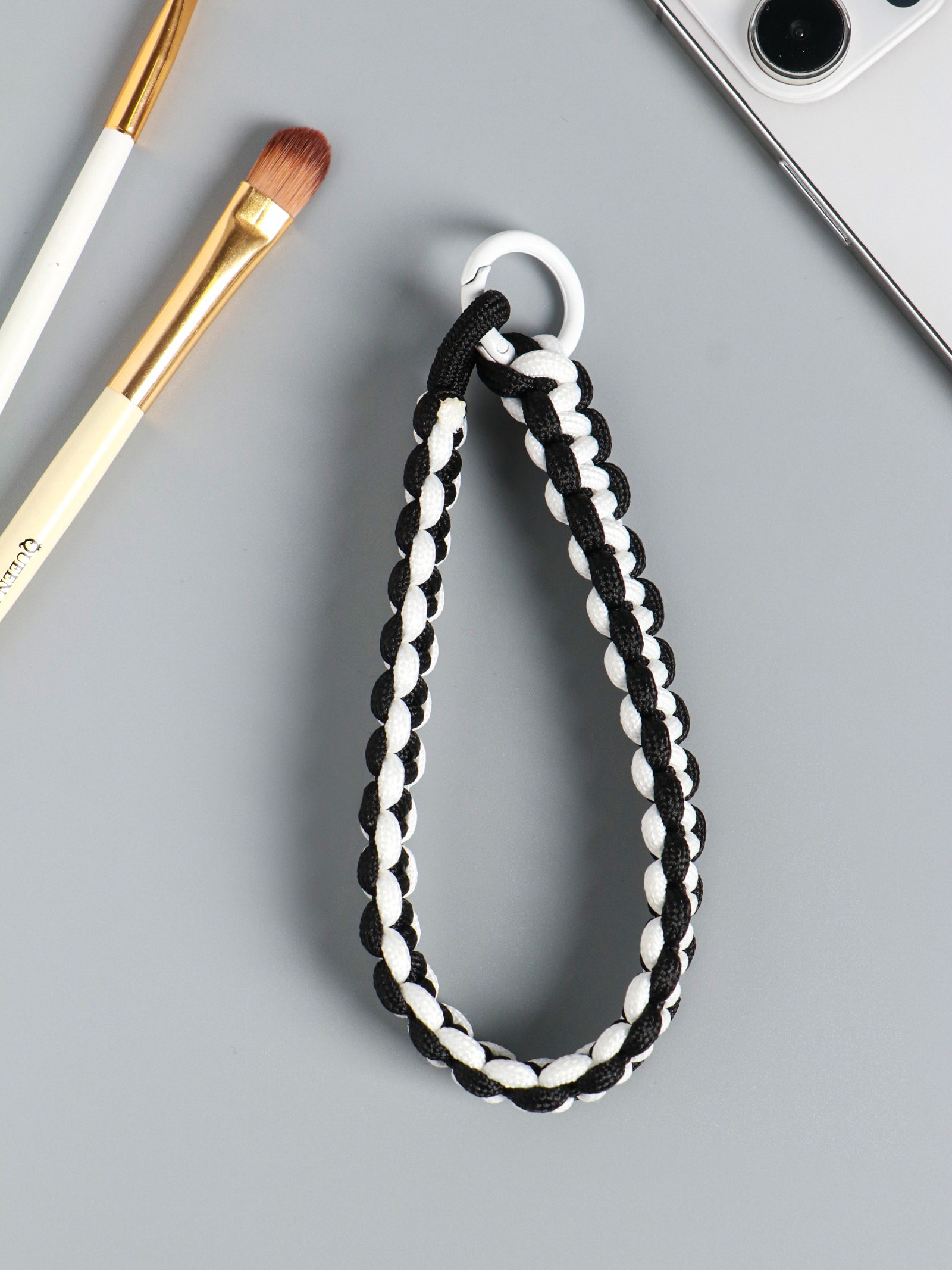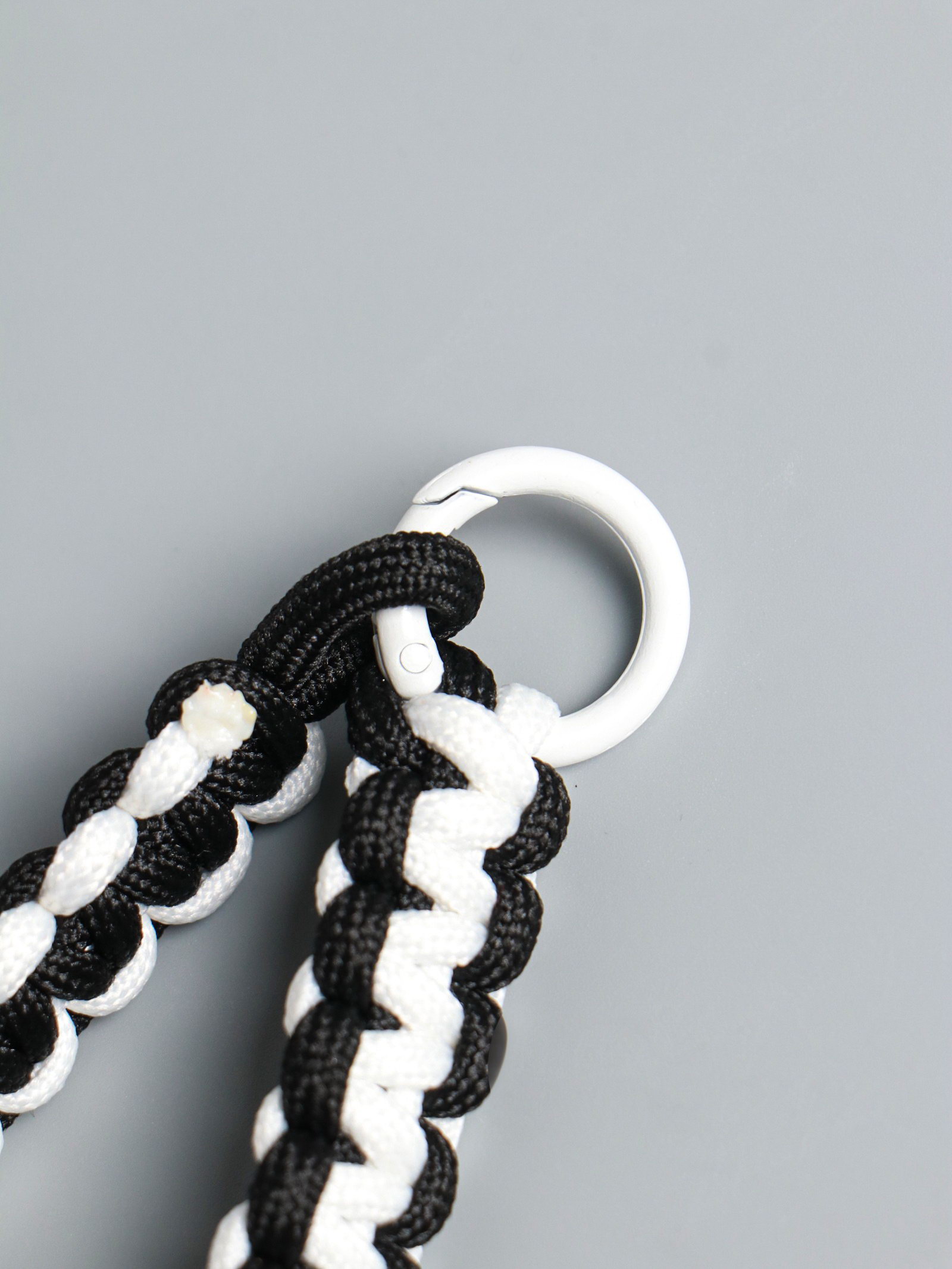 Брелок для ключей на карабине "Паракорд", шнур 0.5 см, чёрно-белый, на сумку, рюкзак, 14.5x1.8x0.8 см, 1.8x14.5x0.8 см., Китай