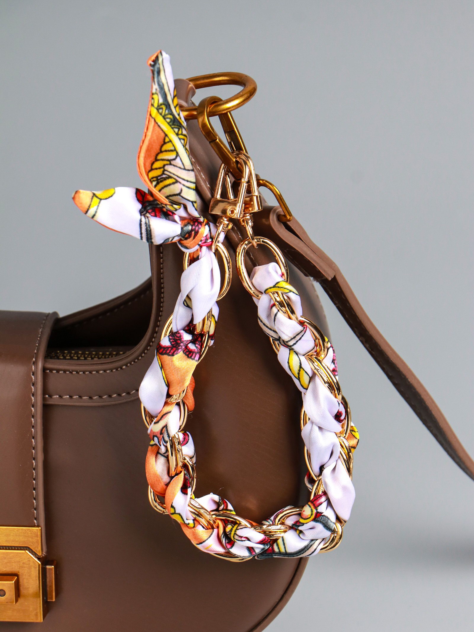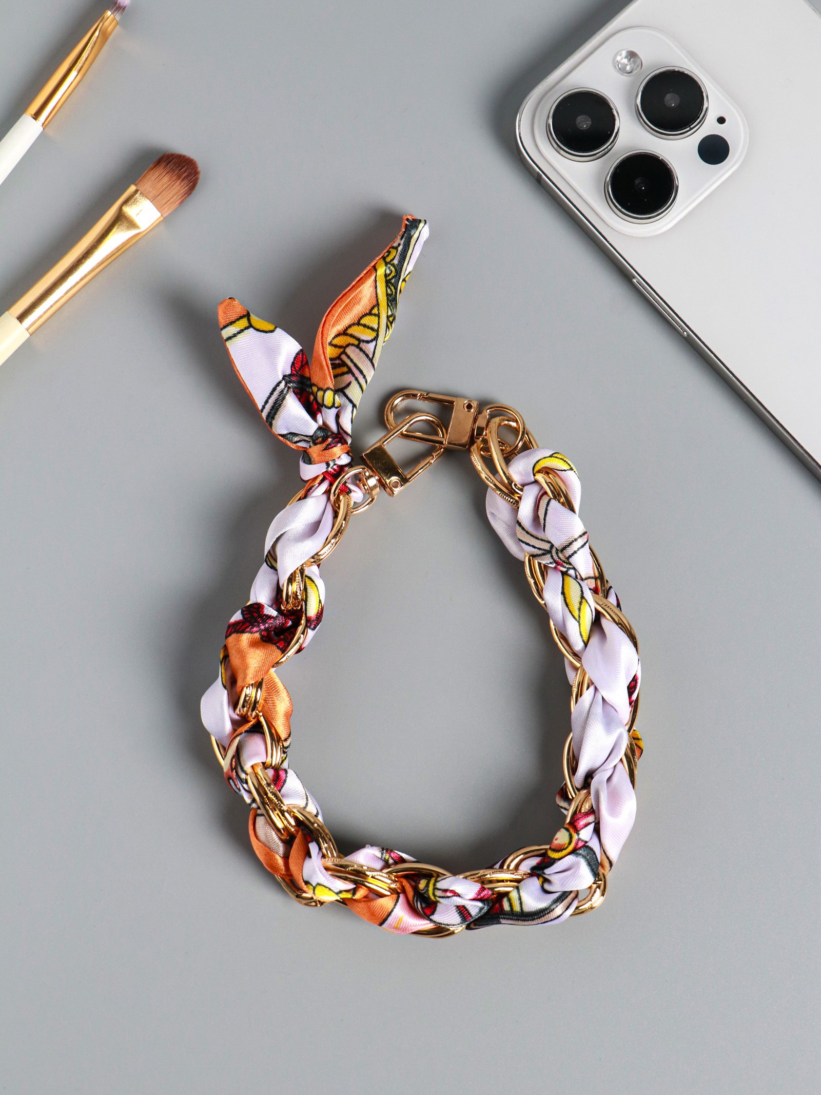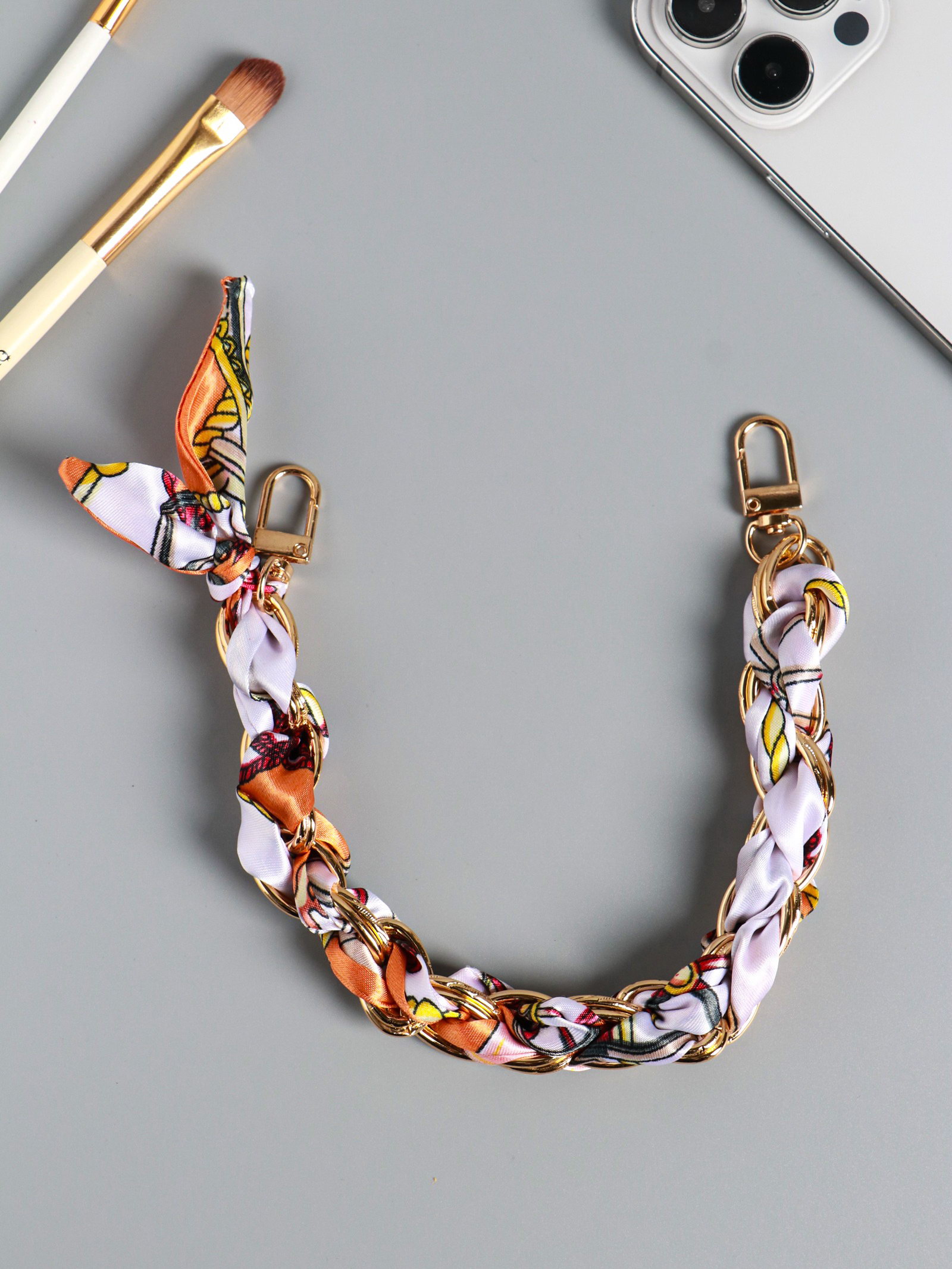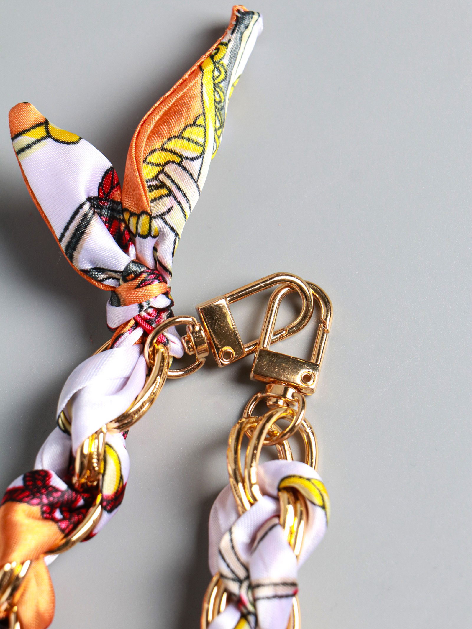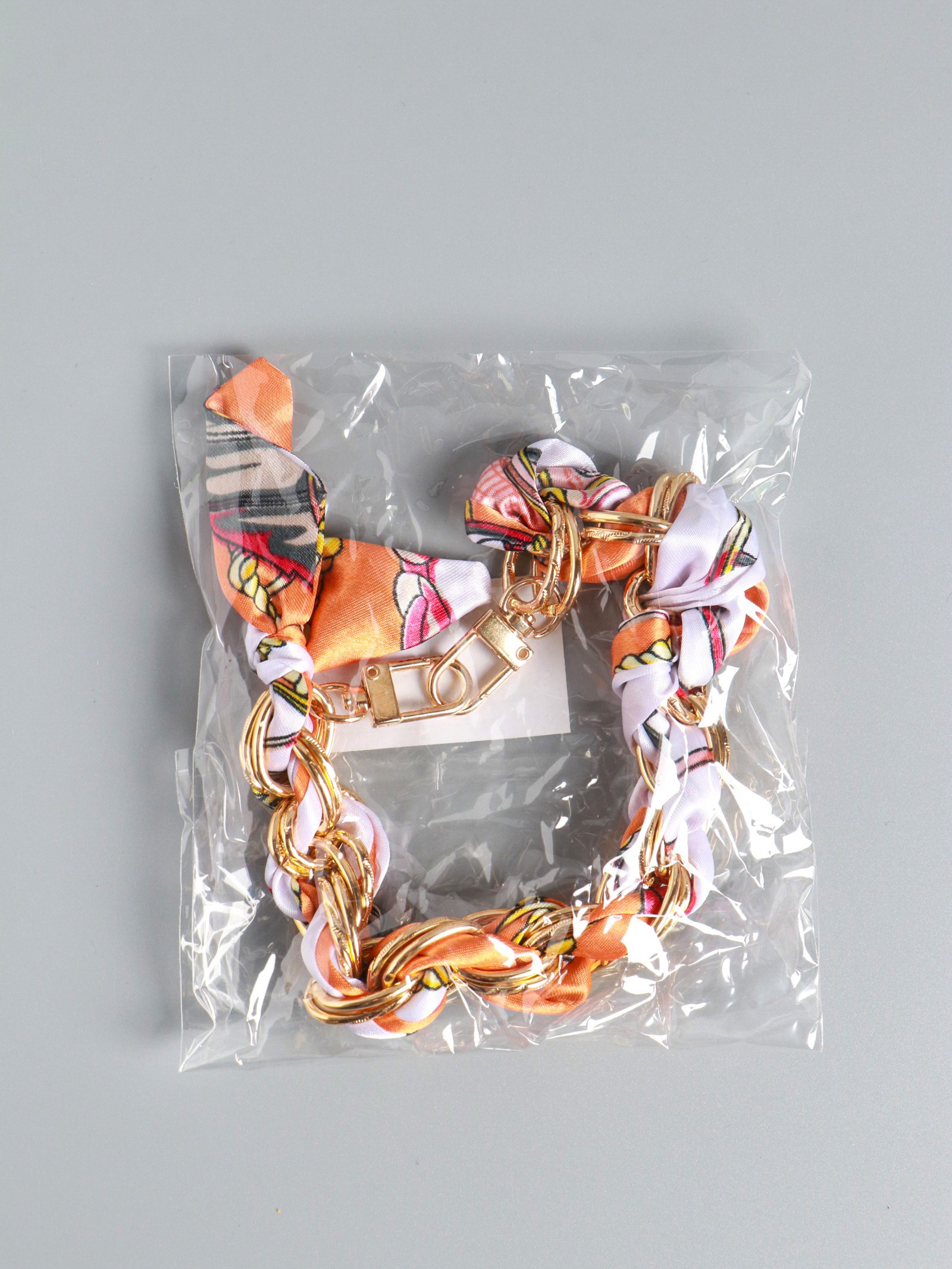 Брелок для ключей на 2 карабинах "Платок и цепочка", оранж, на сумку, рюкзак, 20x10x1.7 см, 10x20x1.7 см., Китай