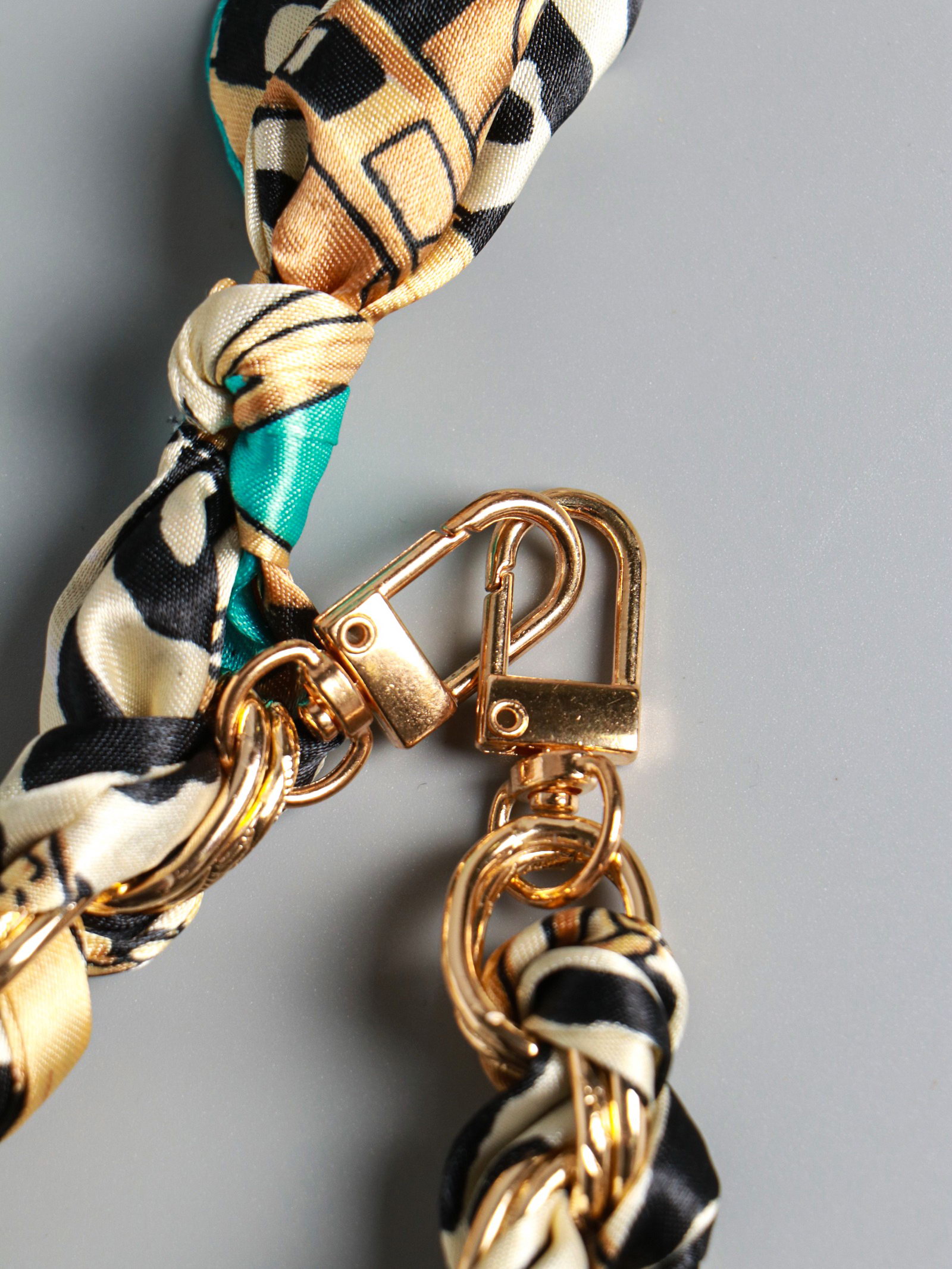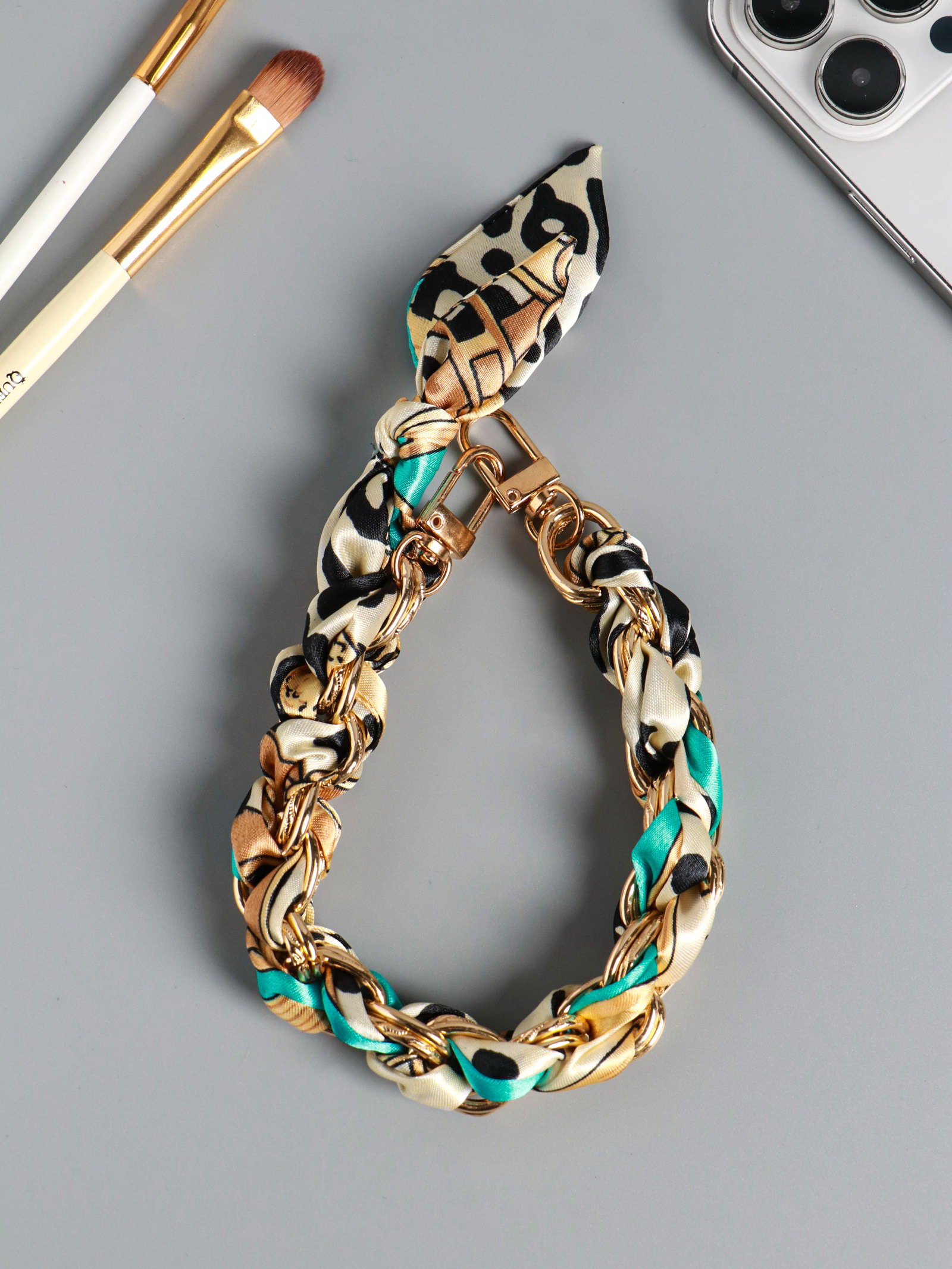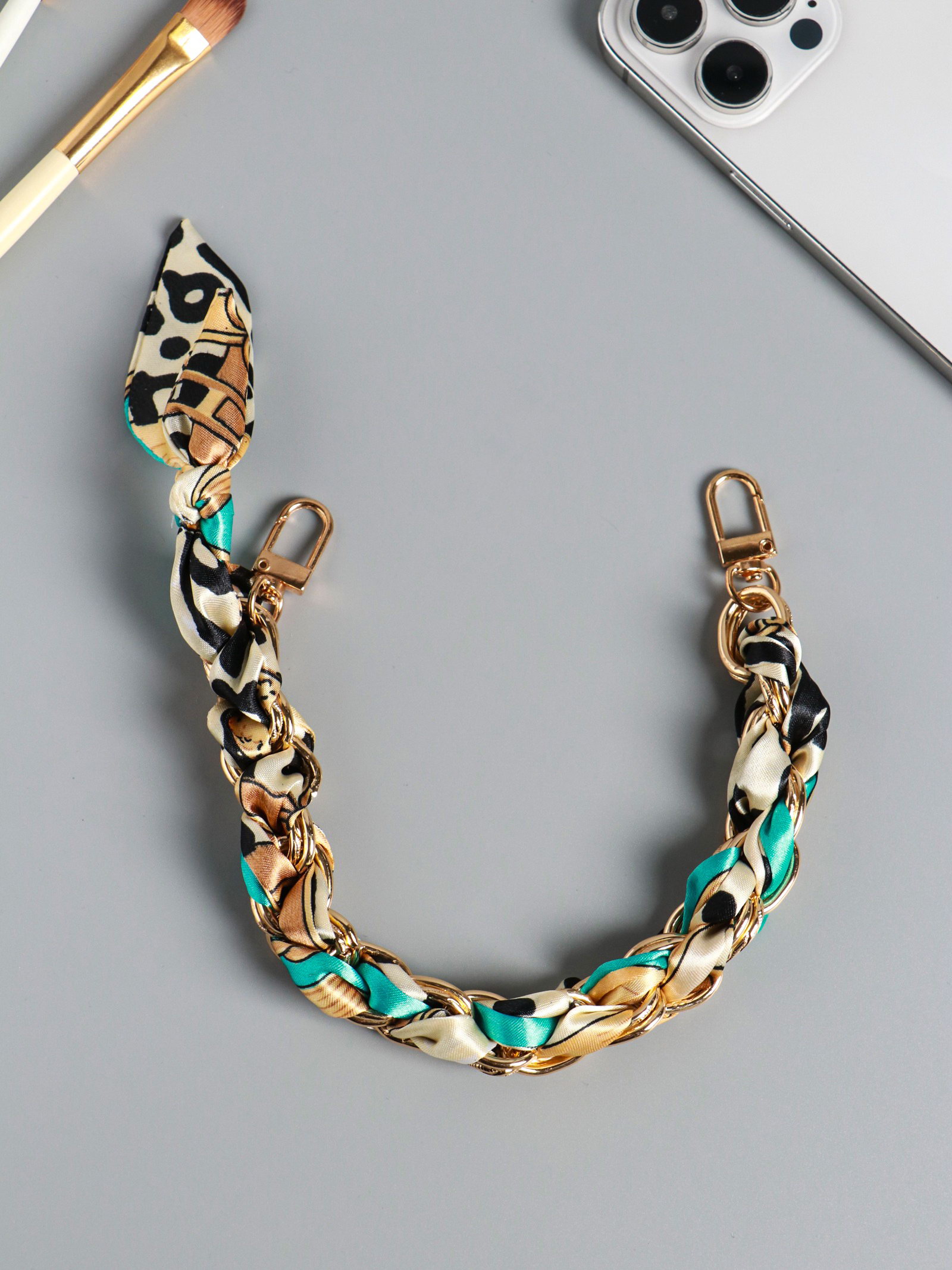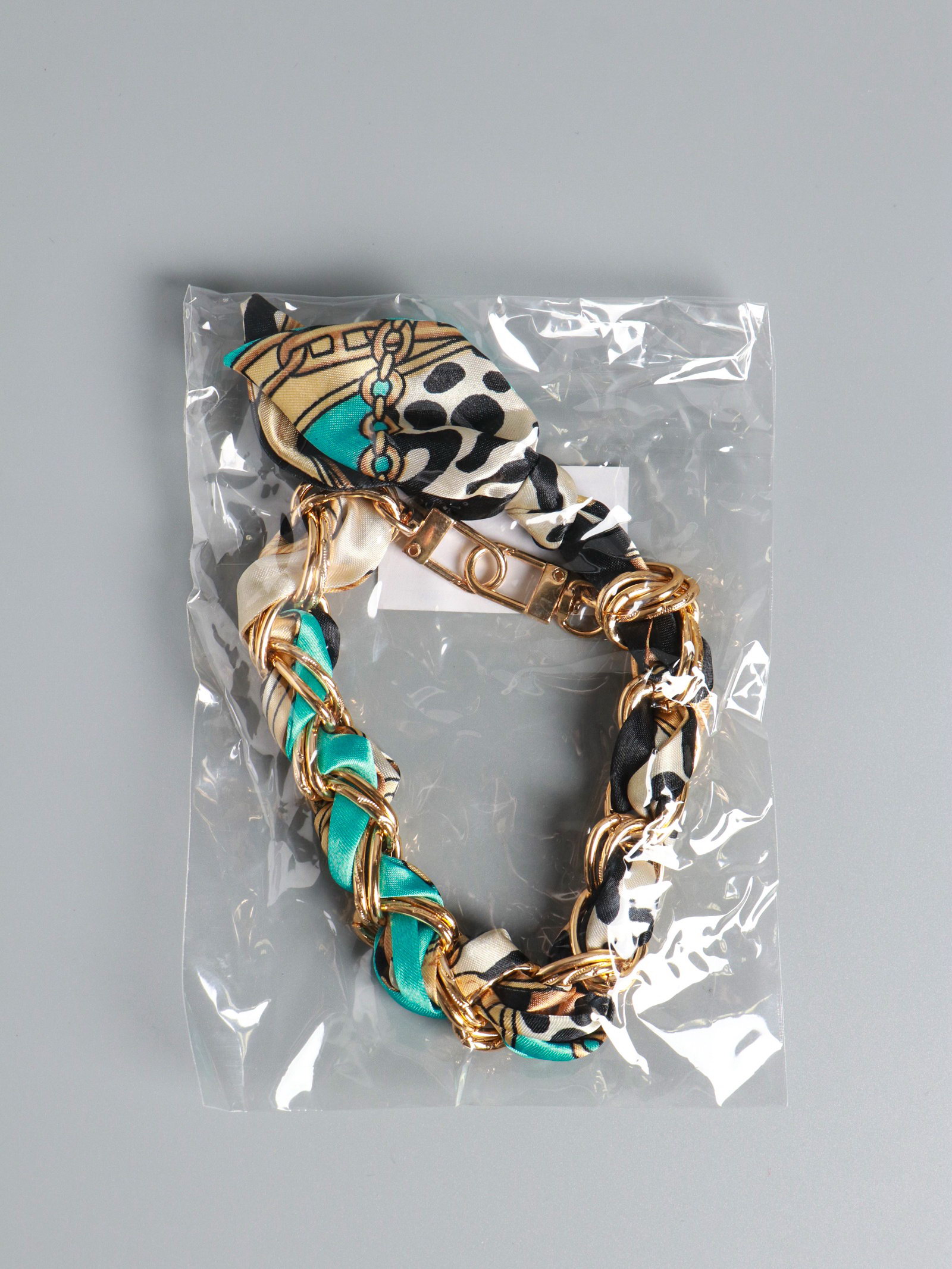 Брелок для ключей на 2 карабинах "Платок и цепочка", голубой, на сумку, рюкзак, 20x10x1.7 см, 10x20x1.7 см., Китай