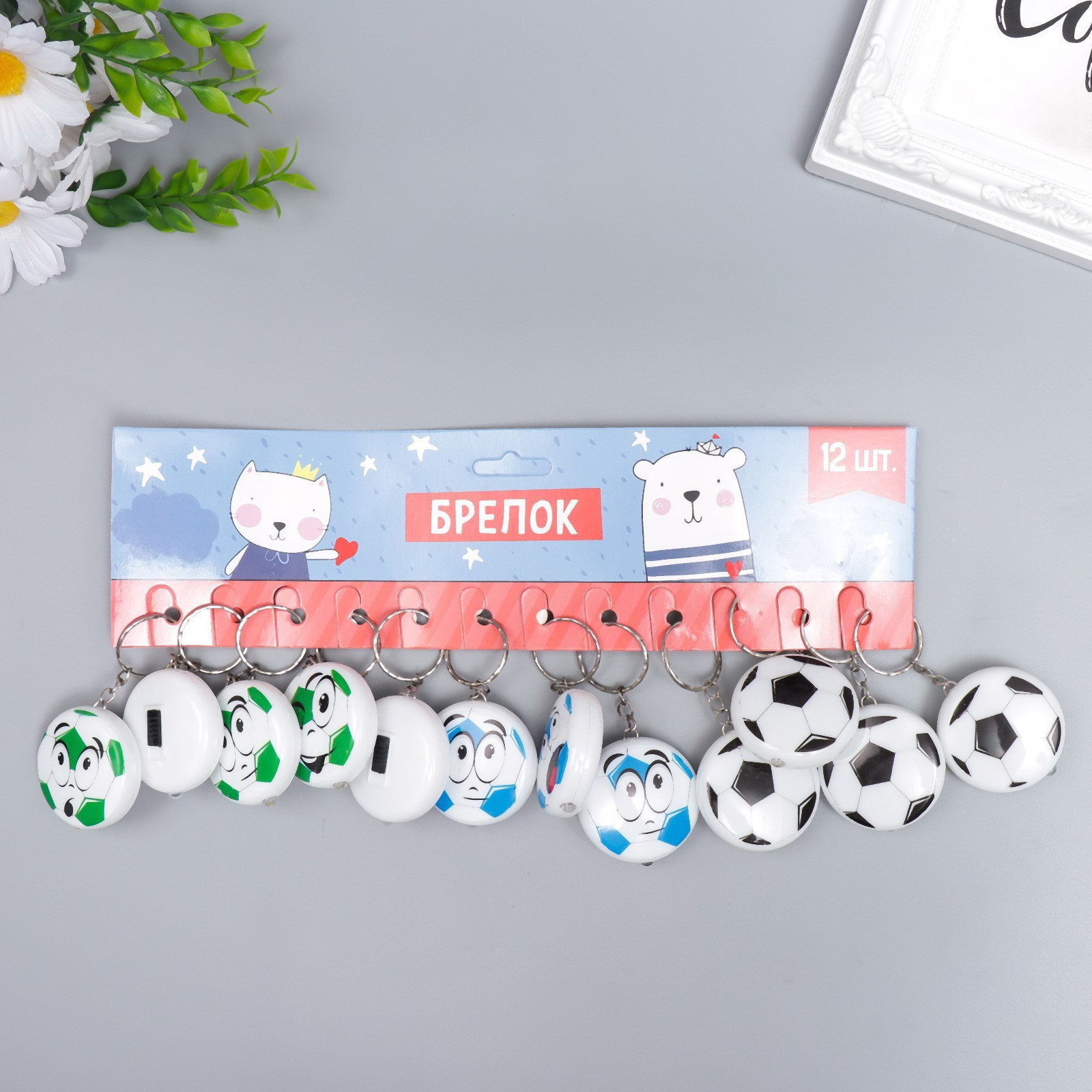 Фонарик брелок для ключей на кольце "Футбольный мяч смайл", светится, 4x4x1 см, МИКС, 4x4x1 см., Китай