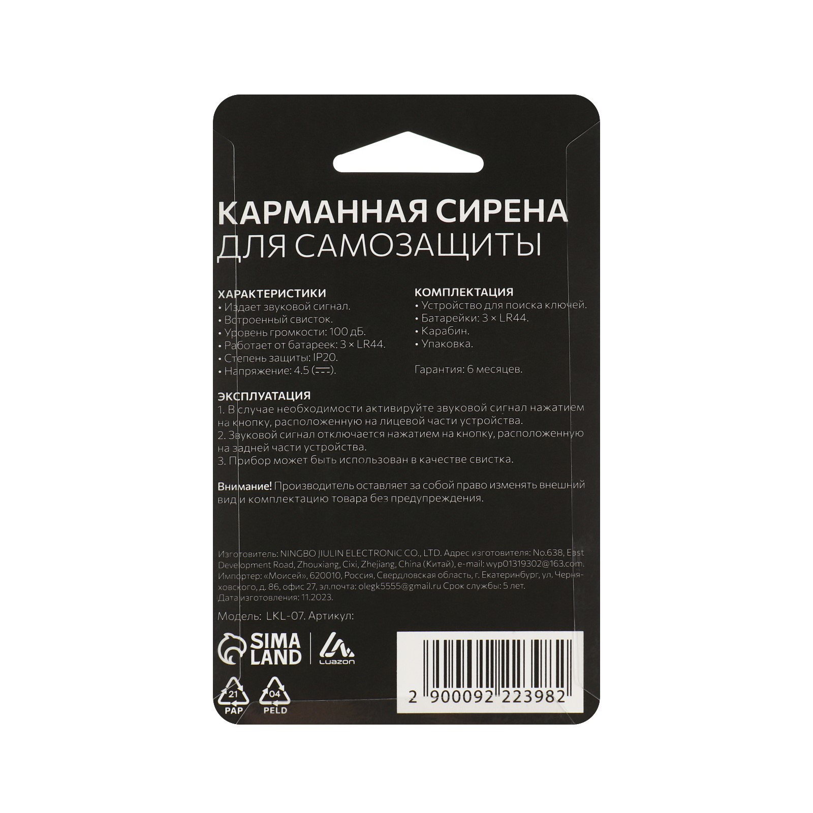 Карманная сирена для самозащиты Luazon LKL-07, со свистком, черная, 3.5x7x2 см., Luazon Home, Китай