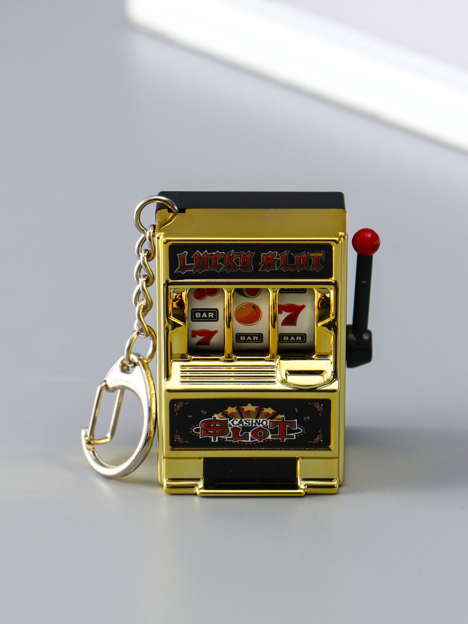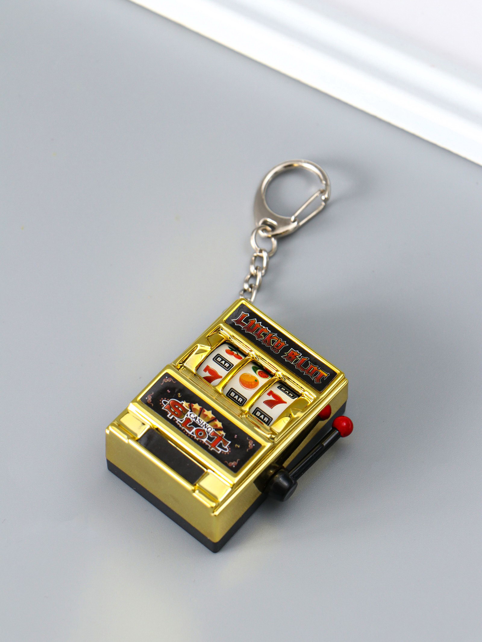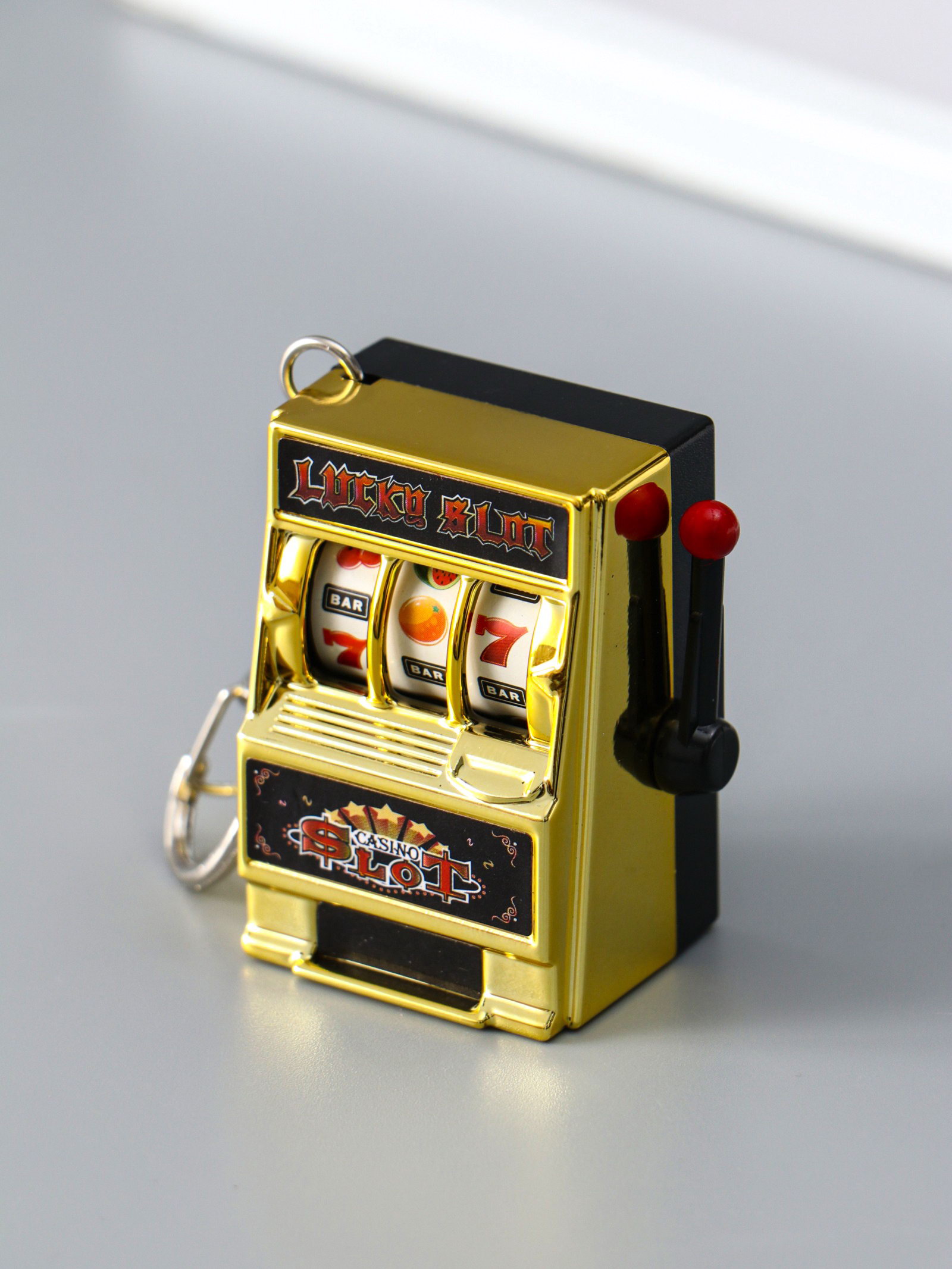Брелок пластик "Игровой автомат - казино" золото 2.7х3.4х5 см, 3.4x2.7x5 см., Китай