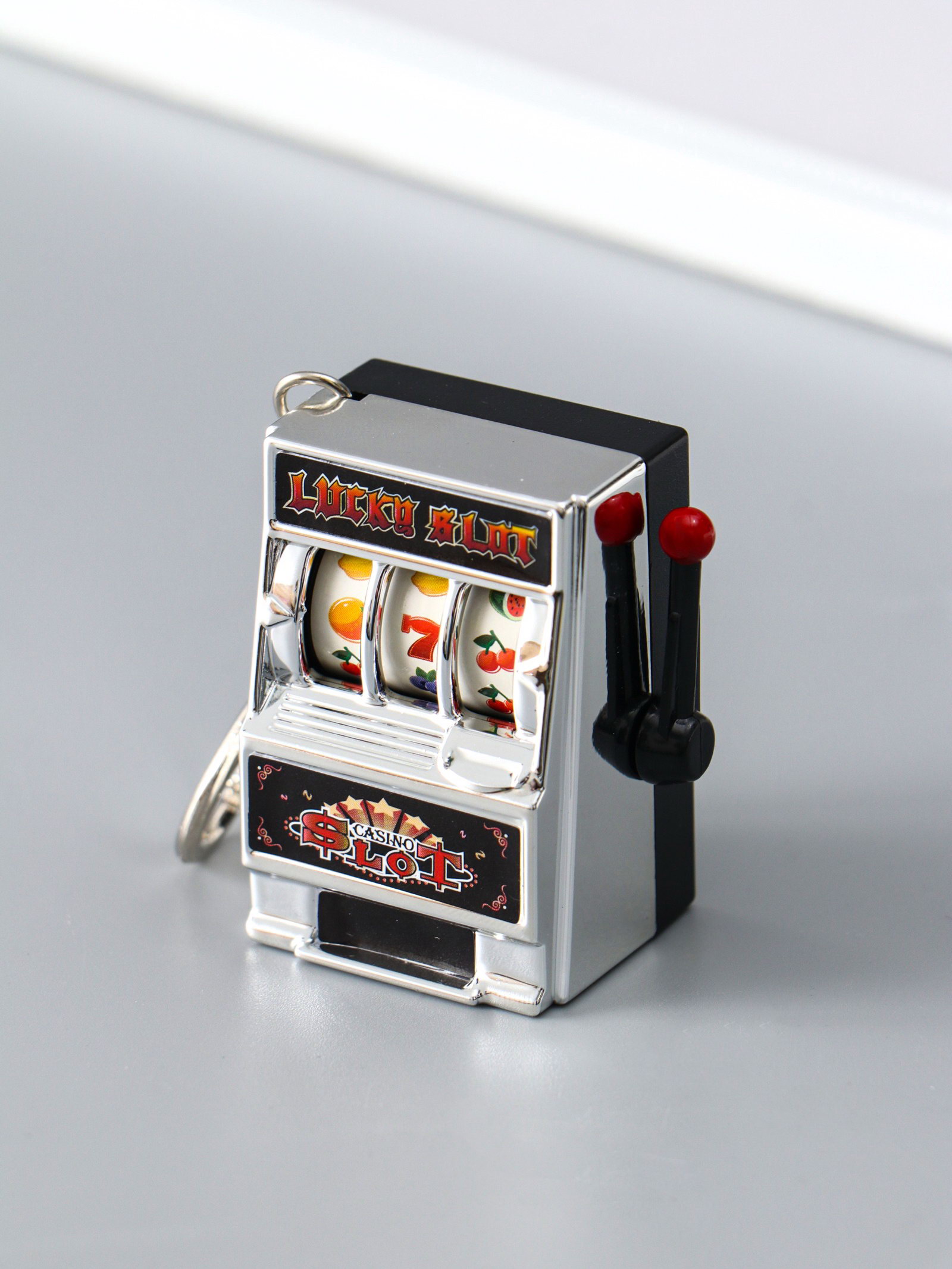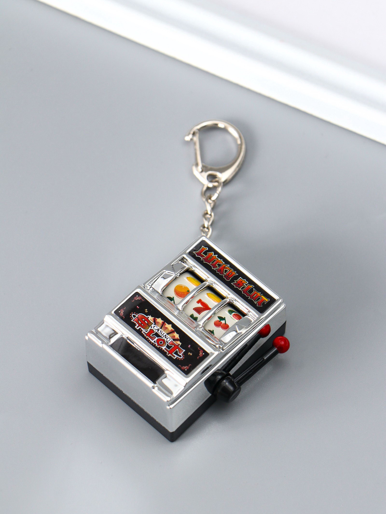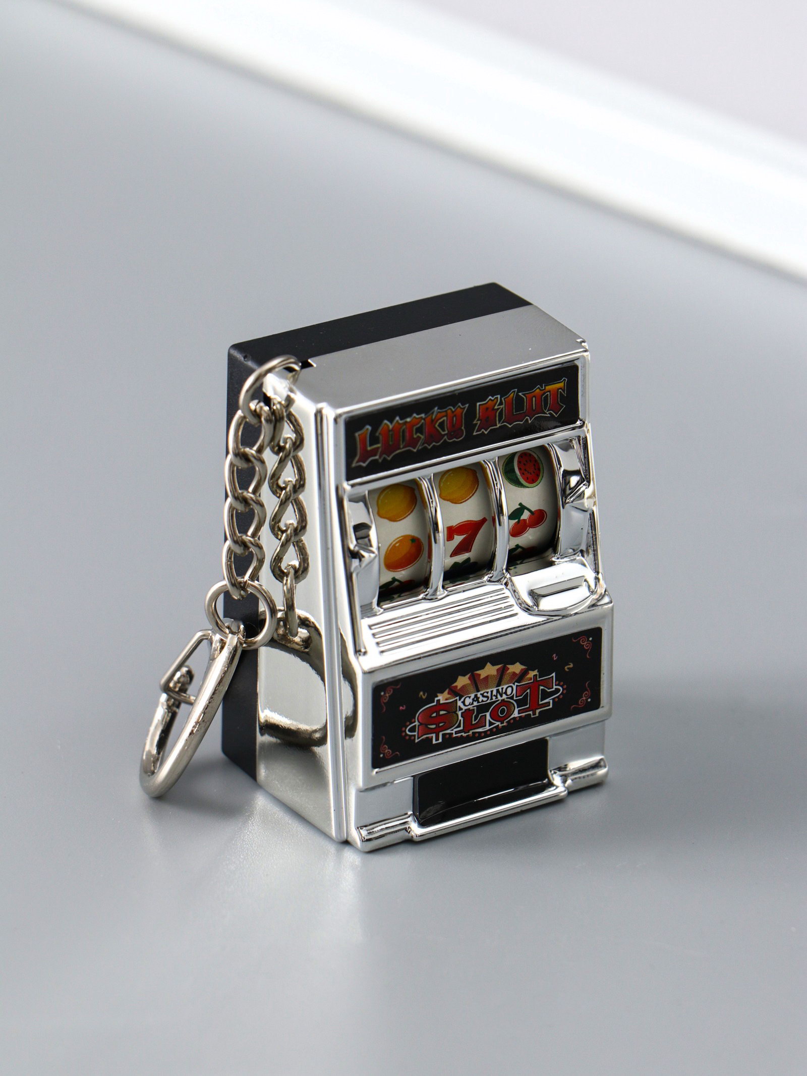 Брелок пластик "Игровой автомат - казино" серебро 2.7х3.4х5 см, 3.4x2.7x5 см., Китай