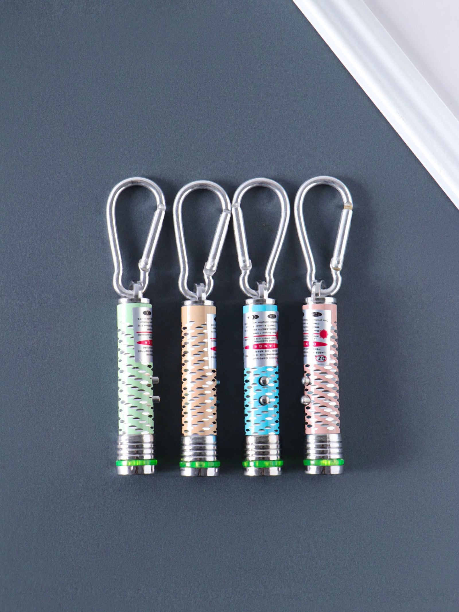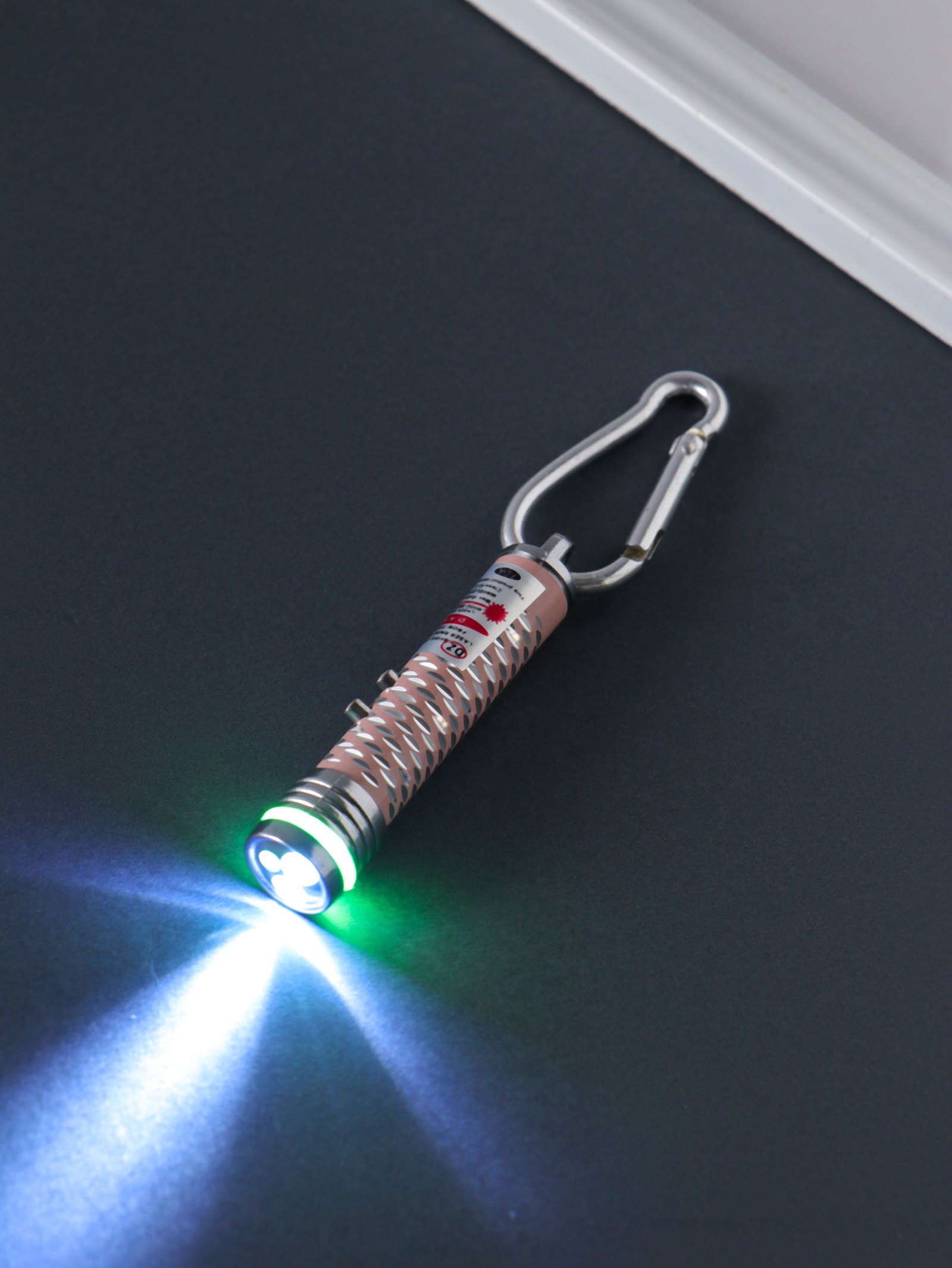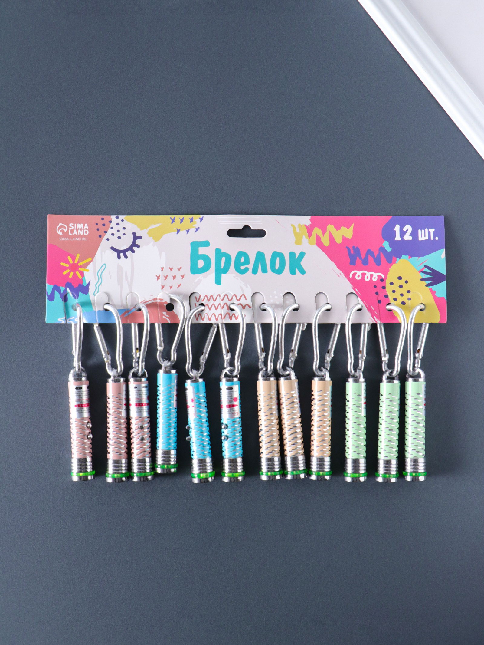 Фонарик - лазер брелок для ключей на карабине "Чёрточки", 2 диода, пастель, 1.5x1.5x7 см, МИКС, 1.5x1.5x7 см., Китай