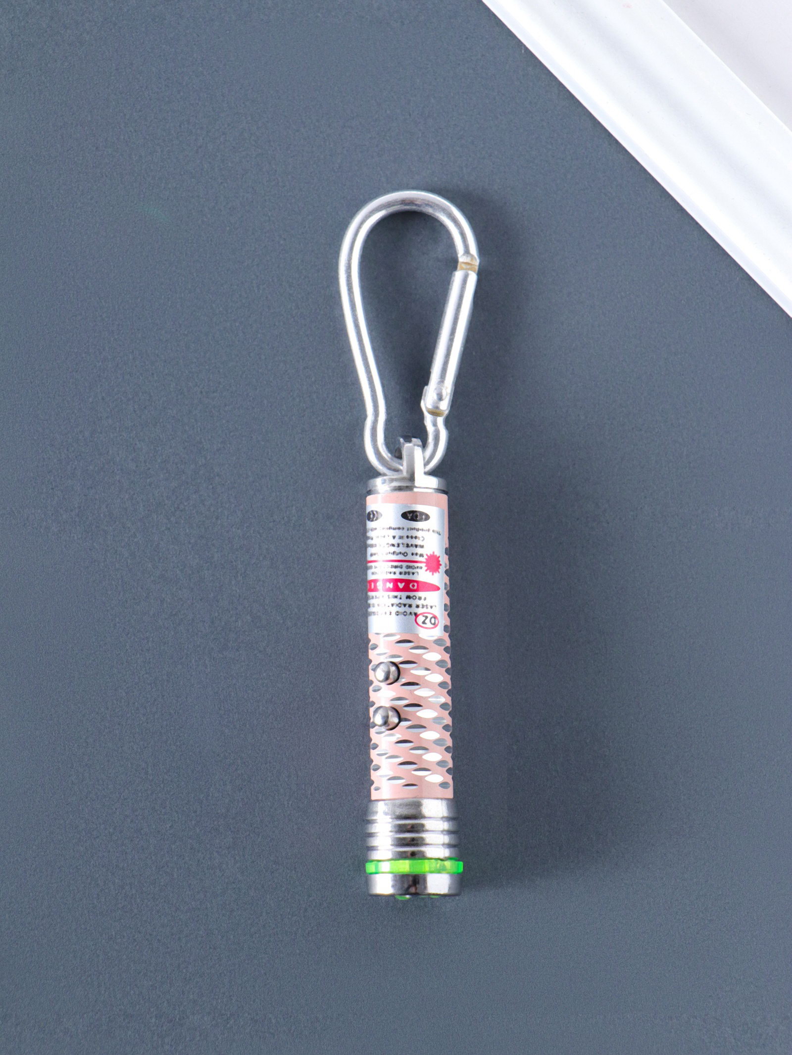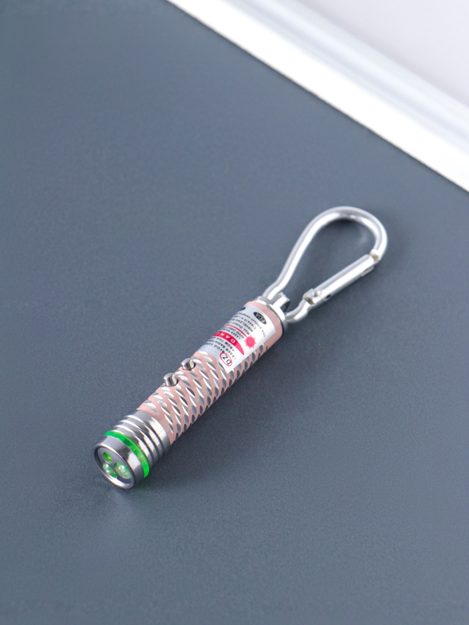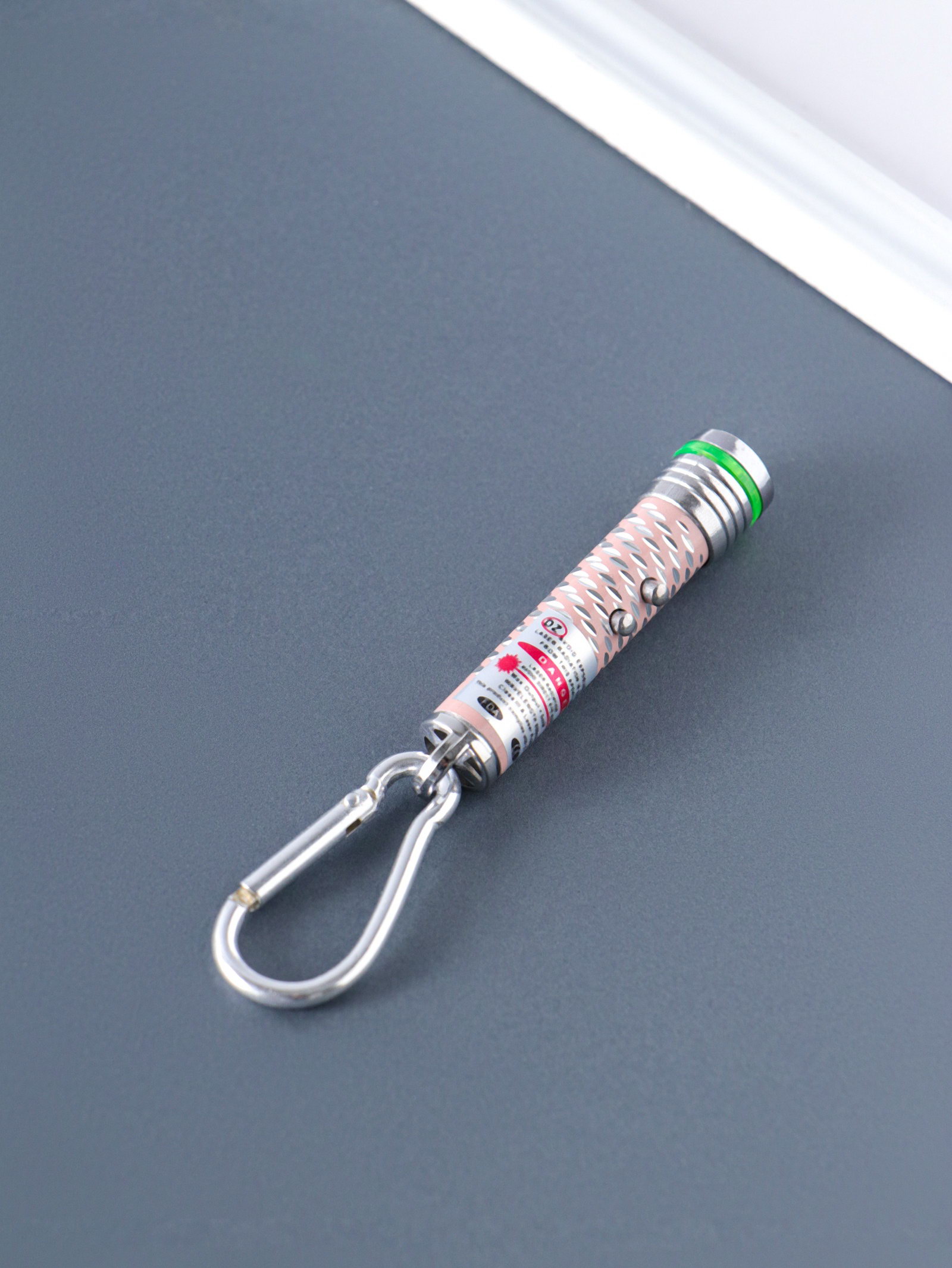 Фонарик - лазер брелок для ключей на карабине "Чёрточки", 2 диода, пастель, 1.5x1.5x7 см, МИКС, 1.5x1.5x7 см., Китай