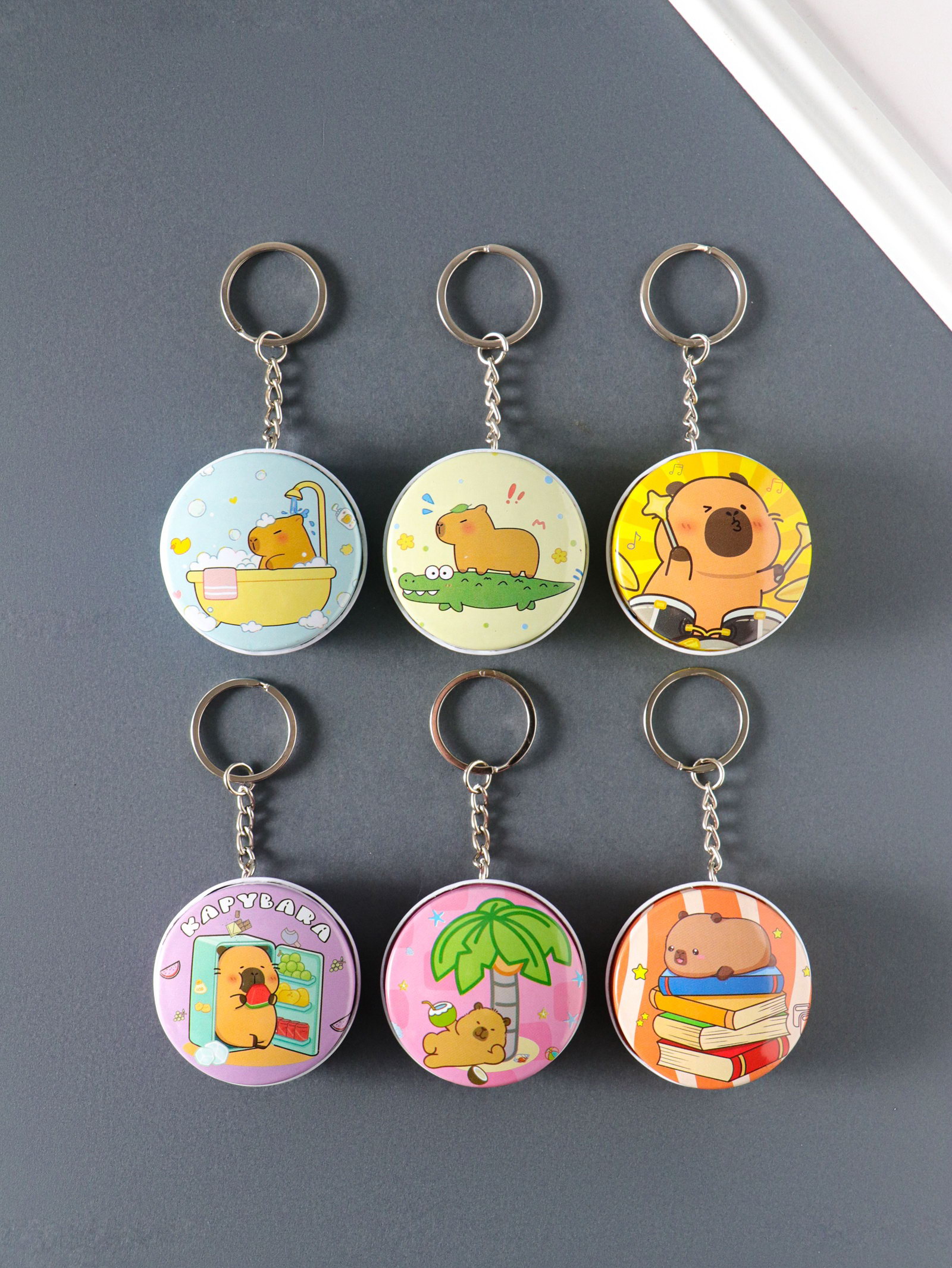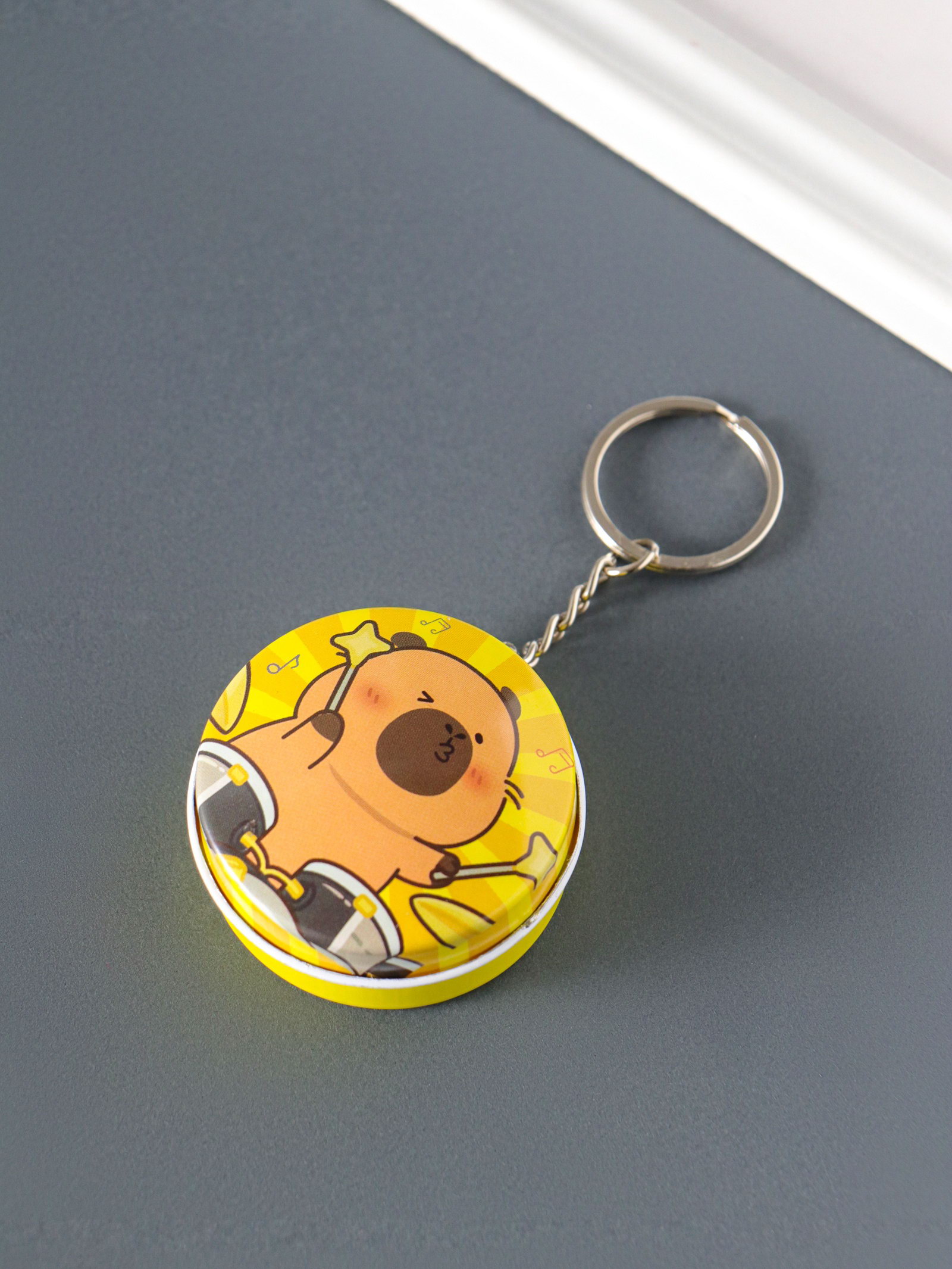 Шкатулка - брелок для ключей на кольце "Капибара", круглая, мини, 4.5x4.5x2 см, МИКС, 4.5x4.5x2 см., Китай