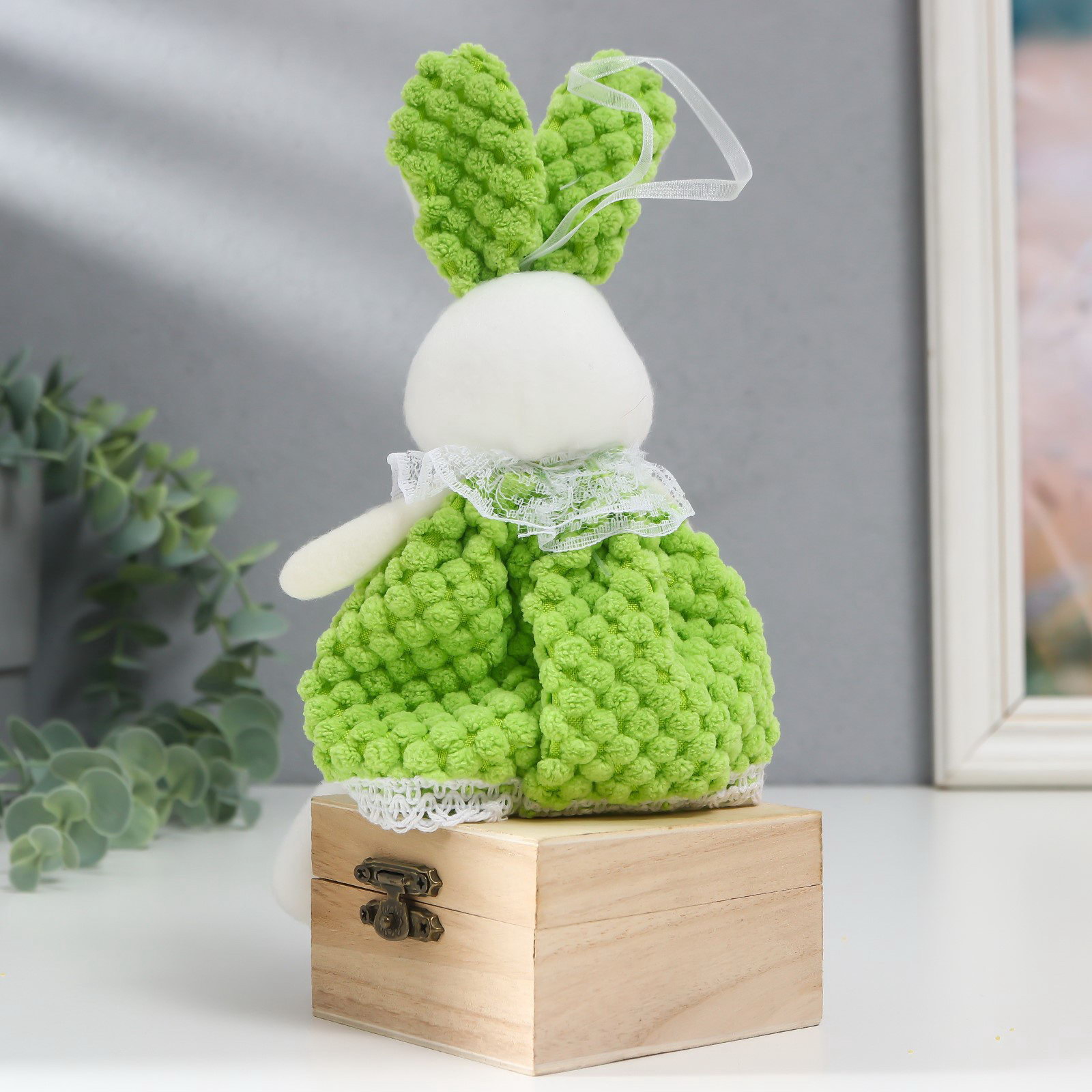 Фигурка "Зайчик в зелёном вязаном платье с цветком", 24 см, 24 см., Китай