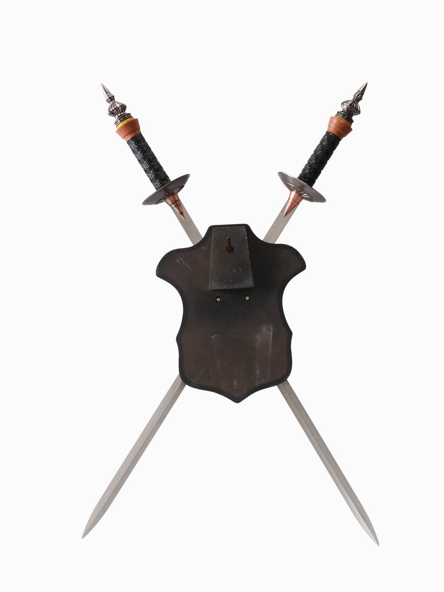Цвет: Коричневый, Серебристый Запрет реализации по сегментам: 00000000208, 00000000516 Размер упаковки: 9 x 25 x 87 см. Вид: Меч Геральдика: Да tnved: 9307000000 Набор: Да В наборе, шт.: 2 Тематика праздника: 23 Февраля Погрузитесь в атмосферу средневековых рыцарских турниров с уникальным настенным декором, который станет ярким акцентом в вашем интерьере. Этот комплект сувенирных мечей на планшете не только привнесет в ваш дом дух приключений, но и станет отличным подарком для любителей истории и культуры. Особенности