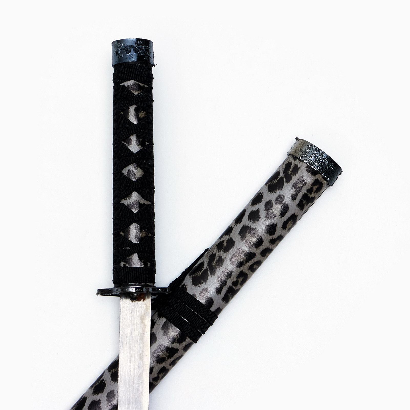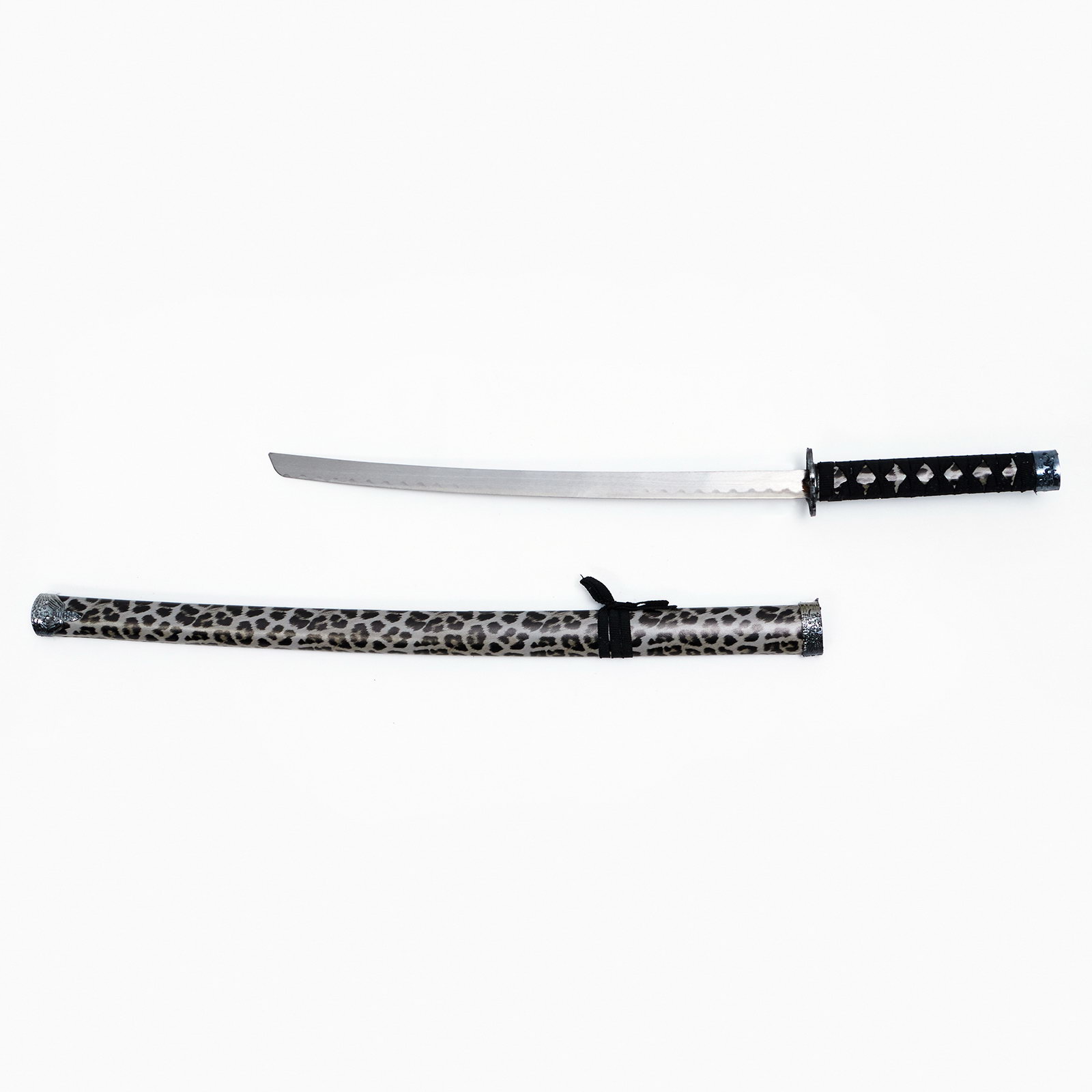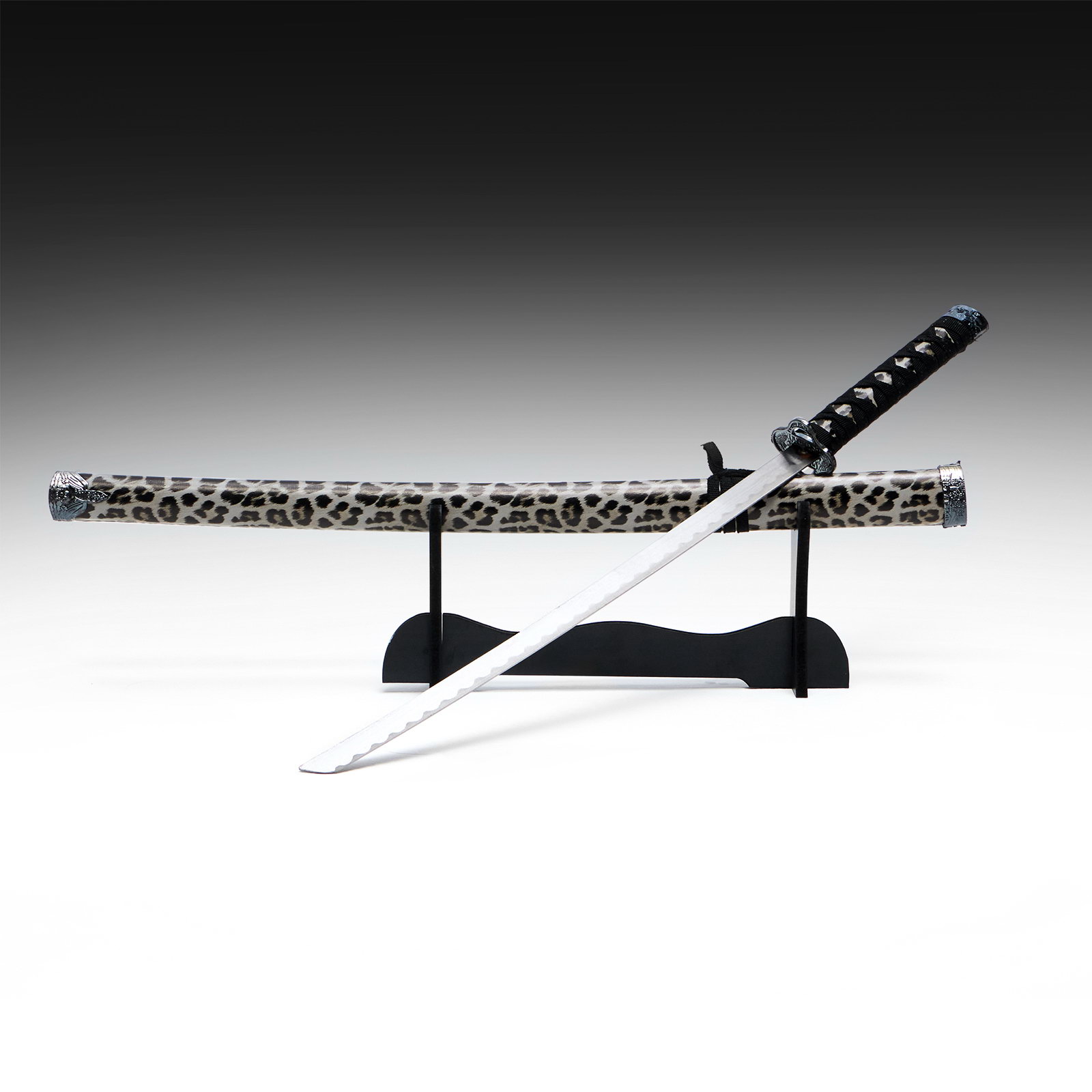 Макет оружия "Сувенирная катана на подставке", темно серые ножны под леопарда, 89 см, 15x8x89 см., Китай