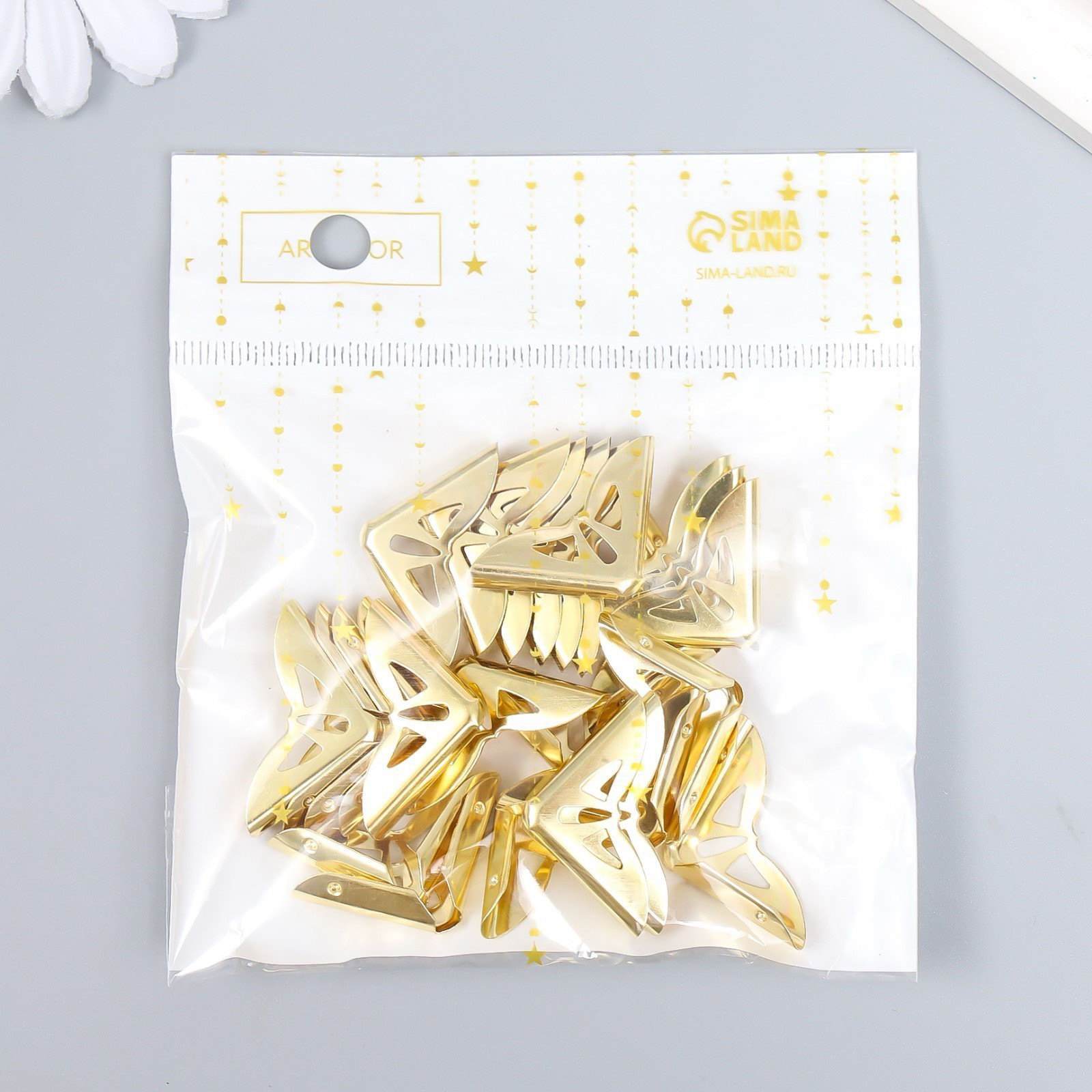 Защитный уголок для альбома, блокнота, металл под золото, резной, 2.1x2.8x0.5 см, 2.8x2.1x0.5 см., Арт Узор, Китай
