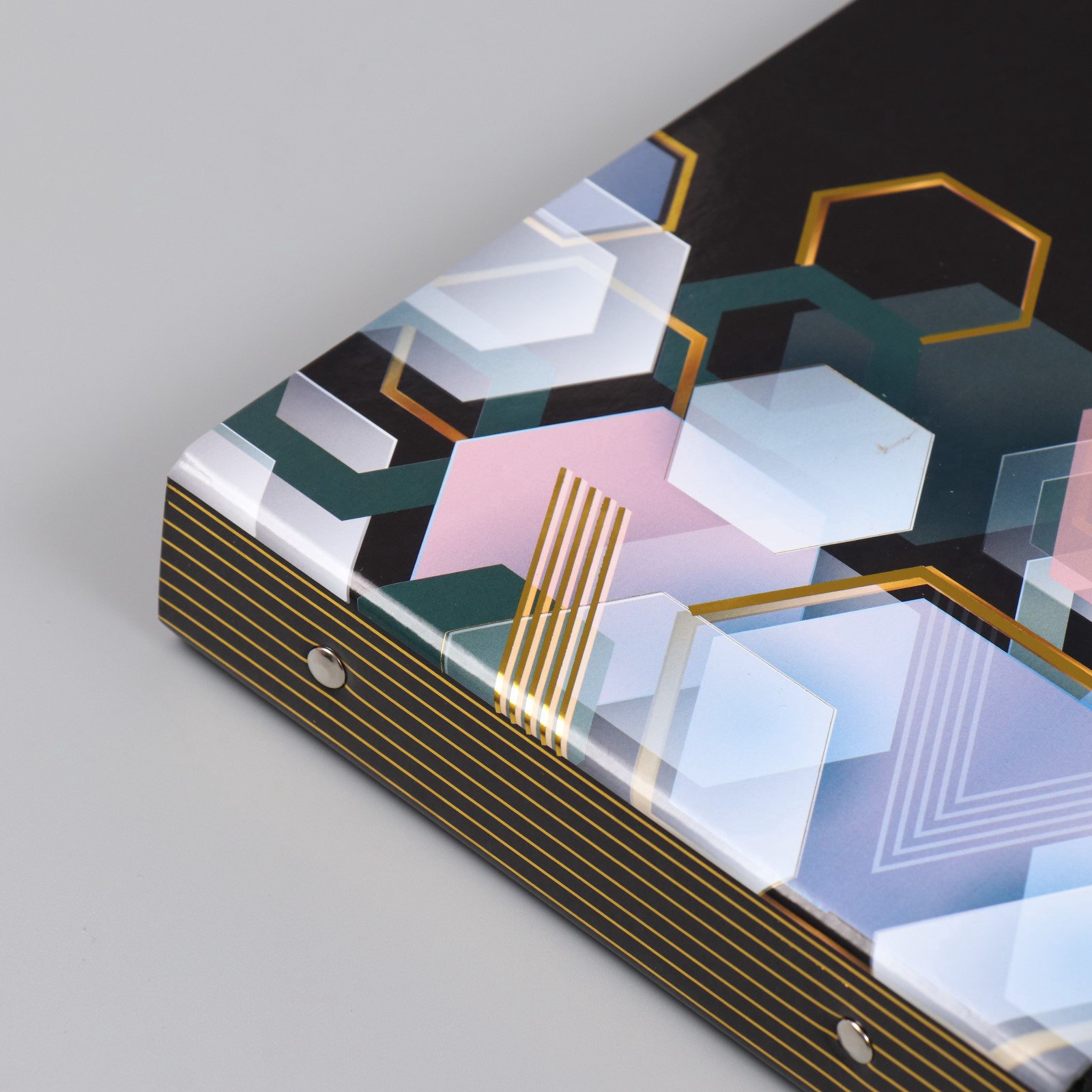 Фотоальбом на кольцах 25 листов "Геометрия", с наклейками, тиснение золото, 19x27x3 см, Keep memories, Китай