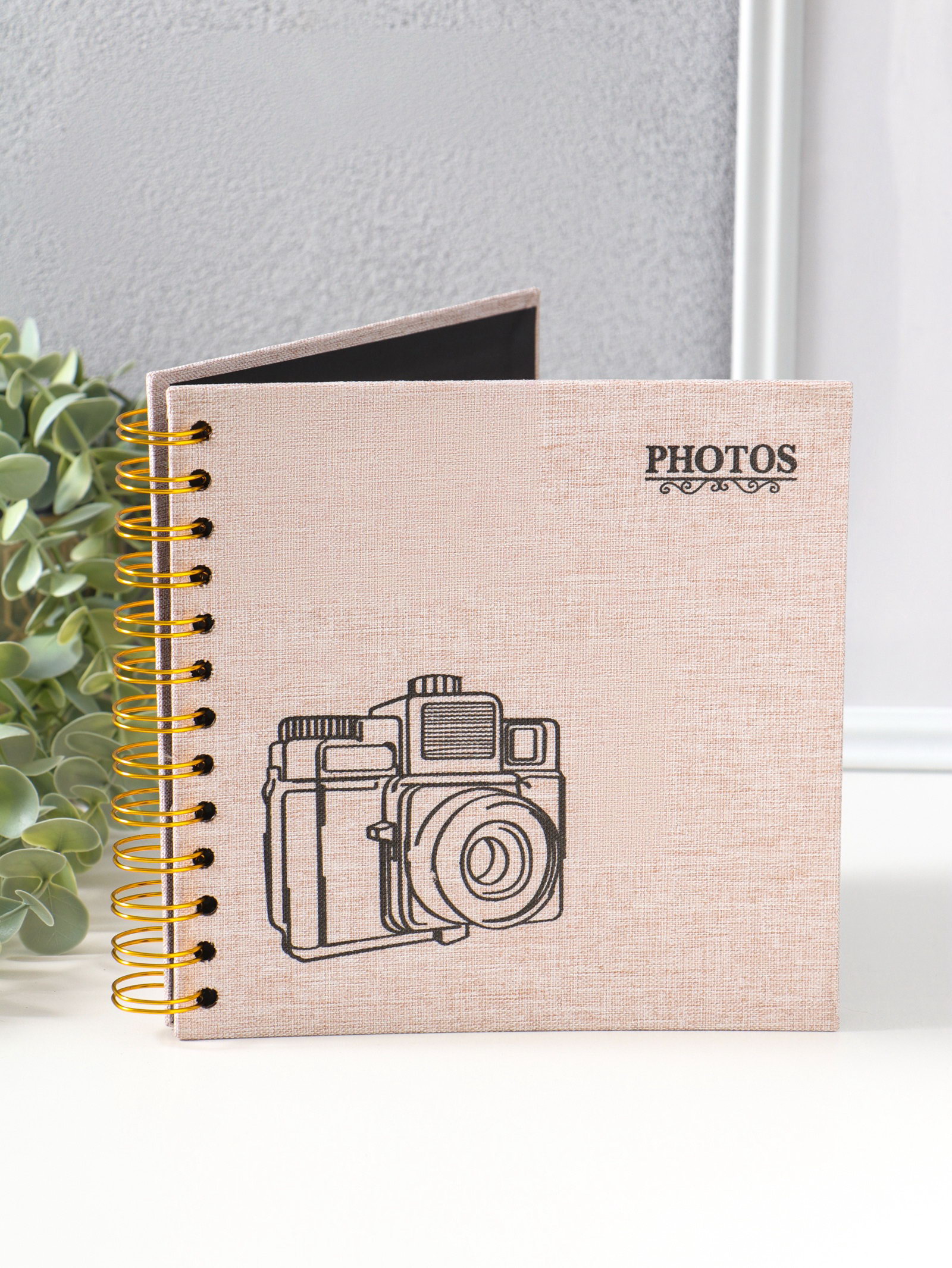 Фотоальбом на спирали 20 листов "Фотоаппарат. Беж", текстиль, чёрный картон, 17.5x17.5 см, 17.5x17.5 см., Китай