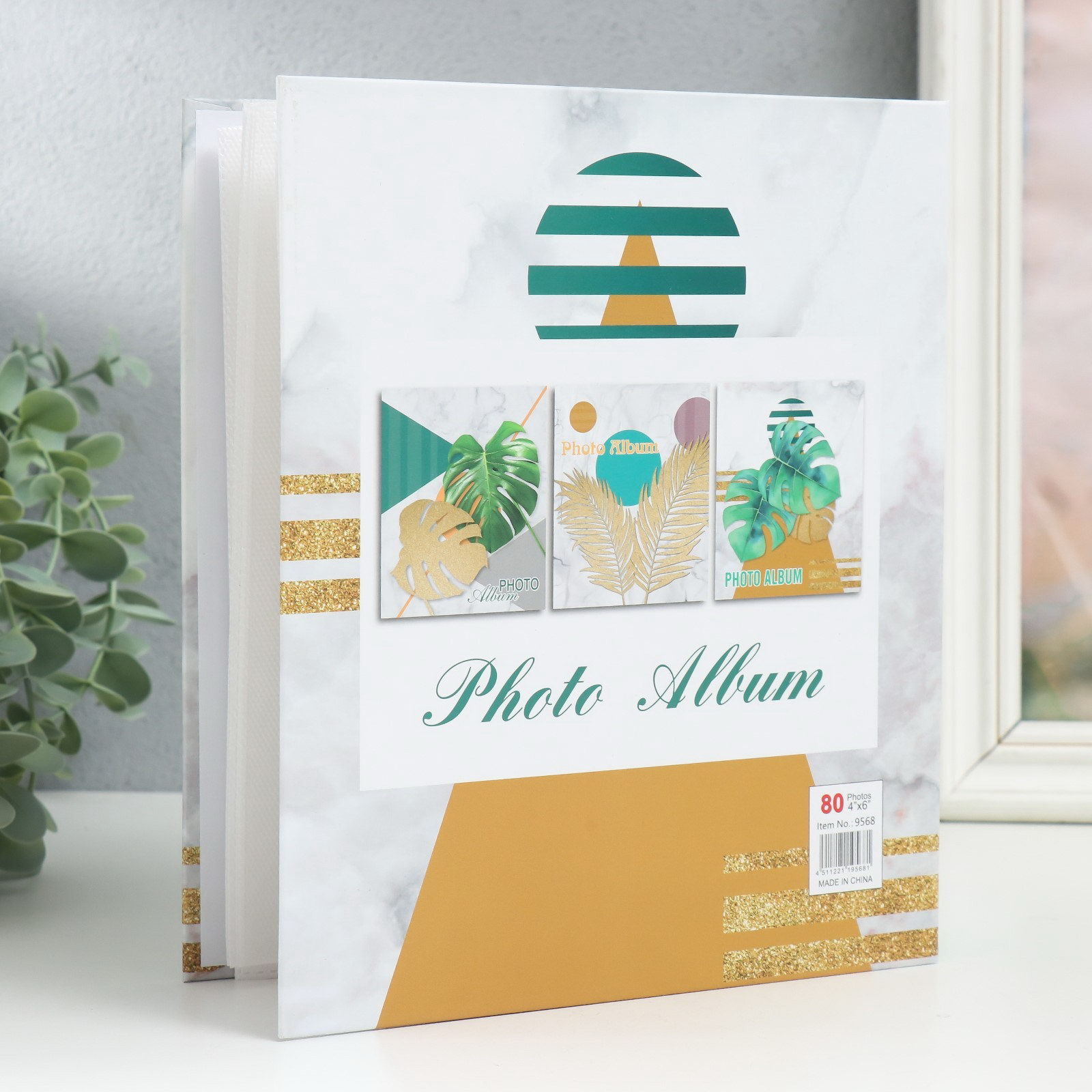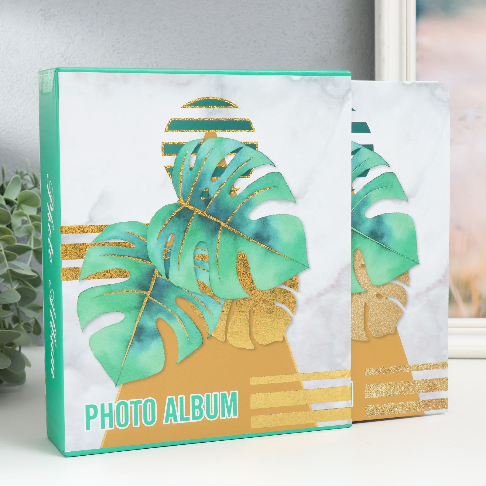 Фотоальбом на 80 фото 10х15 см "Тропические листья в геометрии" 23х19х5 см, 5x19x23 см., Китай