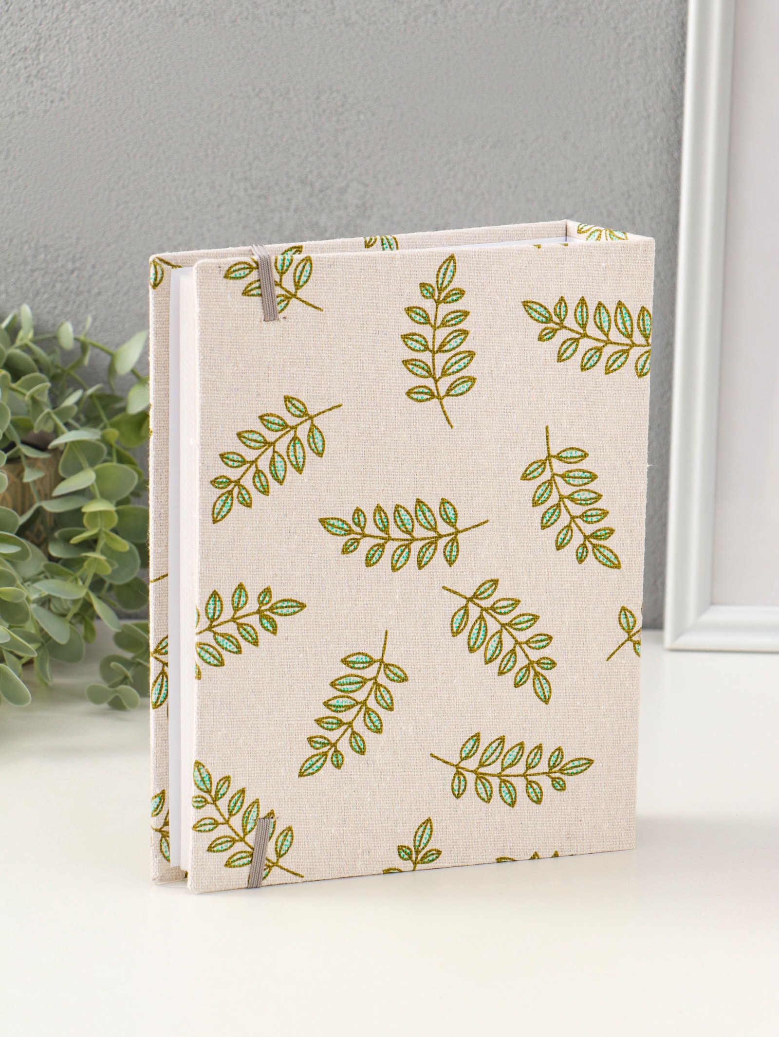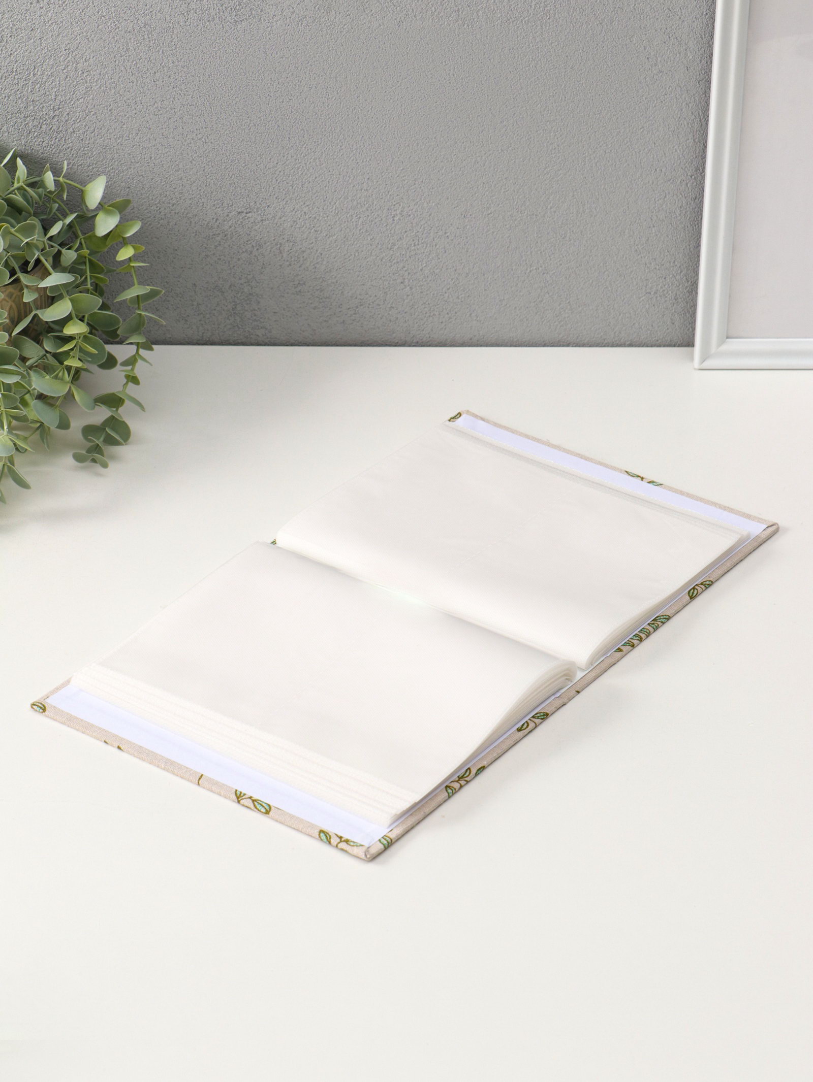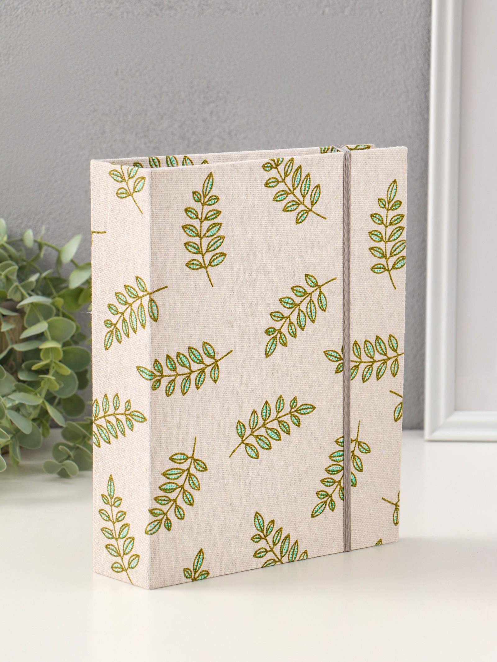 Фотоальбом на 200 фото 10х15 см на резинке "Зелёные веточки" текстиль, 23х17.5х5 см, 17.5x23x5 см., Китай