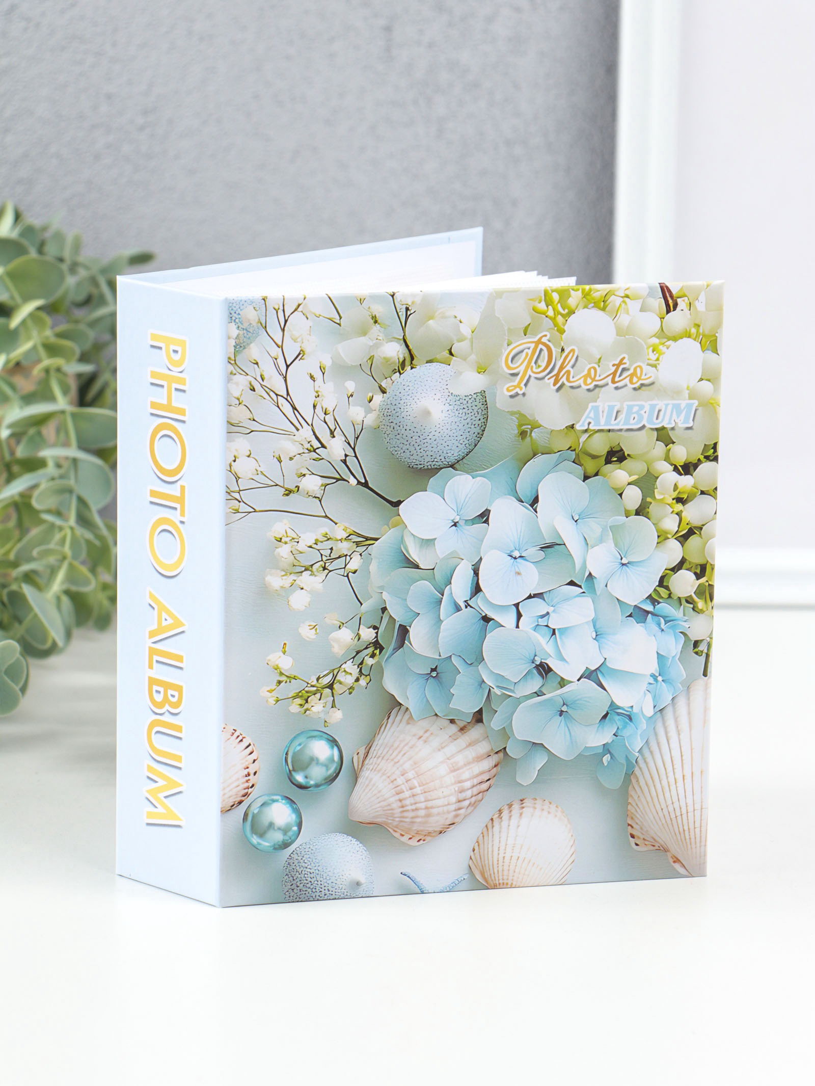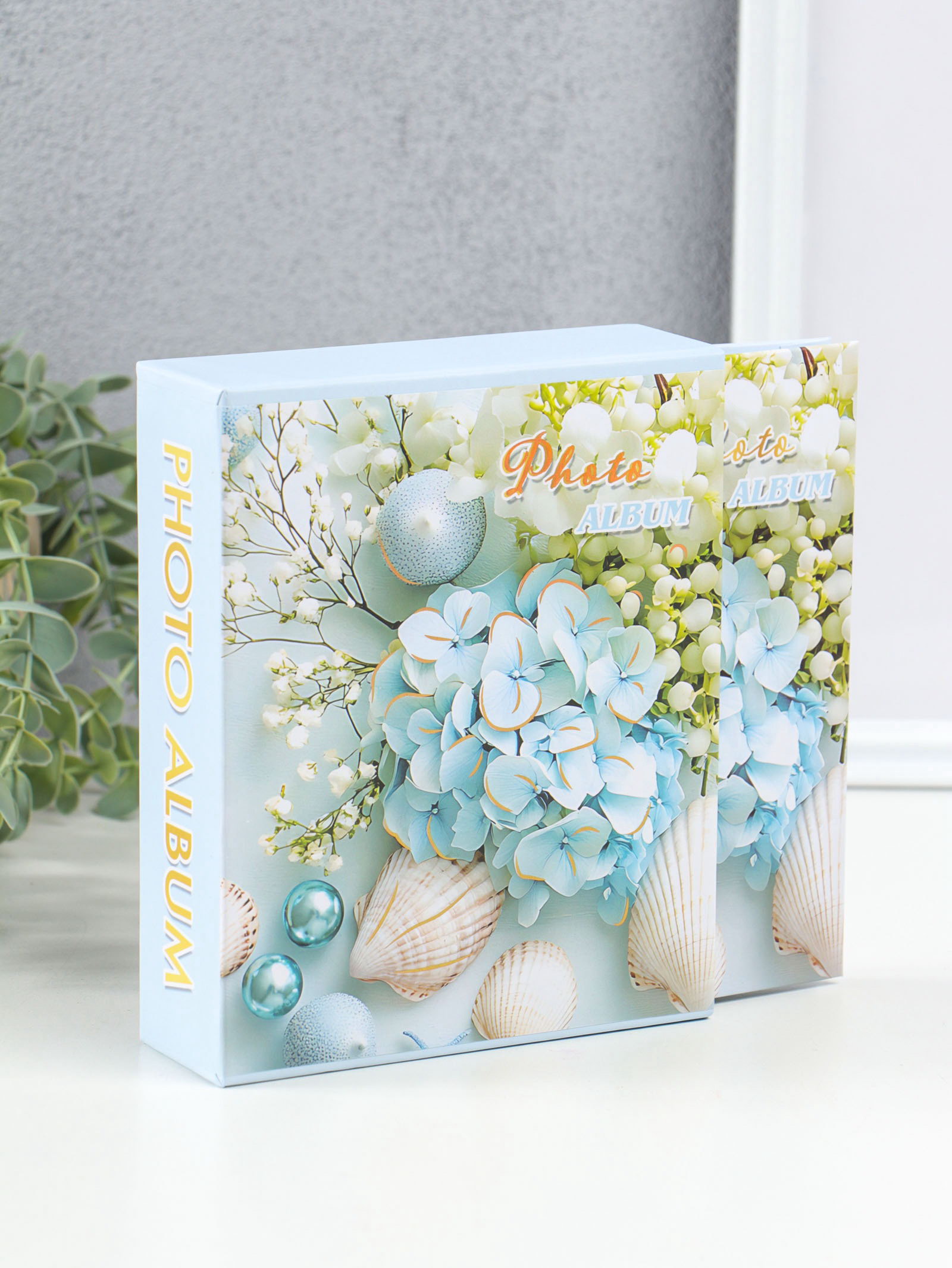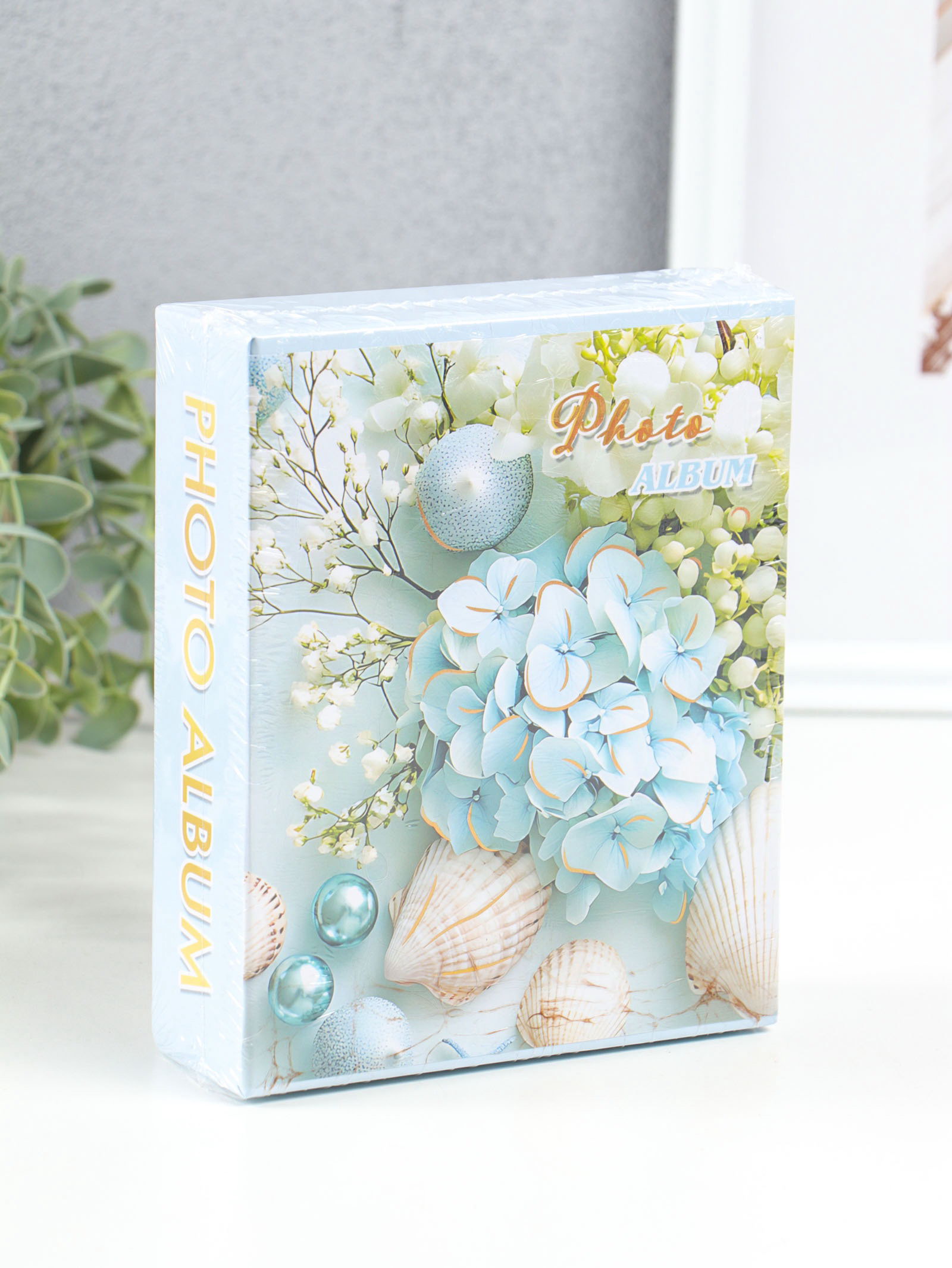 Фотоальбом на 40 фото 10х15 см "Голубая гортензия и ракушки" в коробке 4.5х14х17 см, 14x17x4.5 см., Китай