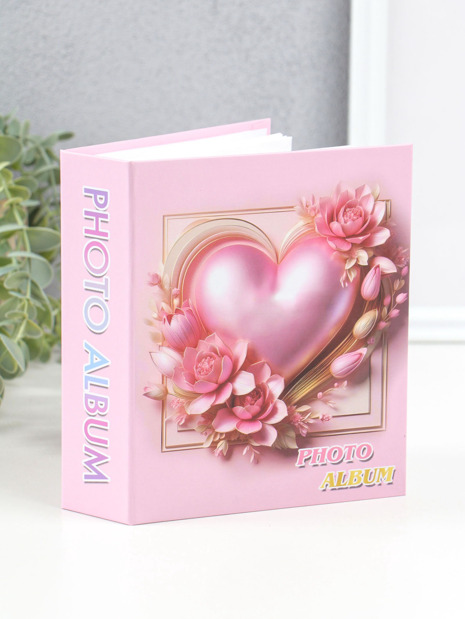Фотоальбом на 40 фото 10х15 см "Розовое сердце в цветах" в коробке 4.5х14х17 см, 14x17x4.5 см., Китай