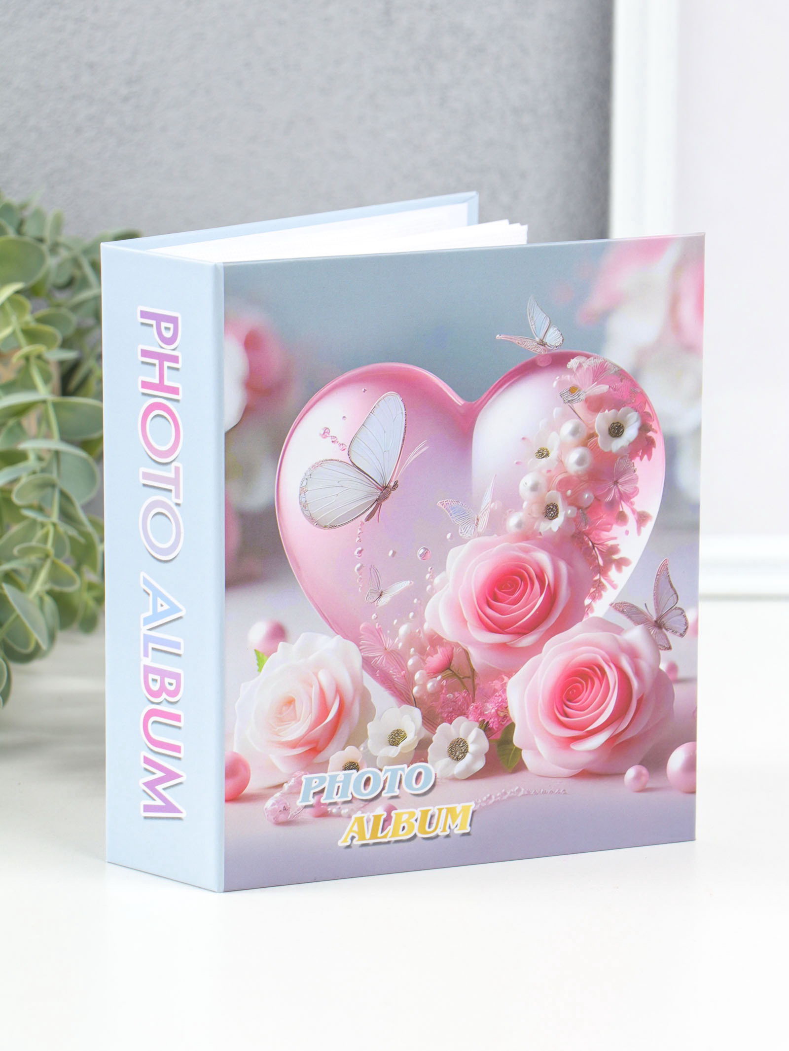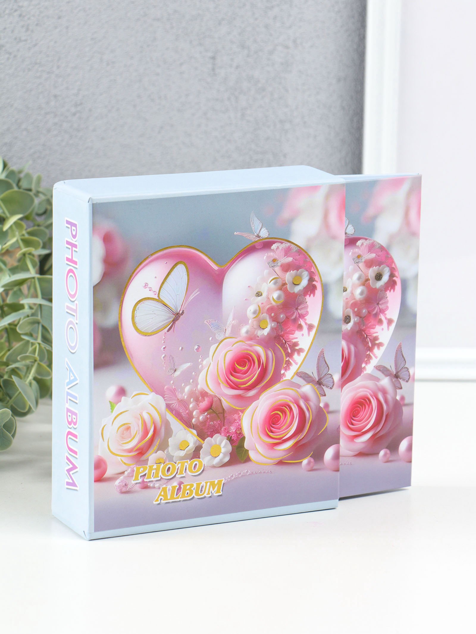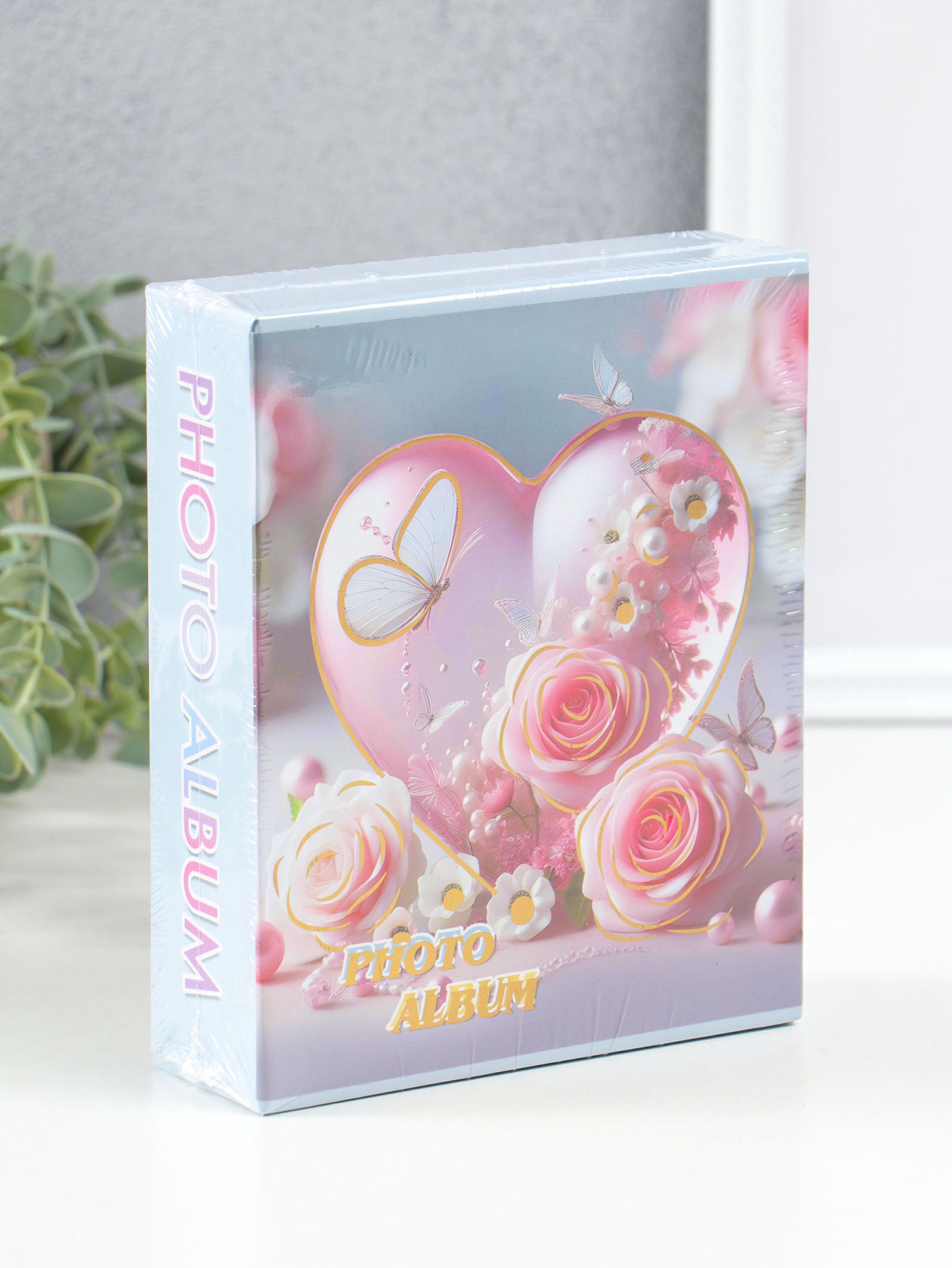 Фотоальбом на 40 фото 10х15 см "Сердце и бабочки с розами" в коробке 4.5х14х17 см, 14x17x4.5 см., Китай