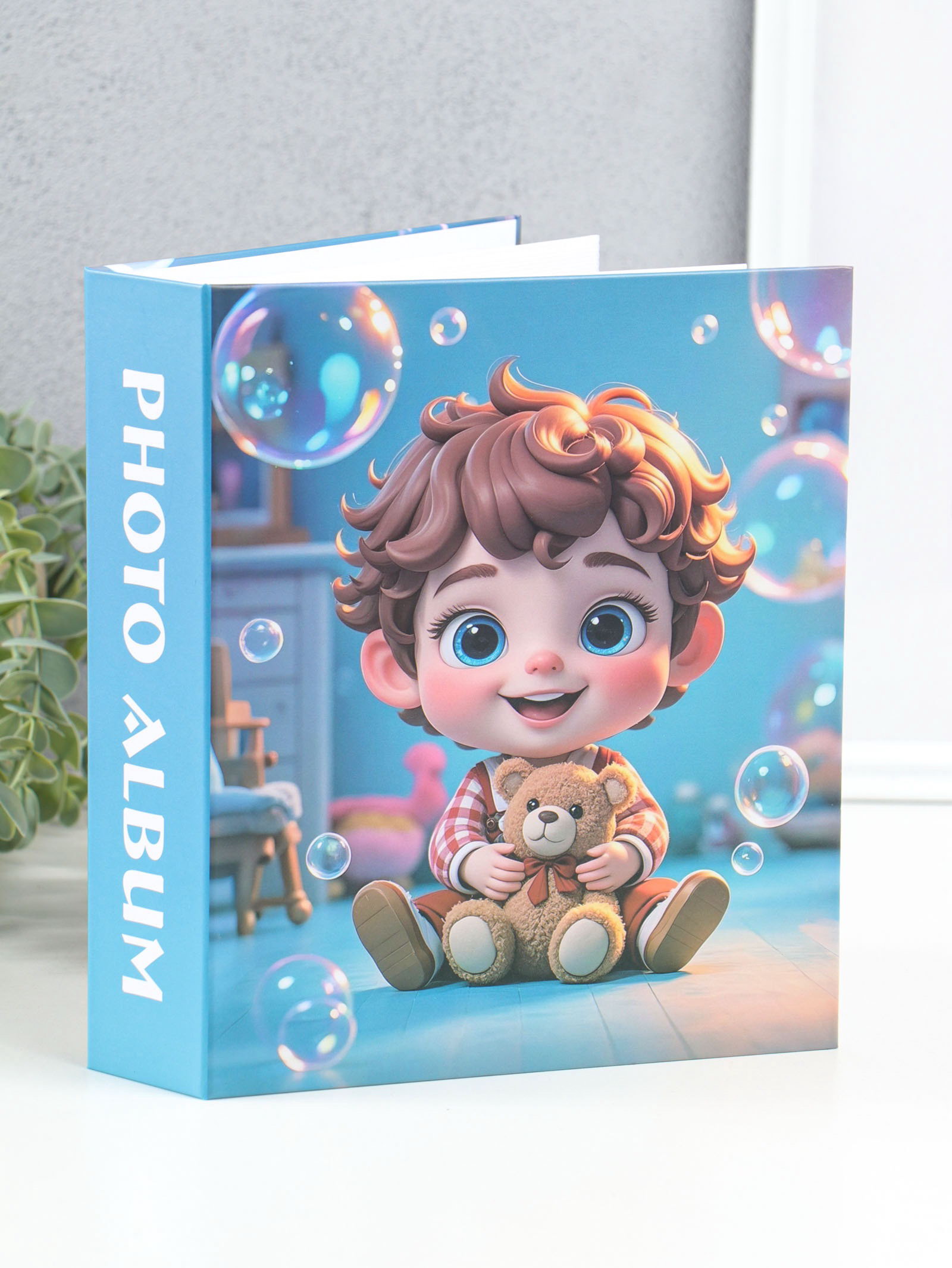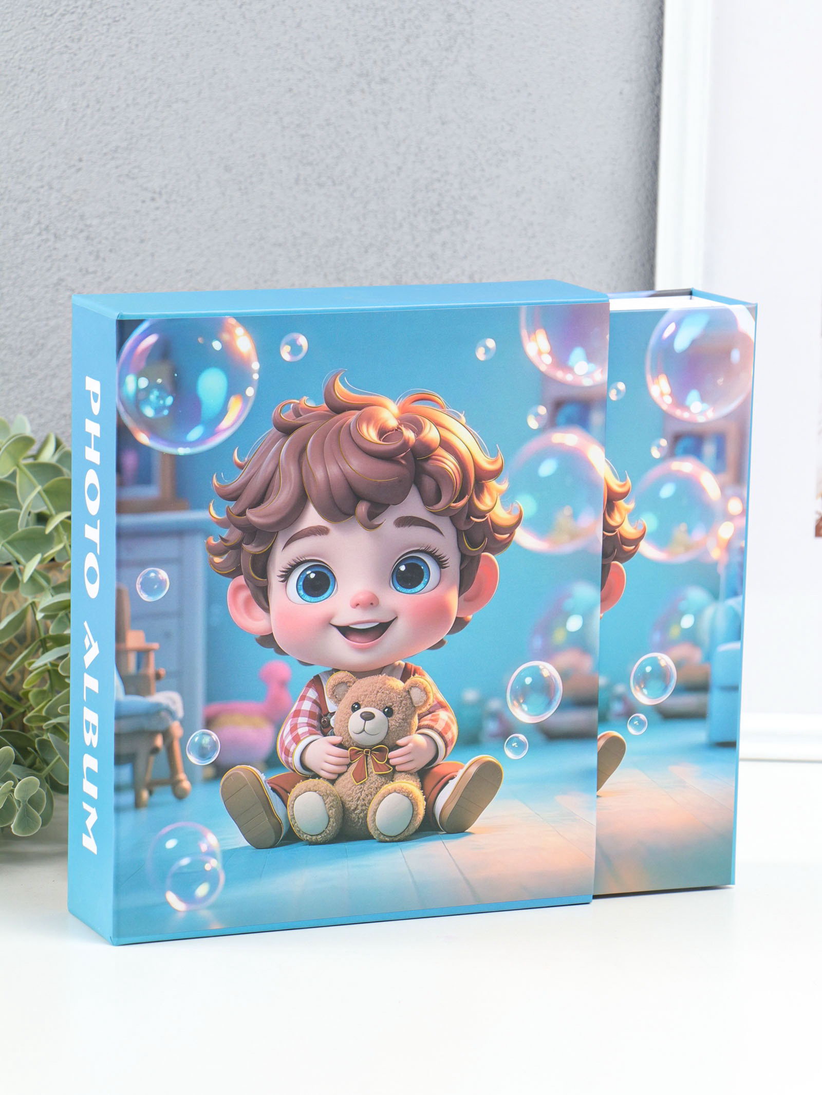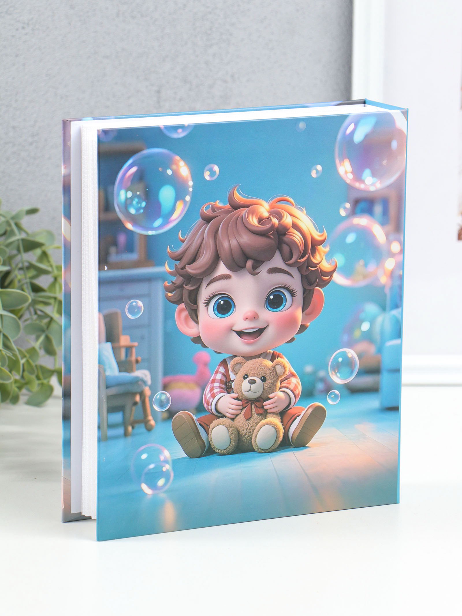 Фотоальбом на 80 фото 10х15 см "Мальчик в клетчатой рубашке с мишкой" в коробке 5х19х22.8 см 10962, 19x22.8x5 см., Китай