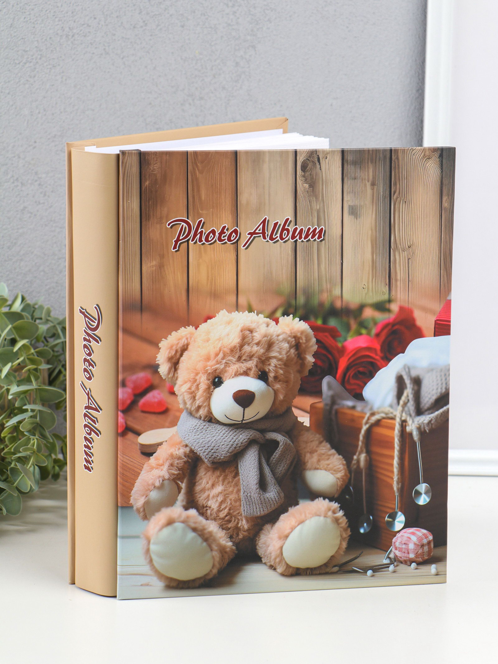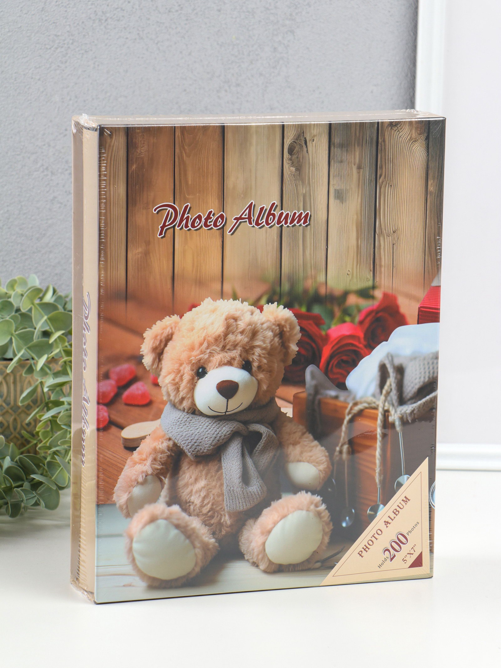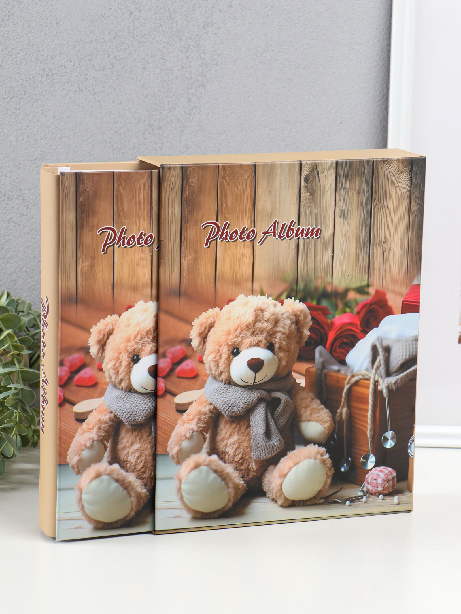 Фотоальбом на 200 фото 13х18 см "Медведь в шарфе, красные розы" в коробке 5.5х23.5х29.5 см 1096272, 23.5x29.5x5.5 см., Китай
