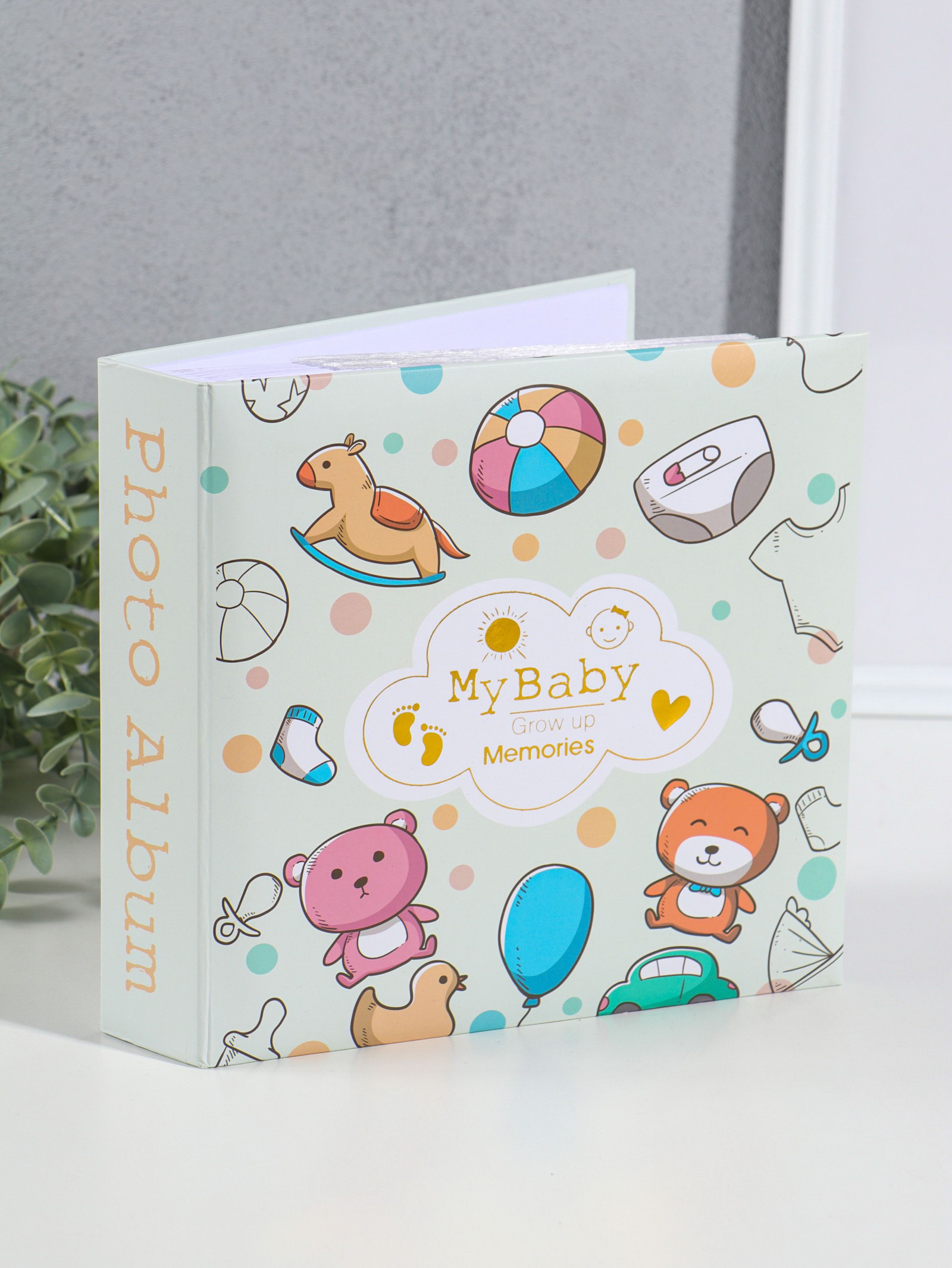 Фотоальбом на 200 фото 10х15 см "Малышковый" зелёный, бумажные листы 4.5х22х22.5 см, 22x22.5x4.5 см., Китай