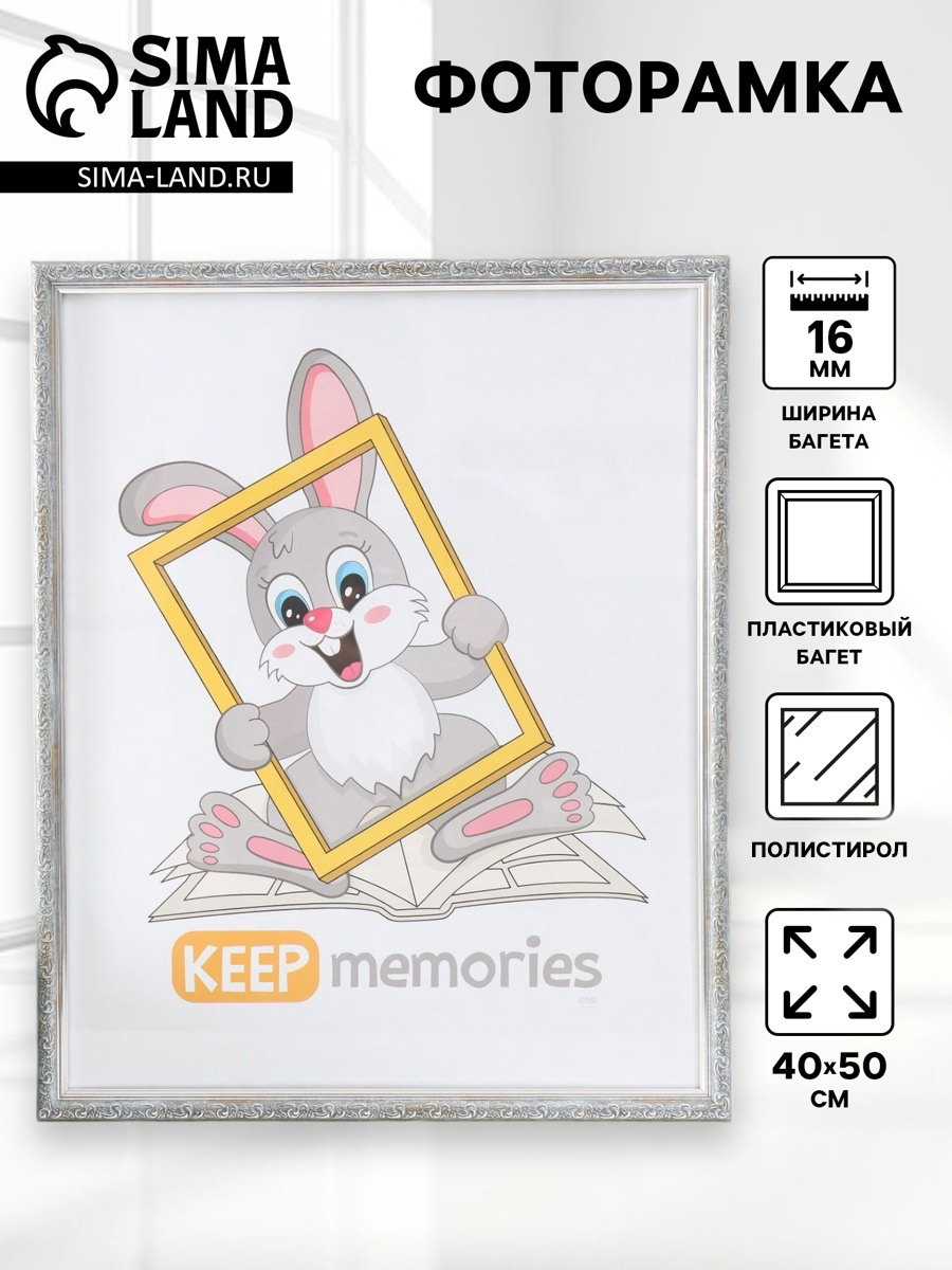 Фоторамка пластик "Винтаж" 40х50 см, морозное серебро, Keep memories, Россия