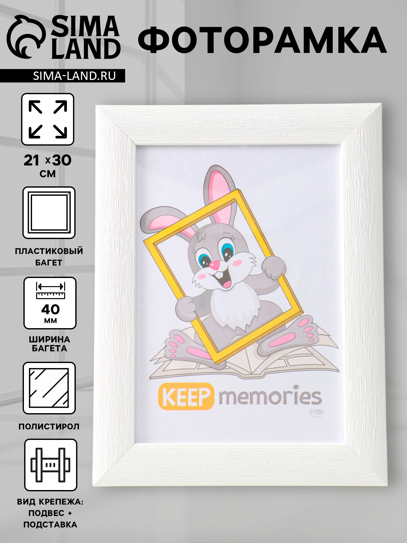 Размер упаковки: 37 x 1.3 x 28 см. tnved: 3926909700 Температурное ограничение: Нет Размер фото: 21 x 30 Материал защитного экрана: Полистирол Материал багета: Пластик Вид крепежа: Подвес + Подставка Набор: Нет Цвет: Белый Ширина багета, мм: 40 Паспарту: Нет Количество фотографий: 1 Эта классическая фоторамка формата A4 сохранит ваше важное воспоминание в идеальном виде. Её чистый белый цвет и строгий дизайн впишутся в любой интерьер от домашнего кабинета до офисного стола. Вы можете поставить её на полку с помощью устойчивой ножки или повесить на стену, чтобы создать уютную фотозону. Ключевые детали