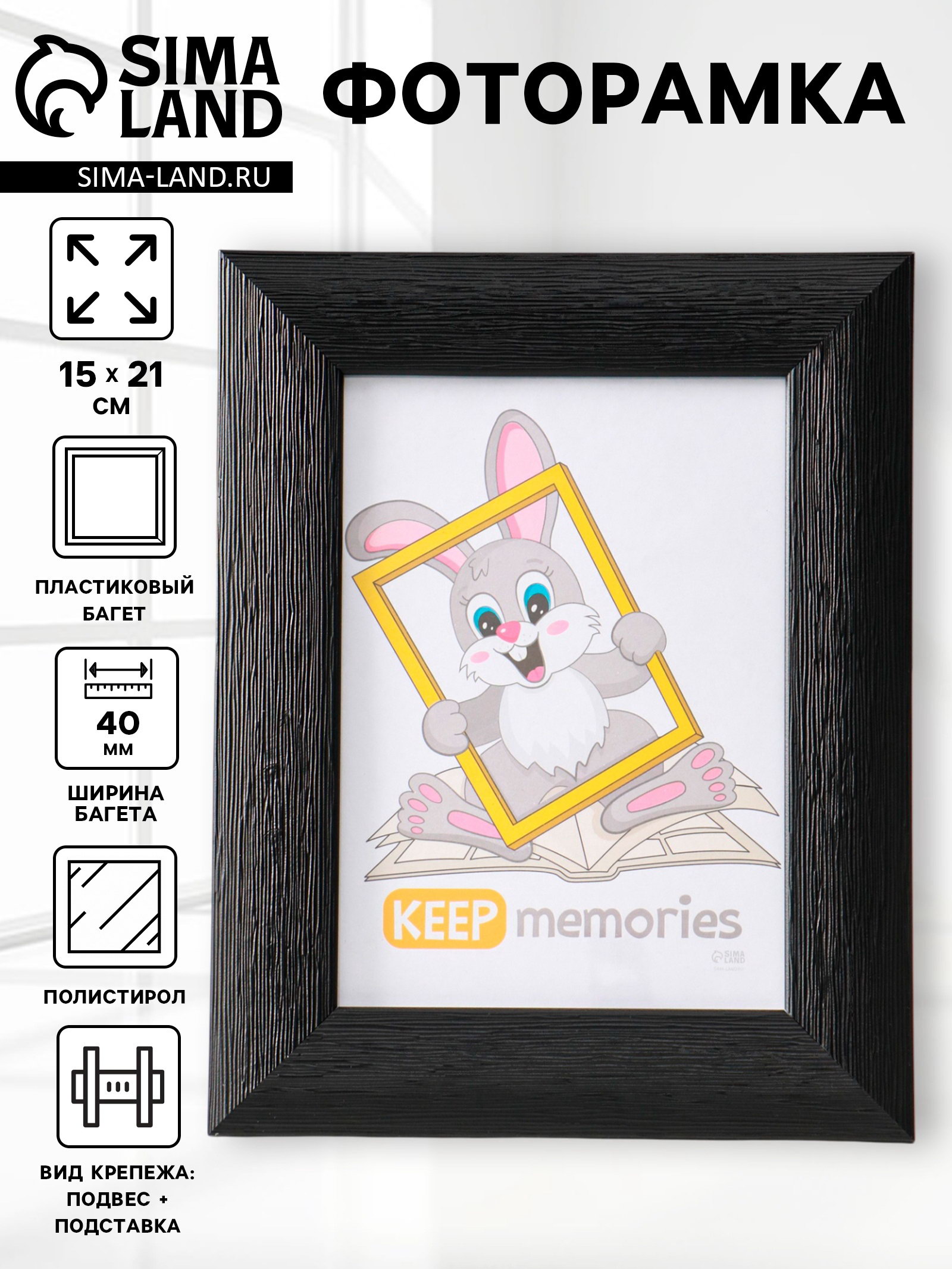 Фоторамка для фото 15x21 см Luxe Elegance, пластик, чёрный,, Keep memories, Россия