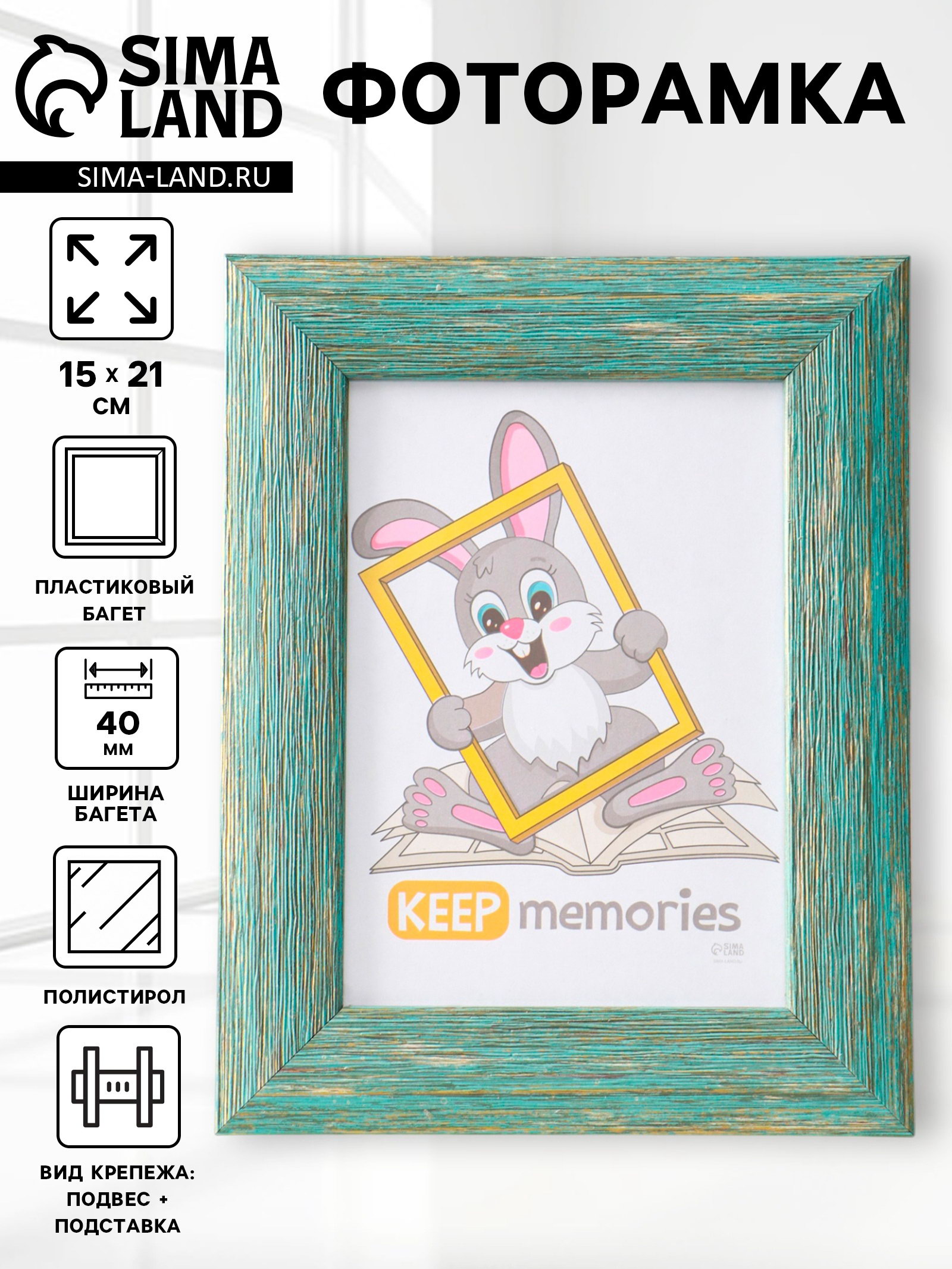 Размер упаковки: 28 x 1.3 x 22 см. tnved: 3926909700 Температурное ограничение: Нет Набор: Нет Паспарту: Нет Вид крепежа: Подвес + Подставка Ширина багета, мм: 40 Размер фото: 15 x 21 Цвет: Зелёный Материал защитного экрана: Полистирол Материал багета: Пластик Количество фотографий: 1 Эта элегантная фоторамка создана, чтобы хранить ваши самые тёплые воспоминания в самом выгодном свете. Её морской зелёный цвет и классический широкий багет привносят в интерьер ноту спокойствия и утончённости, идеально дополняя как современный, так и традиционный декор. Ключевые преимущества