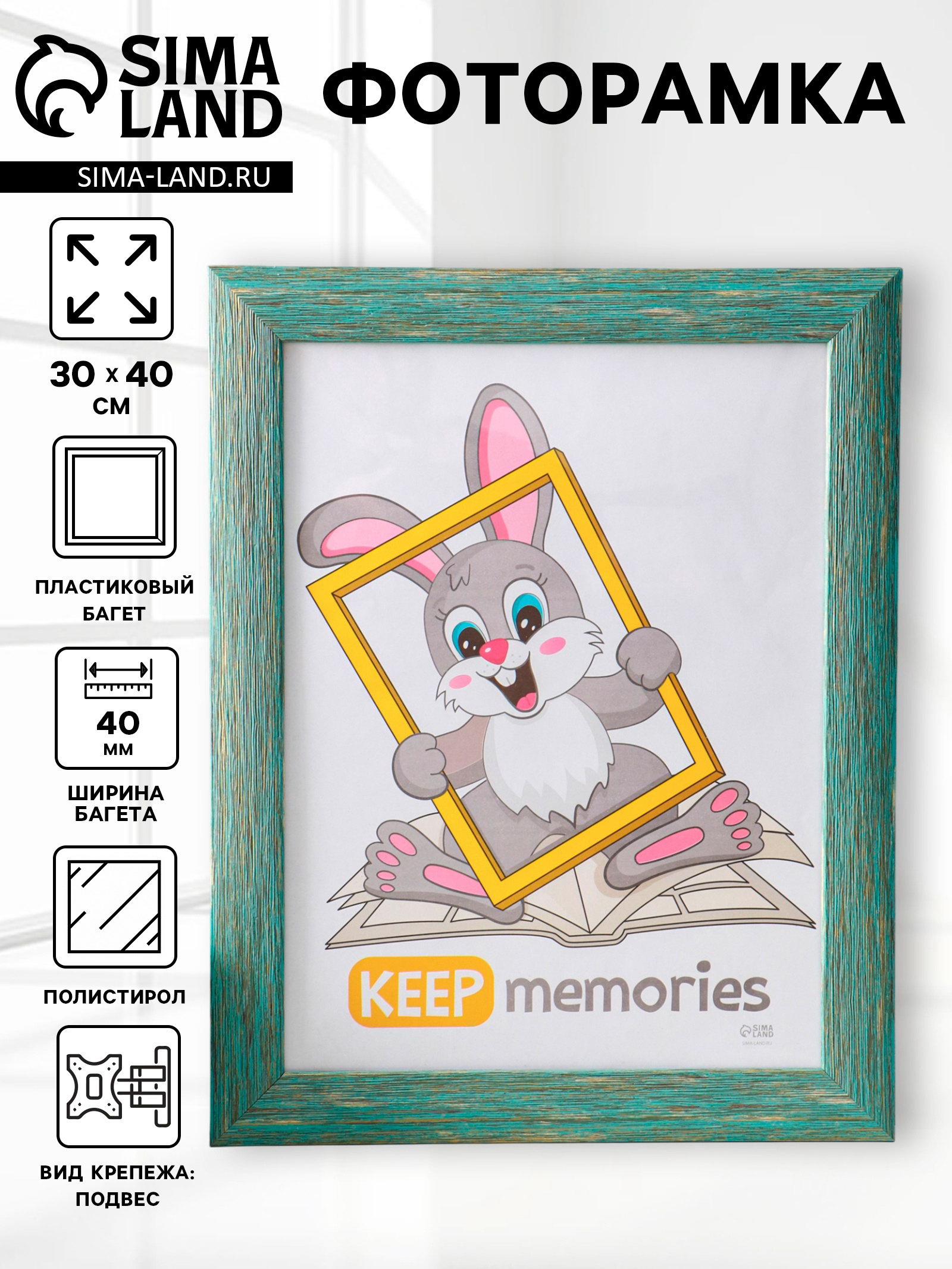 Размер упаковки: 47 x 1.5 x 37 см. tnved: 3926909700 Температурное ограничение: Нет Ширина багета, мм: 40 Паспарту: Нет Набор: Нет Цвет: Зелёный Размер фото: 30 x 40 Вид крепежа: Подвес Материал багета: Пластик Материал защитного экрана: Полистирол Количество фотографий: 1 Эта элегантная фоторамка для фотографий 30 на 40 сантиметров создана, чтобы ваши самые важные воспоминания всегда были на виду. Узкий пластиковый багет морского оттенка и чистый экран подчеркивают снимок, а не отвлекают от него. Просто повесьте её на стену и любимый портрет или пейзаж станет стильным акцентом в интерьере. Особенности