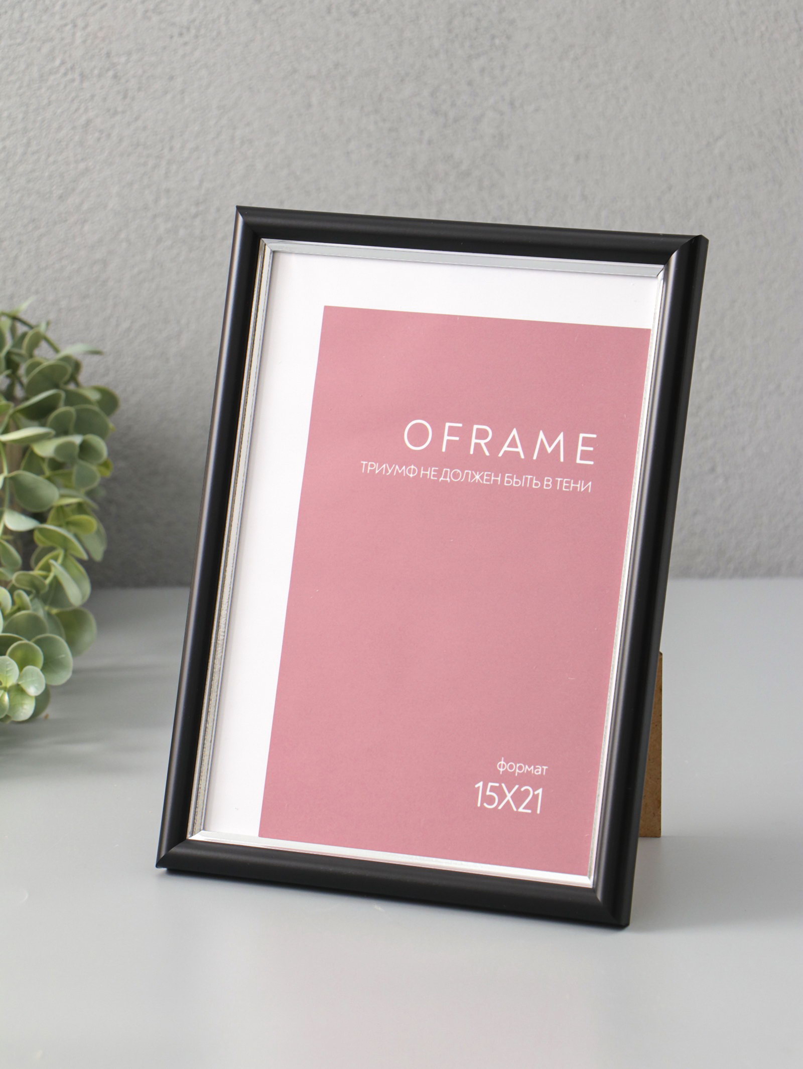 Фоторамка для фото 15x21 см Oframe, пластик, чёрный с серебром,, Россия