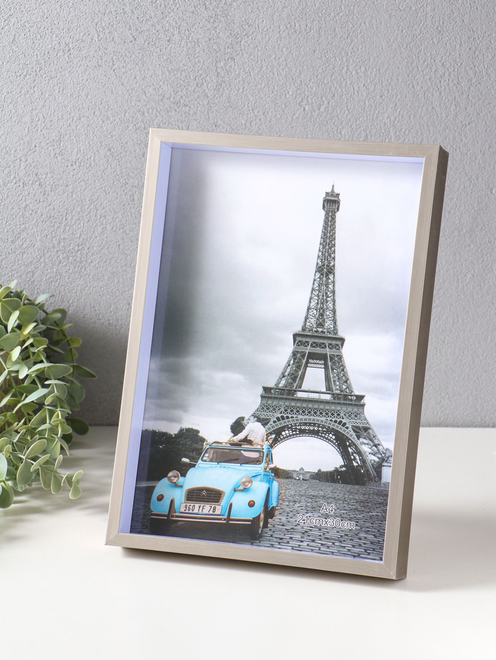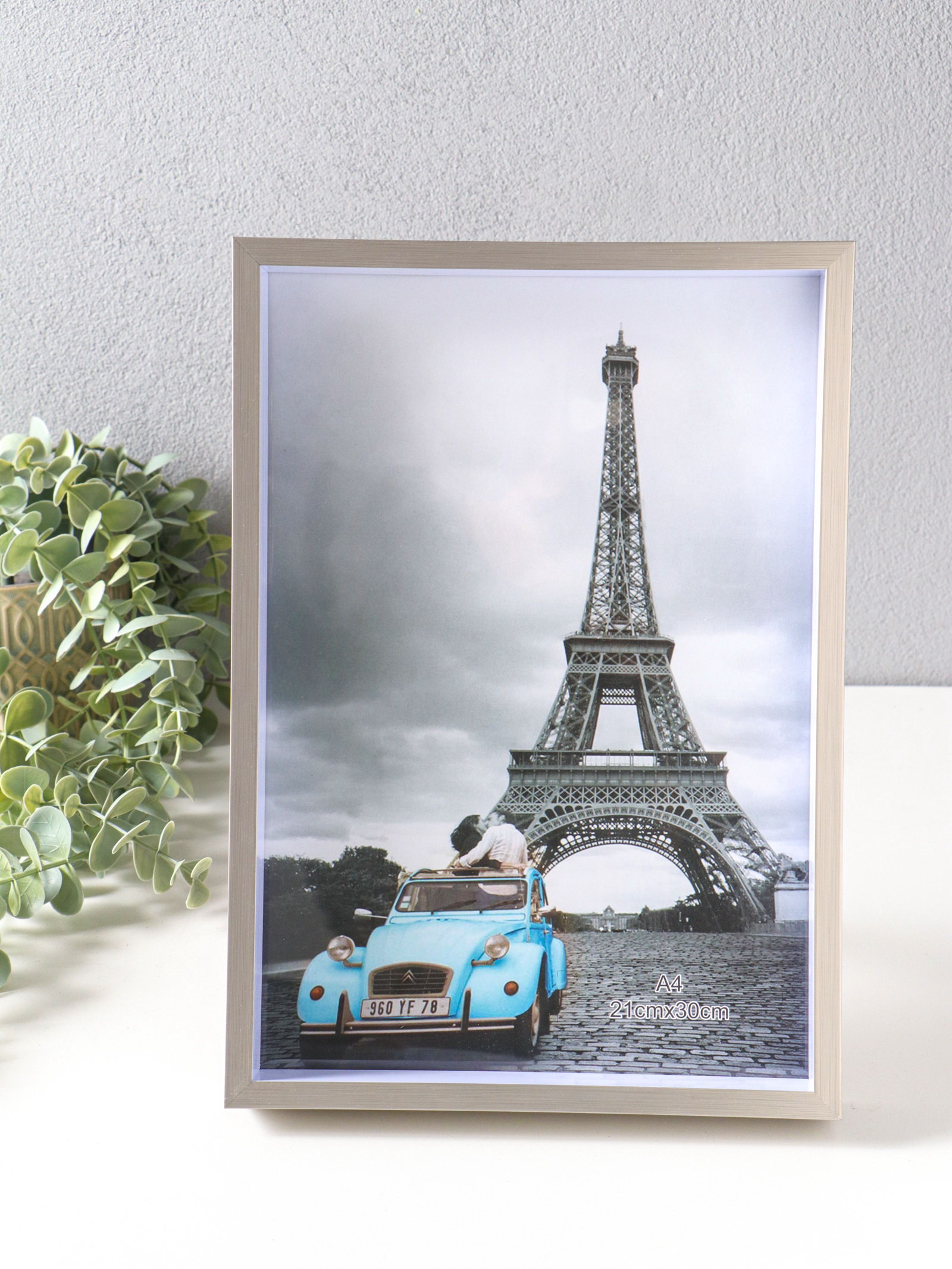 Фоторамка для фото формат А4 "Ламберто", пластик, серебро с белым, 31x21.8x3.5 см, 21.8x31x3.5 см., Китай