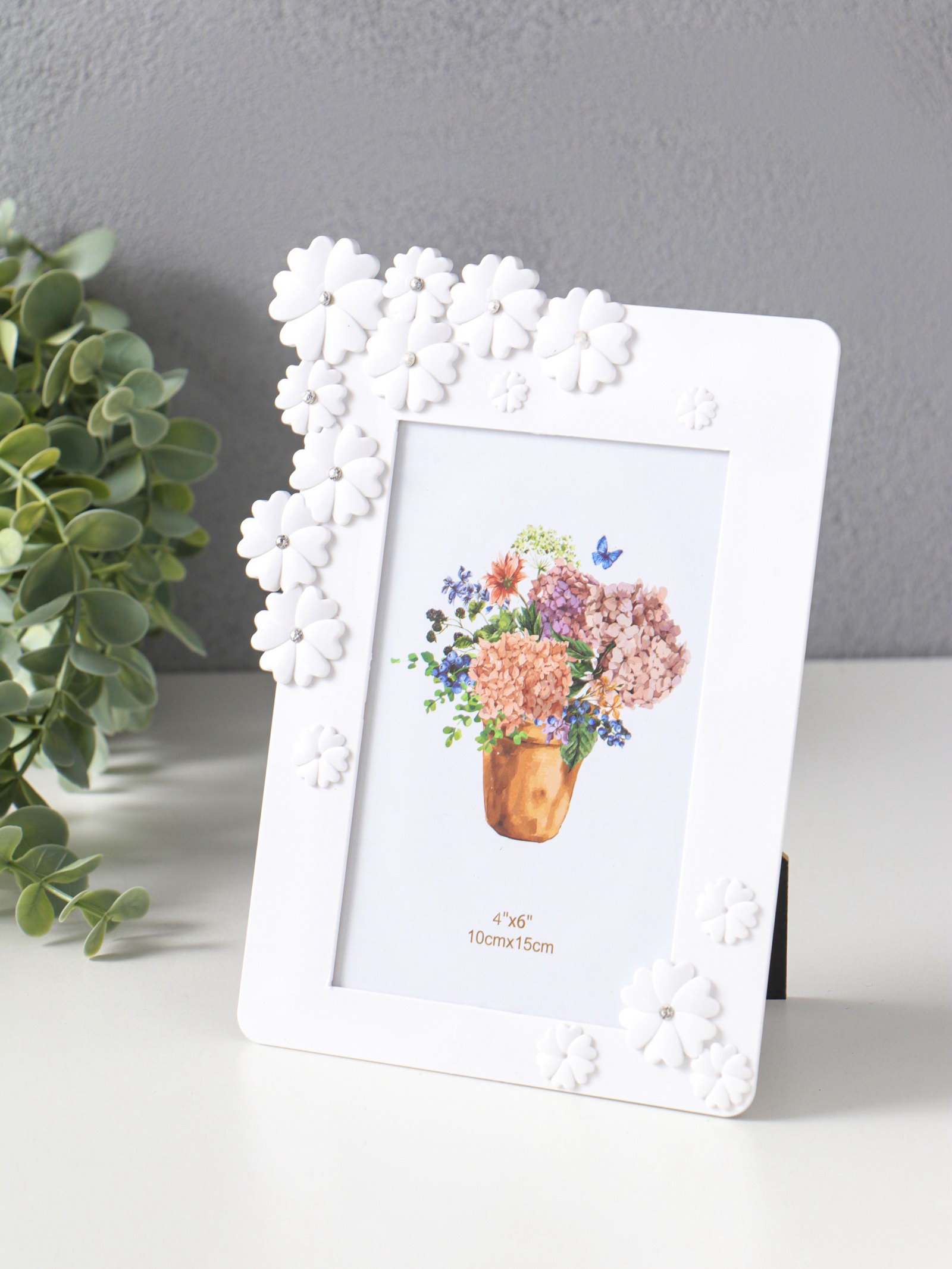 Фоторамка для фото 10x15 см "Незабудки", пластик, белая, 20x15 см, 15x20 см., Китай