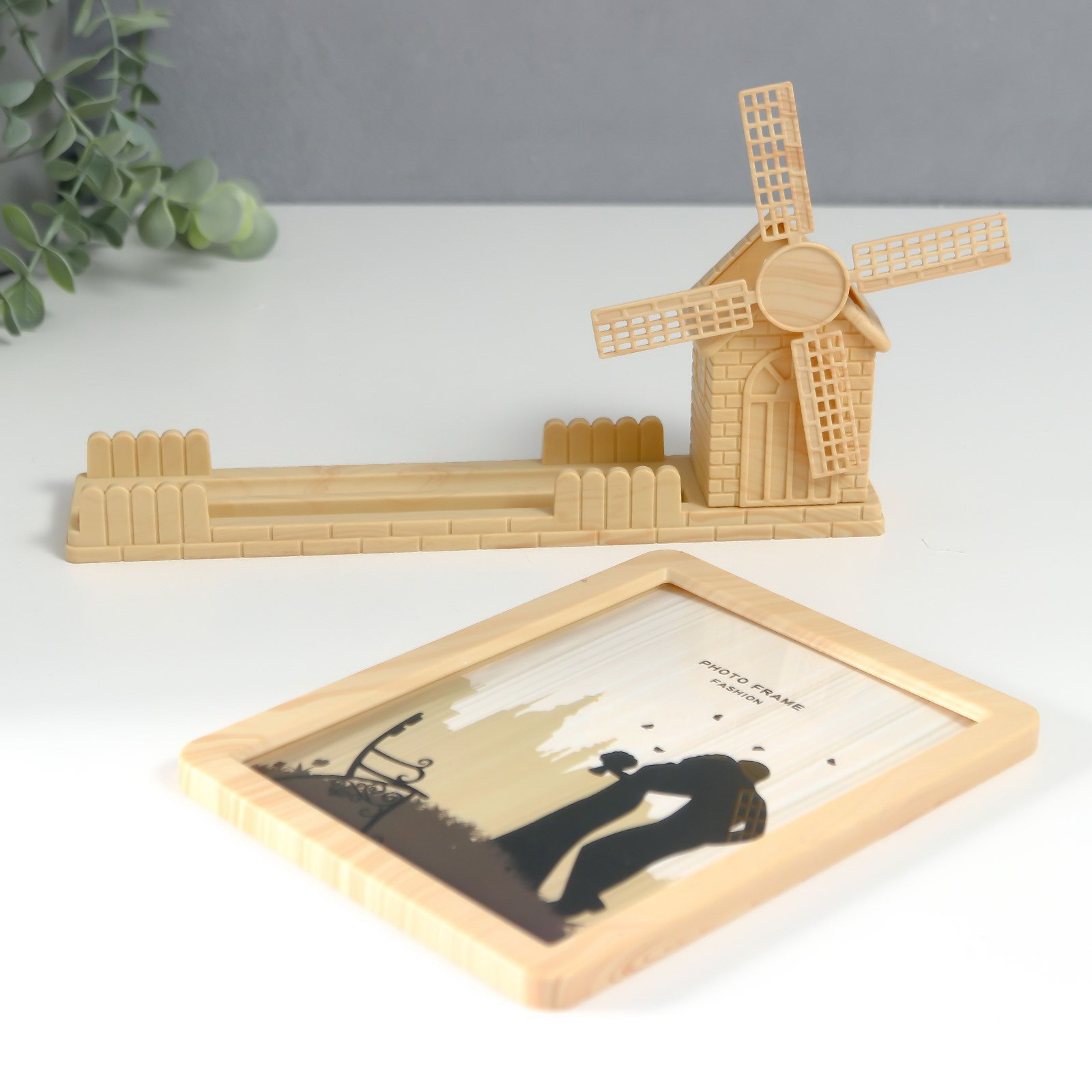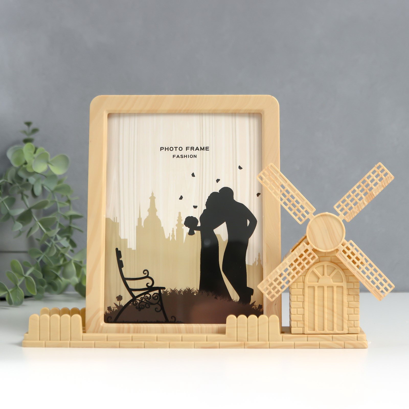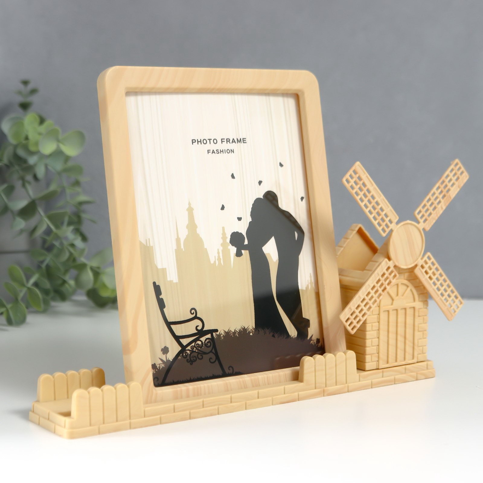 Фоторамка пластик под дерево13х18 см с карандашницей "Мельница" 5х26.3х15.5 см, 26.3x5x15.5 см., Китай