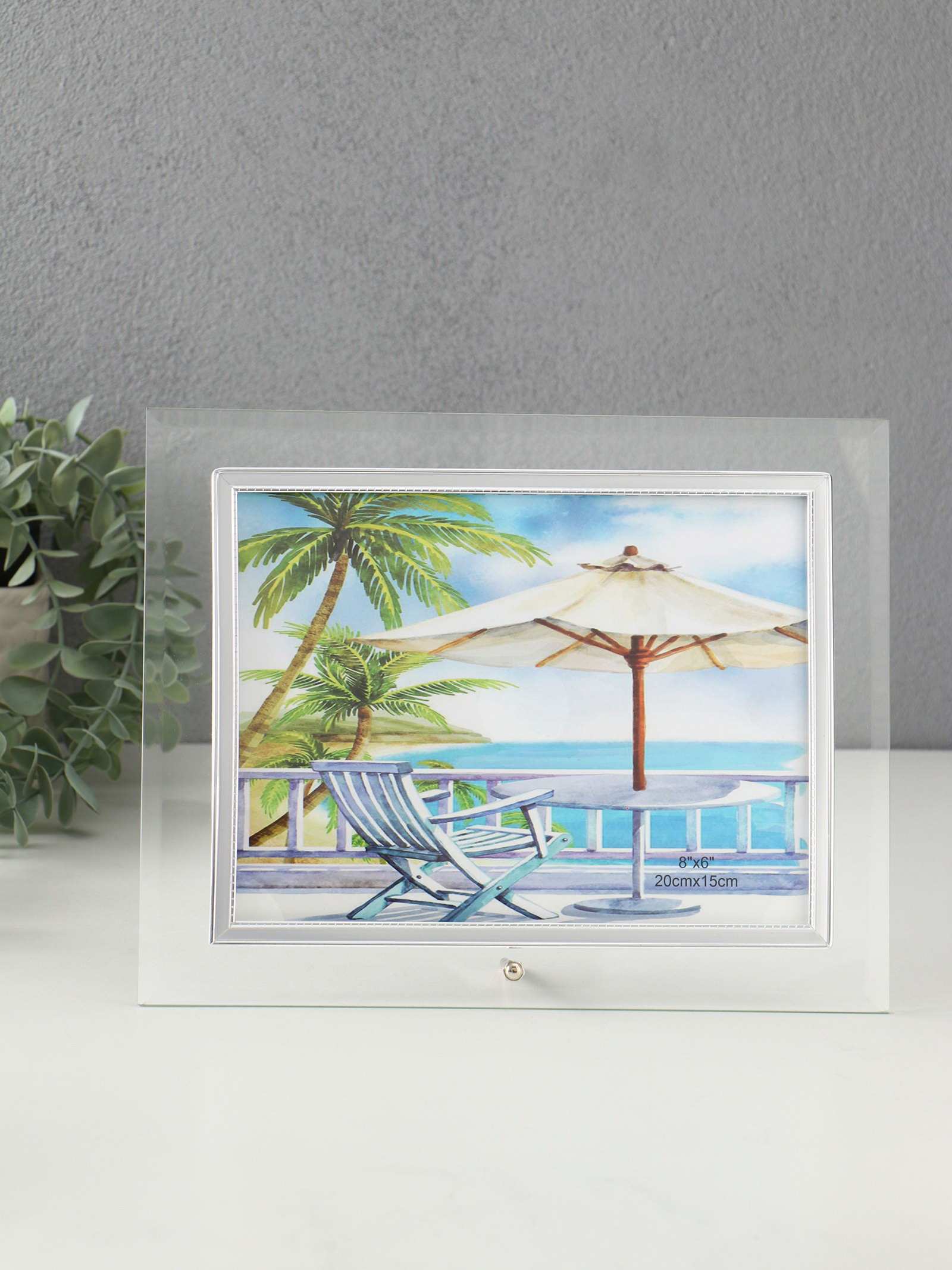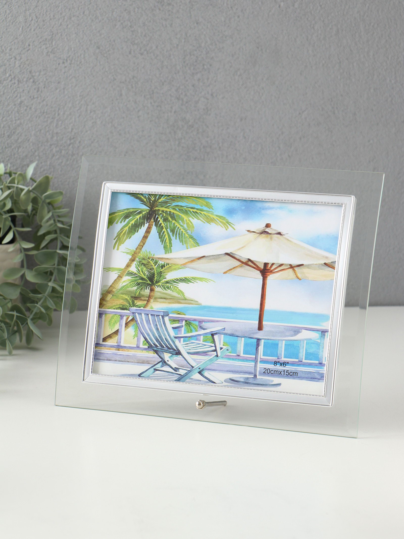 Фоторамка для фото 15x20 см "Серебряный кант", стекло, горизонтальная, выгнутая, прозрачная, 25.5x21 см, 25.5x21 см., Китай