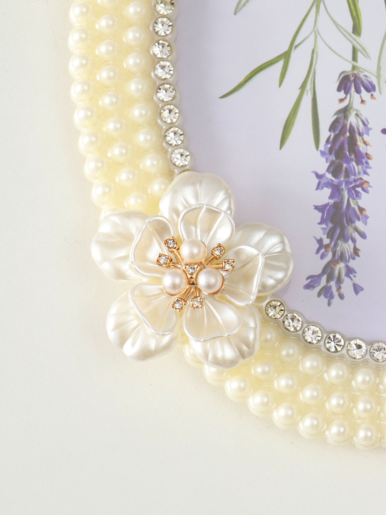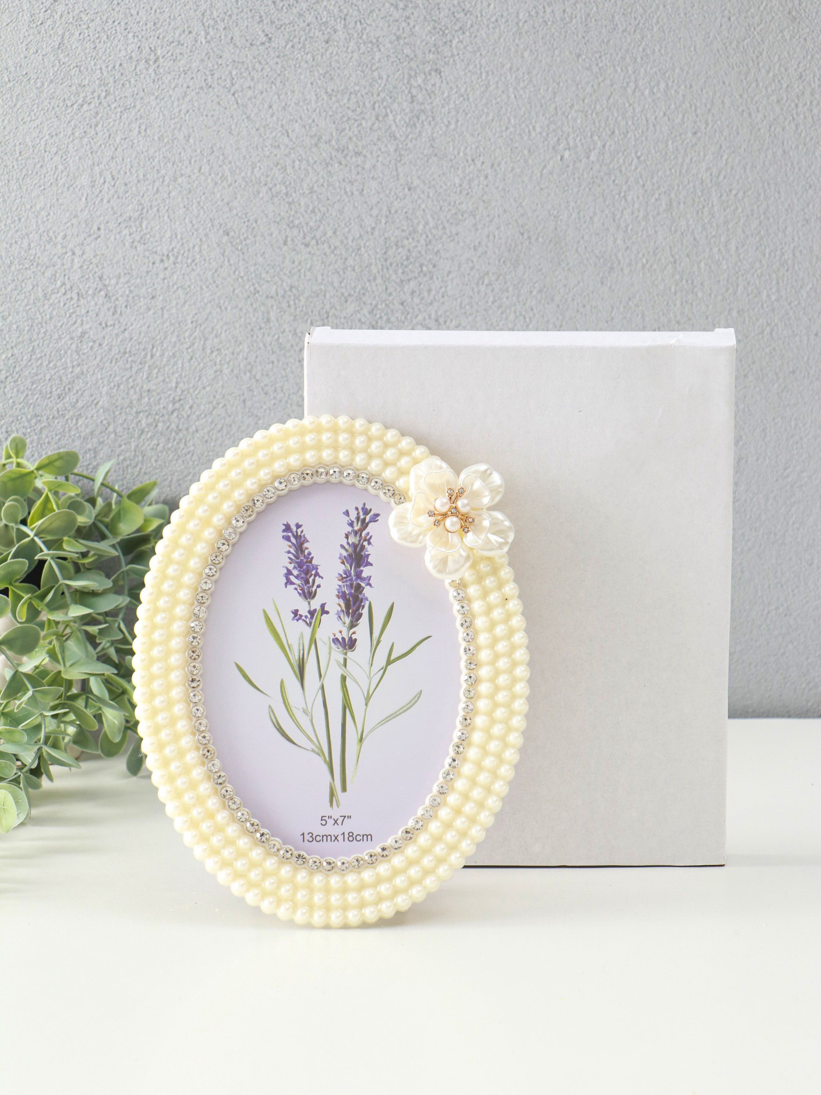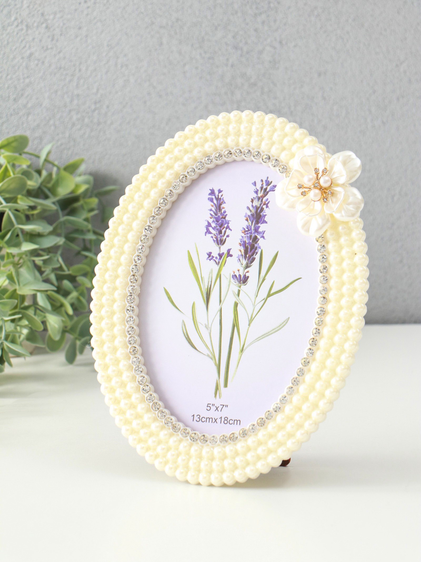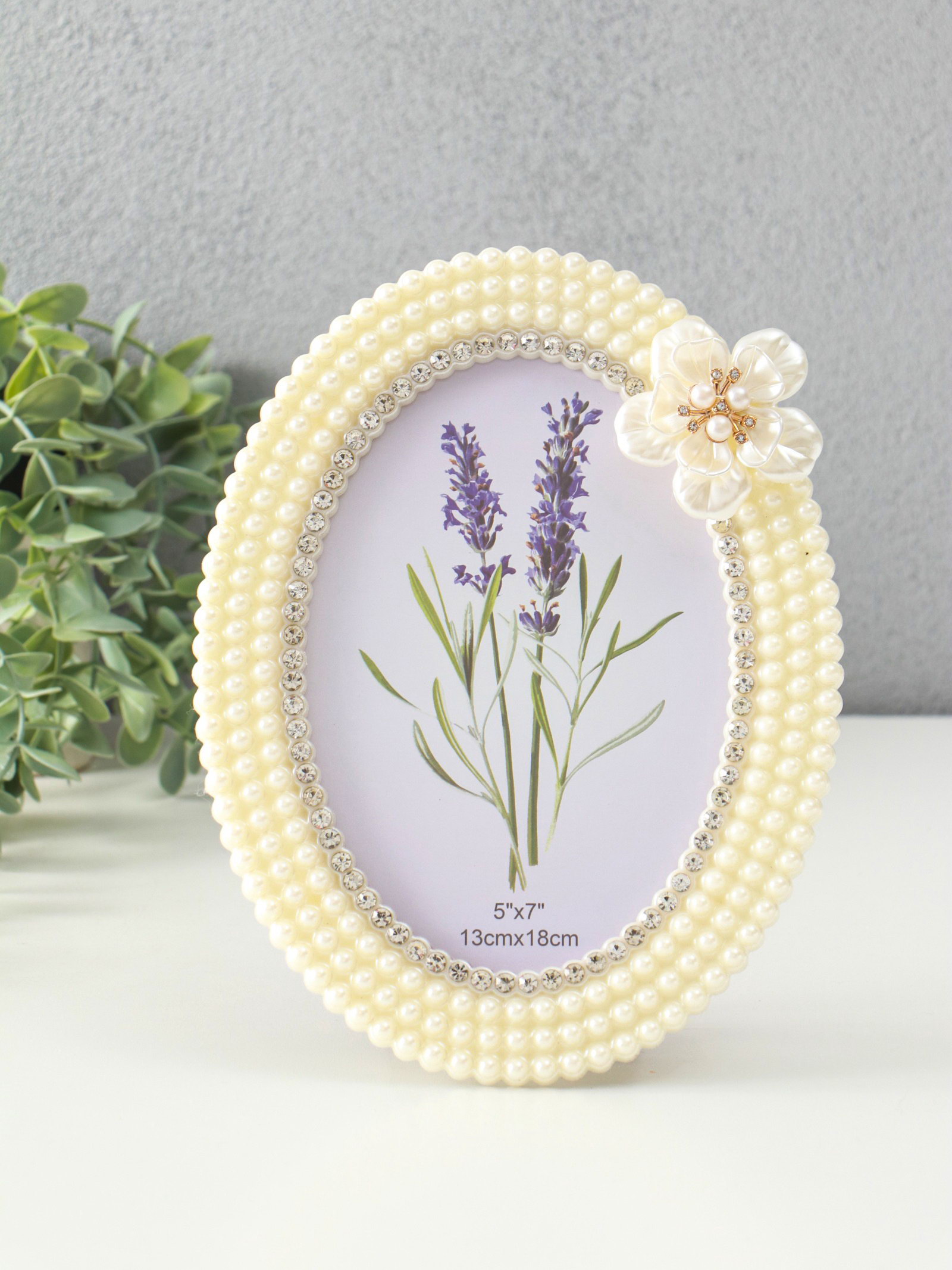 Фоторамка для фото 13x18 см "Белый жемчуг с цветком", овальная, пластик, Китай