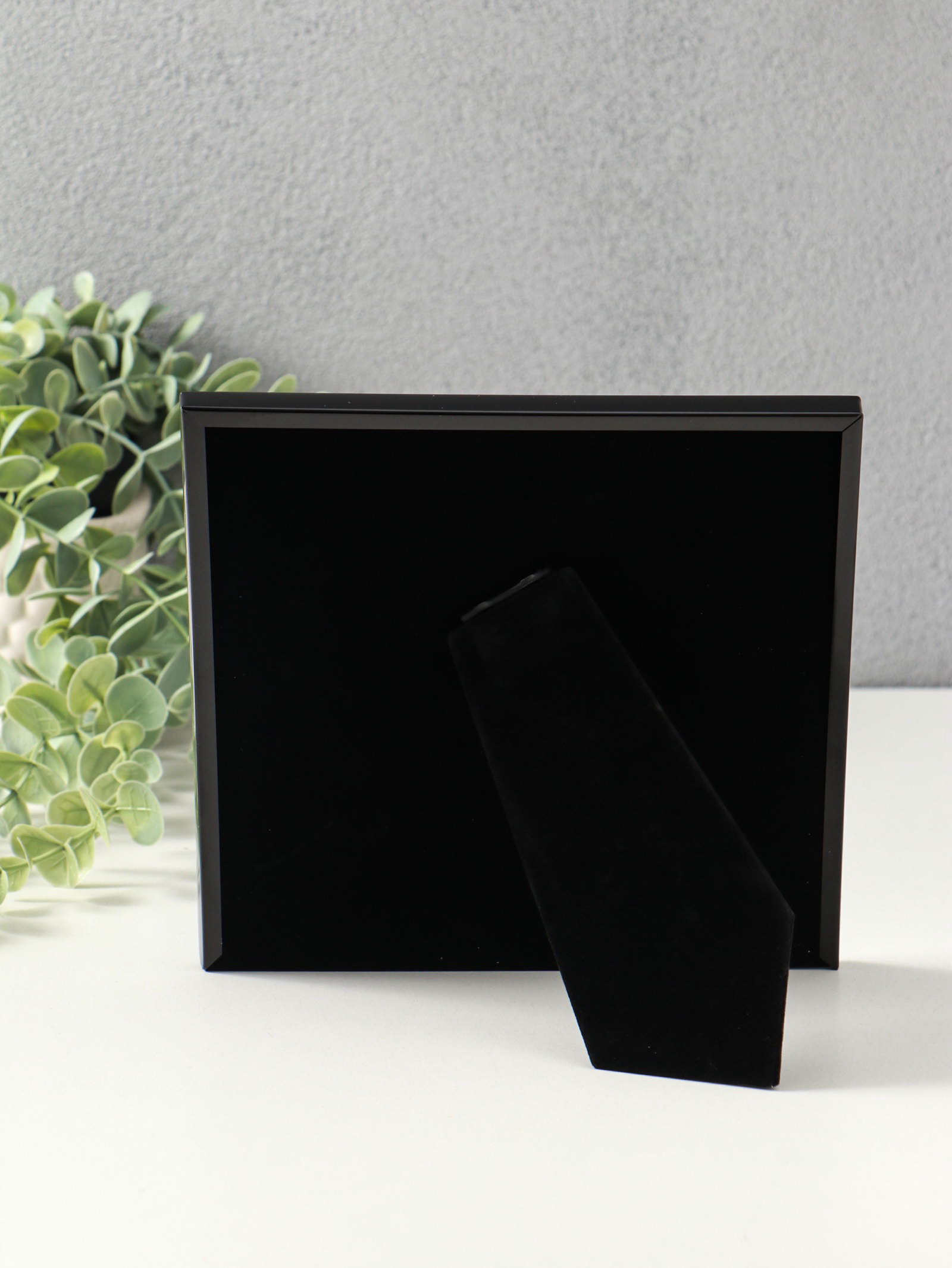Размер упаковки: 2.5 x 20 x 20 см. tnved: 8306300000 Цвет: Чёрный Количество фотографий: 1 Тематика праздника: Универсальная тематика Вид крепежа: Подставка Размер фото: 18 x 18 Тематика: Классика Форма под фото: Квадрат Эта классическая чёрная фоторамка простой и надёжный способ сохранить ваши любимые моменты. Её строгий металлический профиль и универсальный квадратный формат создают идеальный нейтральный фон, чтобы в центре внимания оставалось только фото. Рамка готова украсить ваш рабочий стол, полку или стать частью стены воспоминаний. Особенности