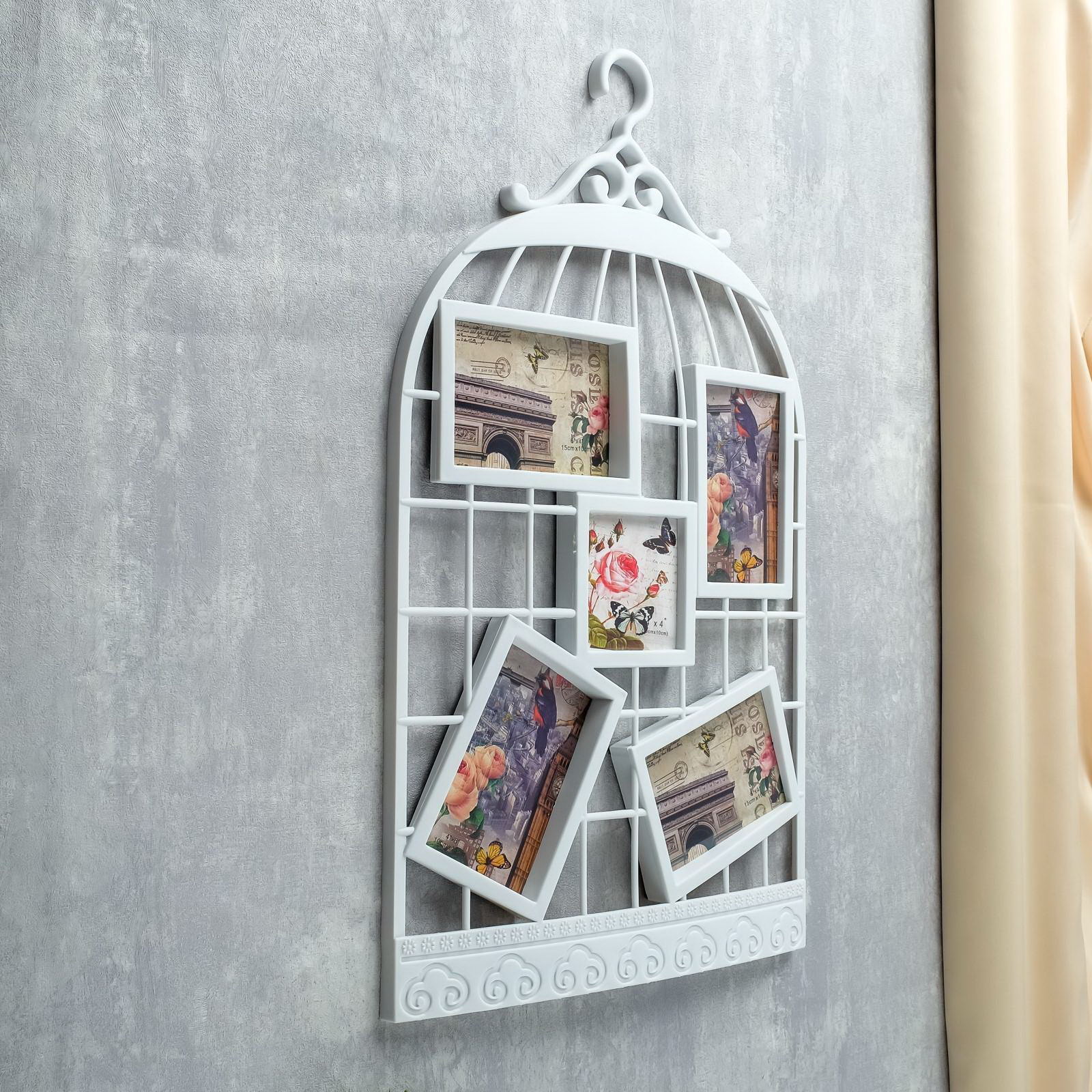 Фоторамка на 5 фото 10х10 см, 10х15 см "Клетка" белая 64х38 см, 38x62 см., Китай