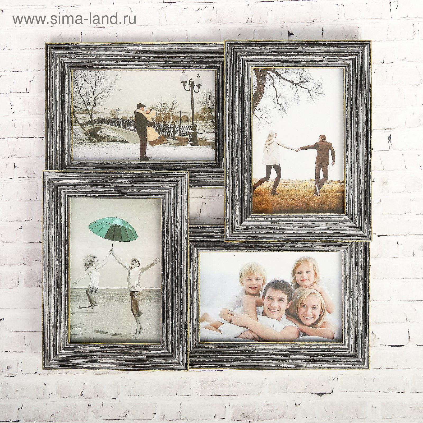 Фоторамка - коллаж на 4 фото 10x15 см "Серый грифель", пластик, 32x31.8 см, 31.8x31x32 см., Китай