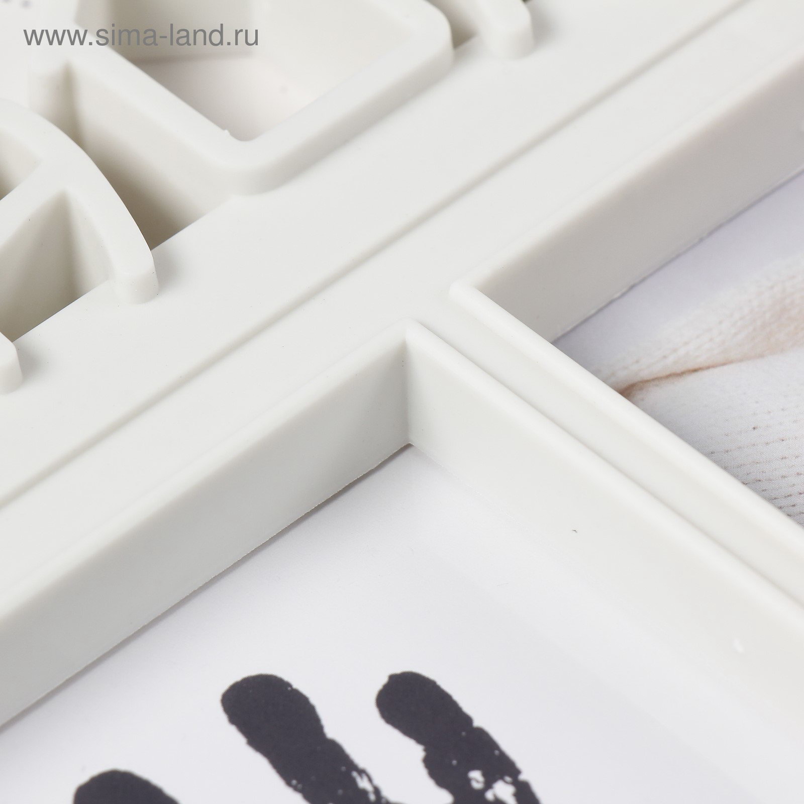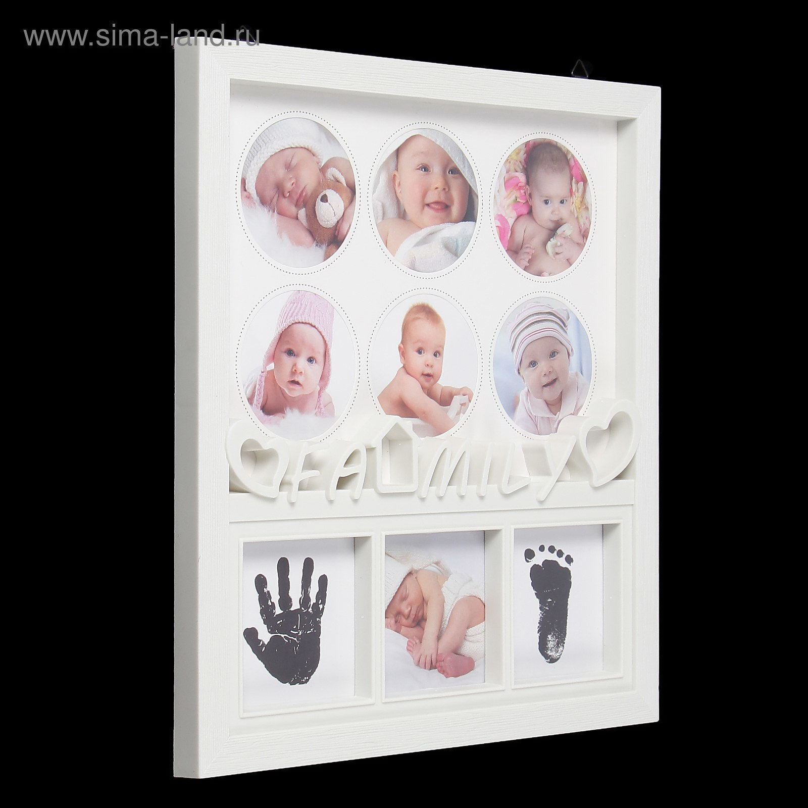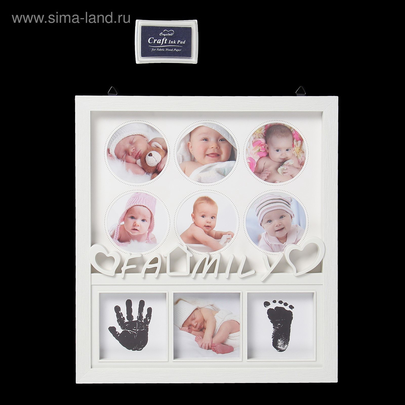 Фоторамка пластик на 7 фото 7х7, 8х8 см с штемп.подушкой "Семья" белая 36х20 см, 20x36 см., Китай