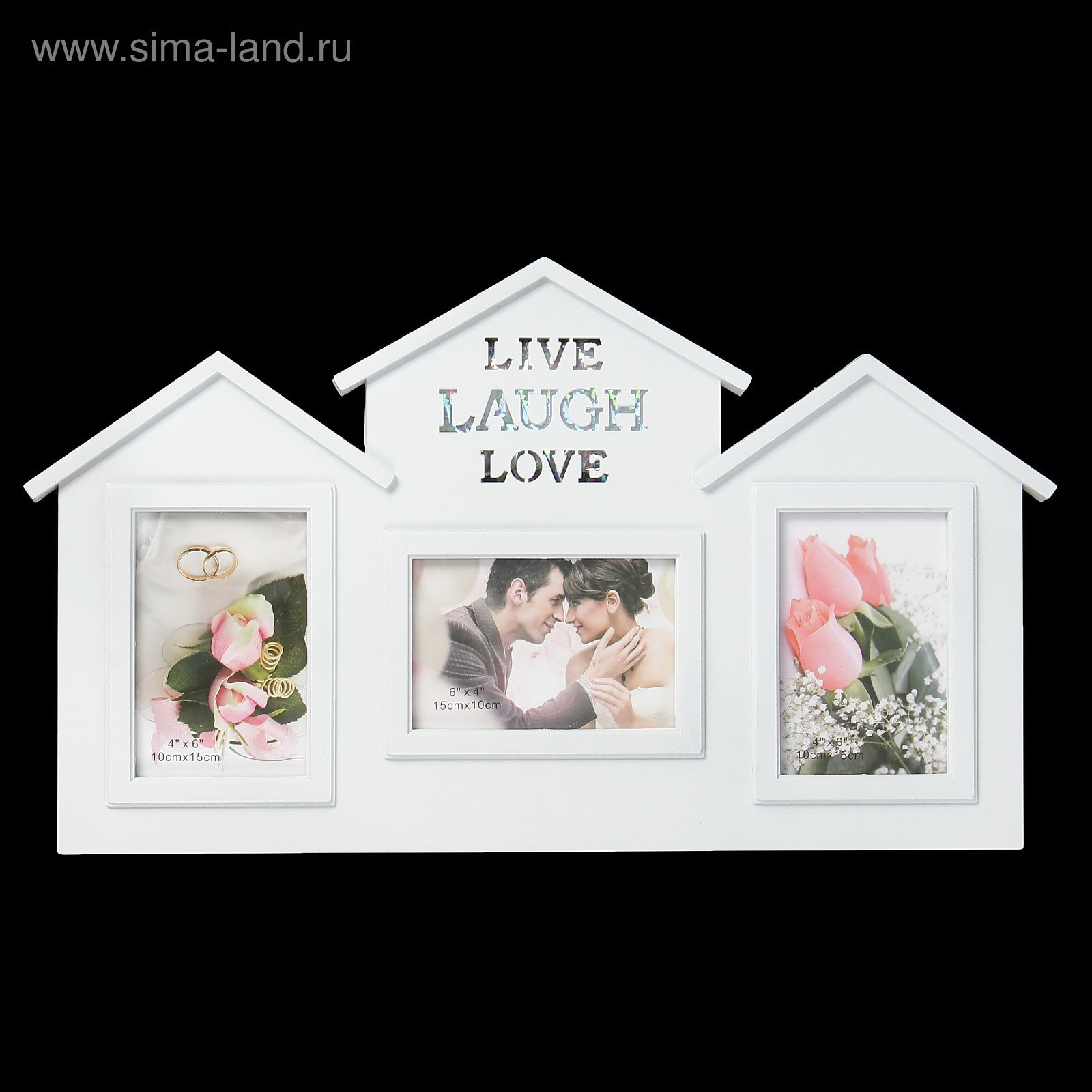 Фоторамка - коллаж на 3 фото 10x15 см "Дом - жизнь. смех, любовь", пластик, белая, 33x54.5 см, 54.5x2.5x33 см., Китай
