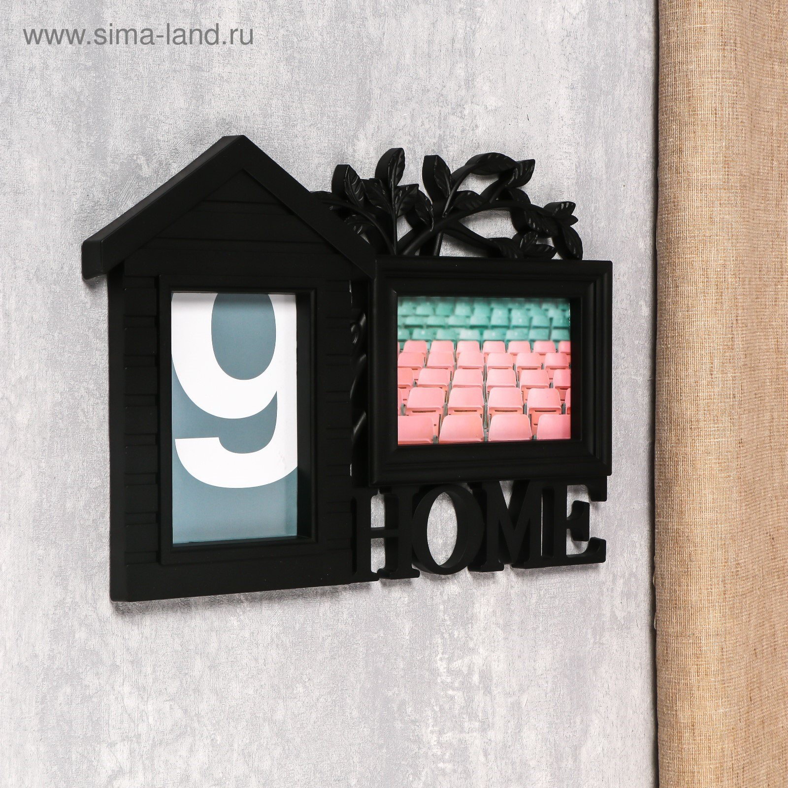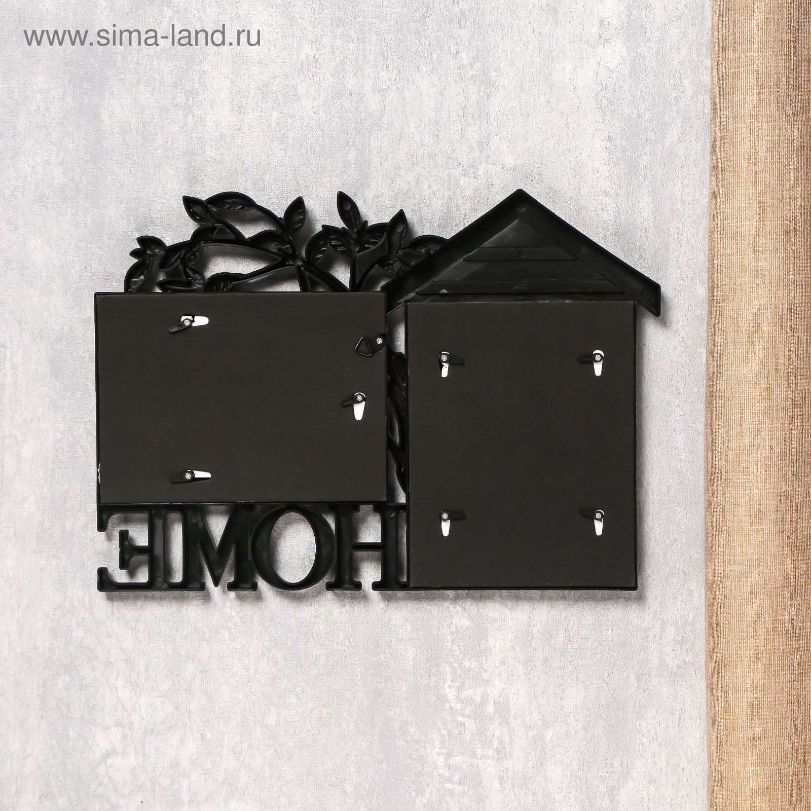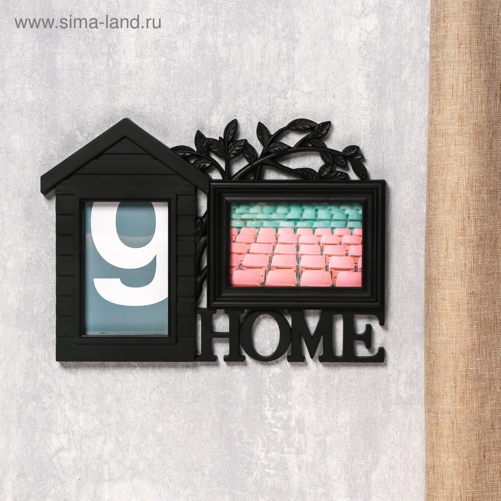 Фоторамка - коллаж на 2 фото 10x15 см "Дом и дерево", пластик, чёрная, 26.5x34 см, 34x26.5 см., Китай