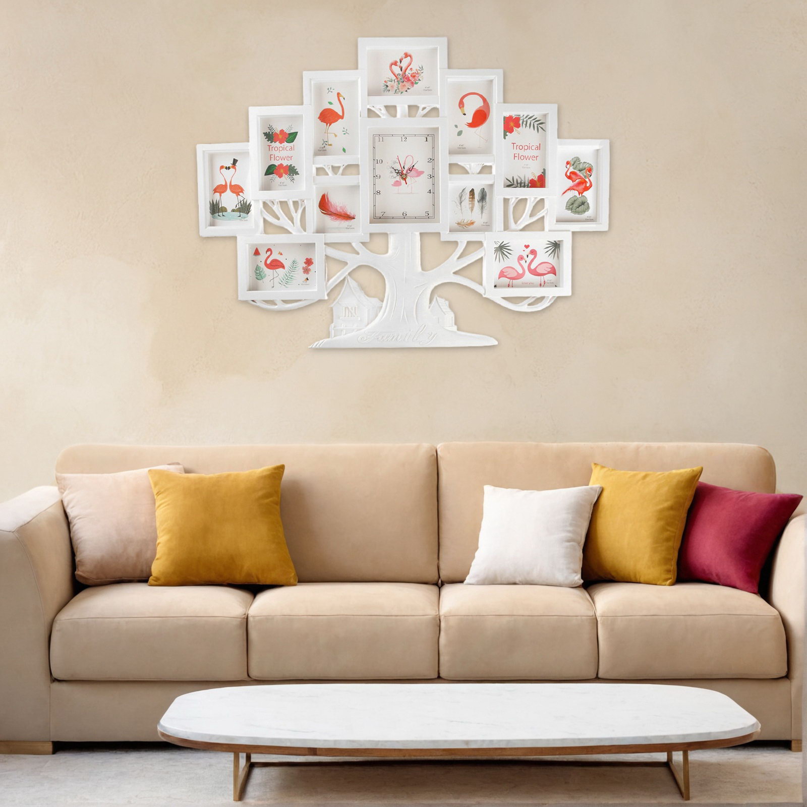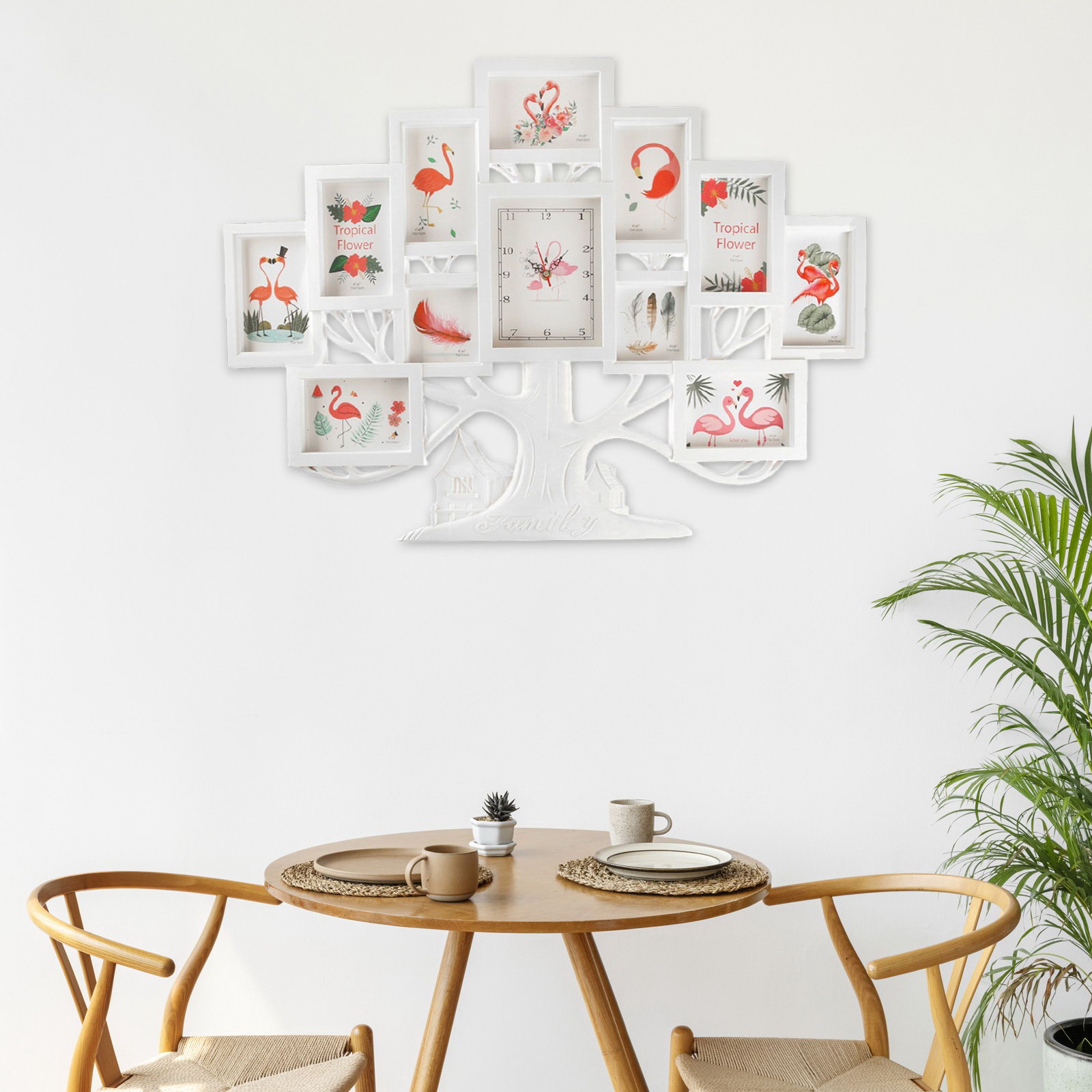 Фоторамка-коллаж на 11 фото с часами настенными "Семейное дерево", бесшумные, 82x58 см, 3x82x58 см., Китай