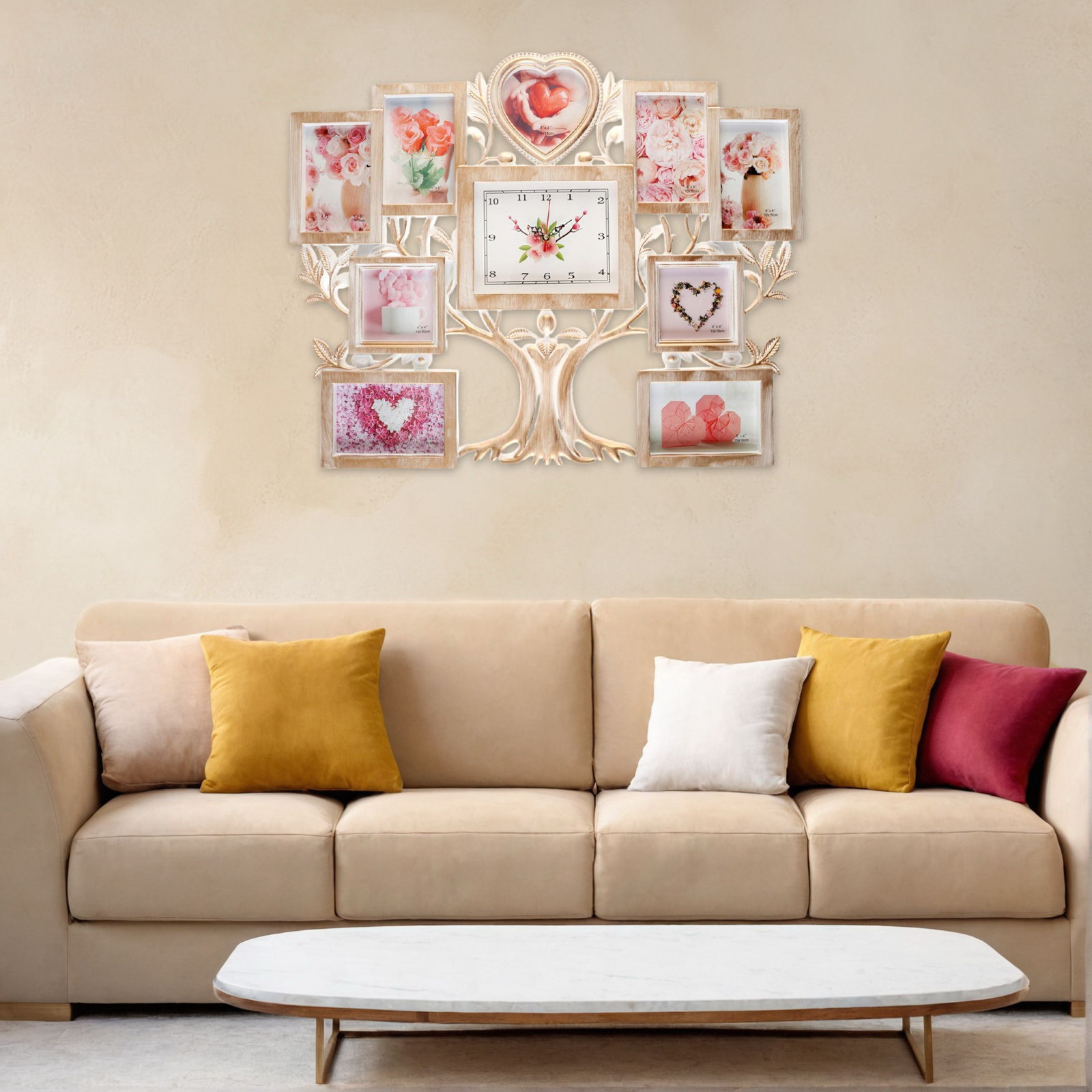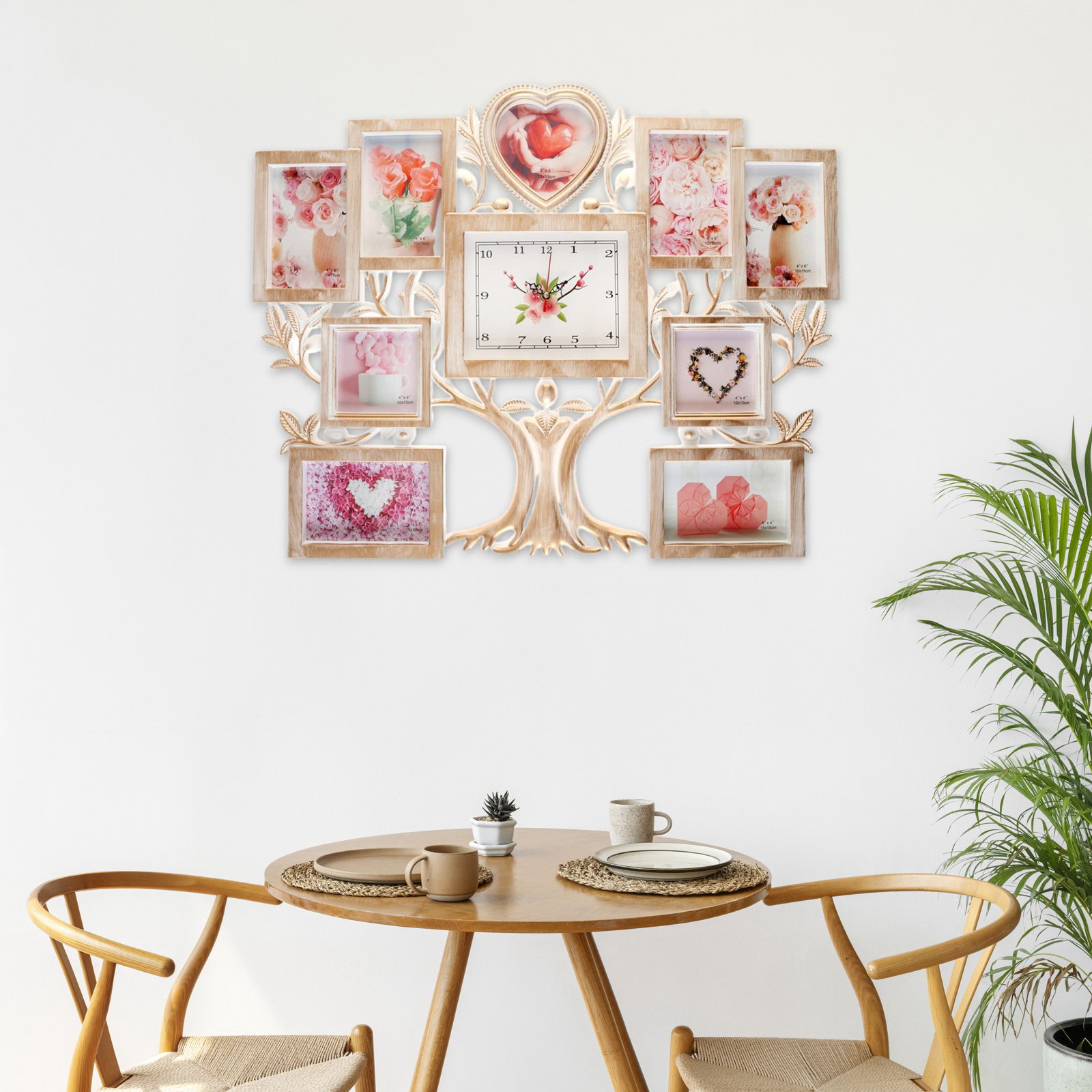 Фоторамка-коллаж на 9 фото с часами настенными "Семейное дерево", бесшумные, 51.5x65 см, 65x51.5 см., Китай