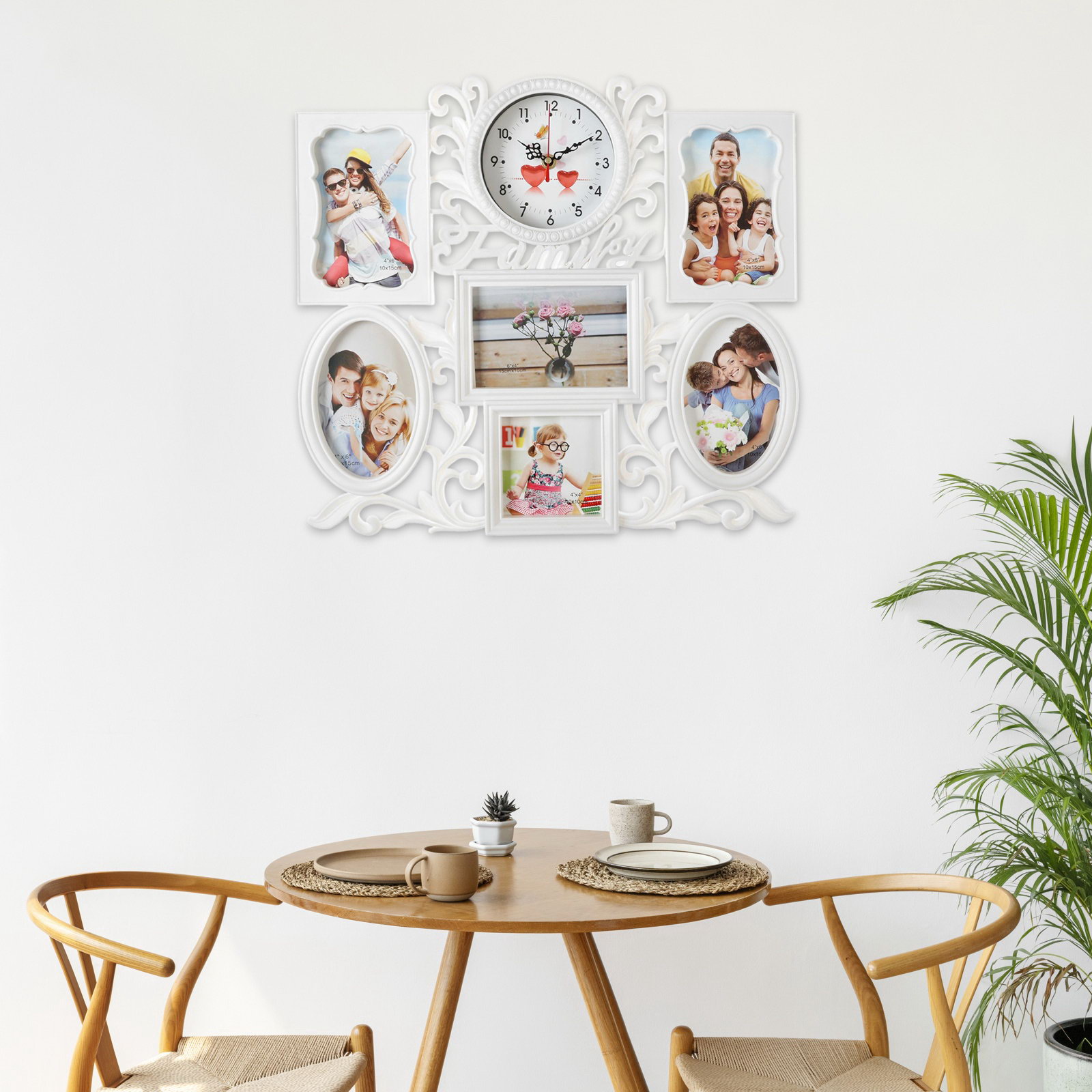 Фоторамка-коллаж на 6 фото с часами настенными Family, бесшумные, 45x37 см, d=11.5 см, 45x37 см., Китай