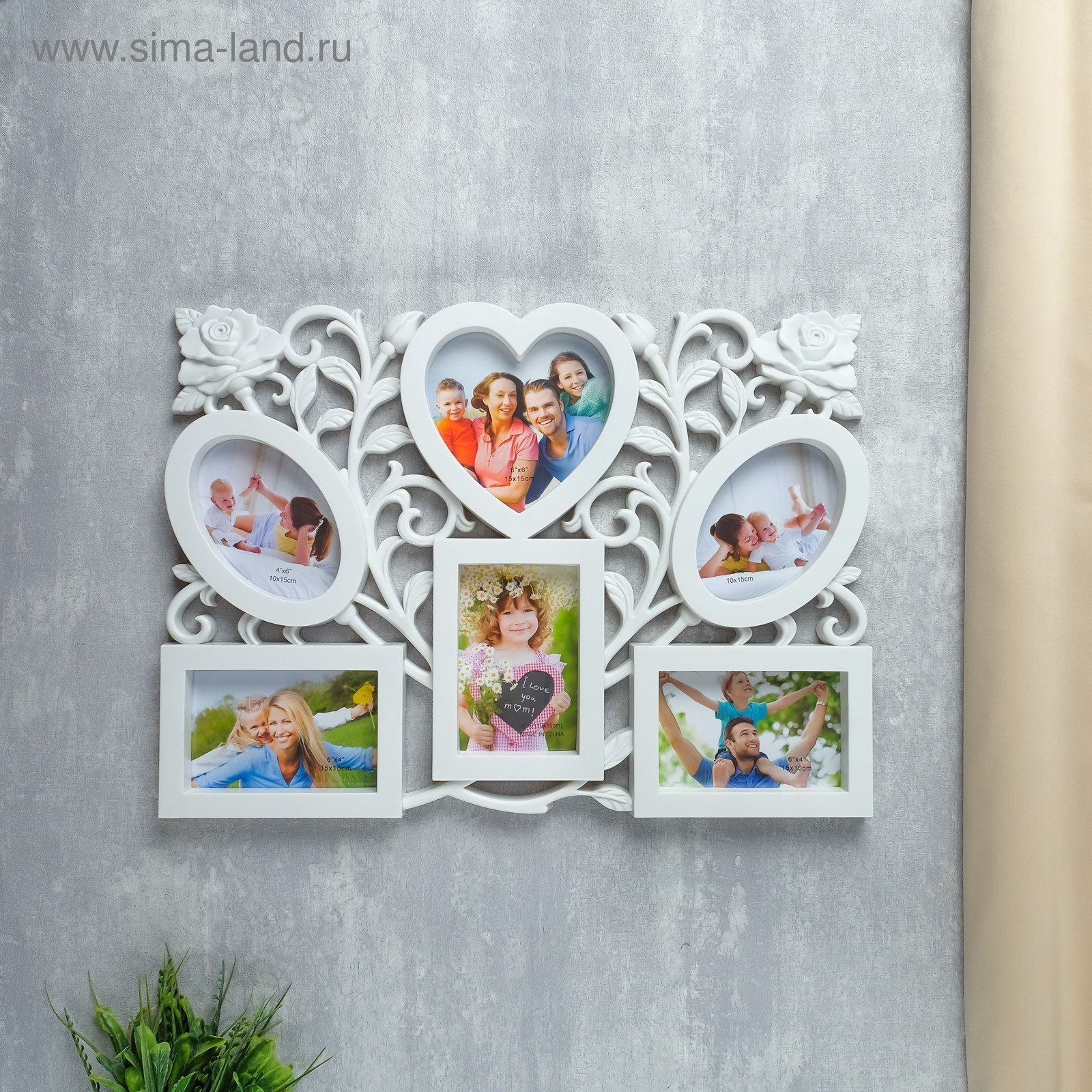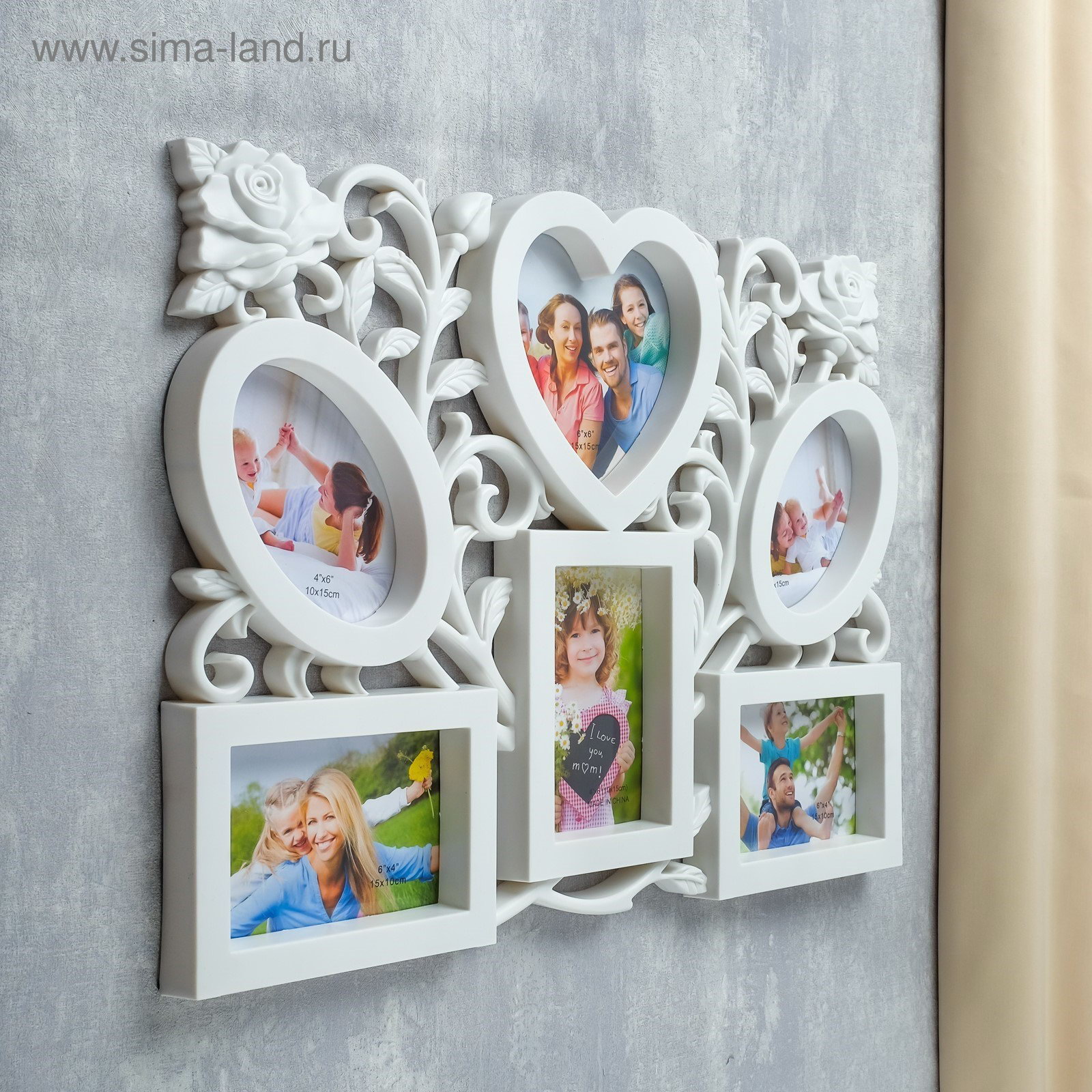 Фоторамка - коллаж на 6 фото 10x15 см, 15x15 см "Розарий", пластик, белая, 50.5x37 см, 37x50.5 см., Китай
